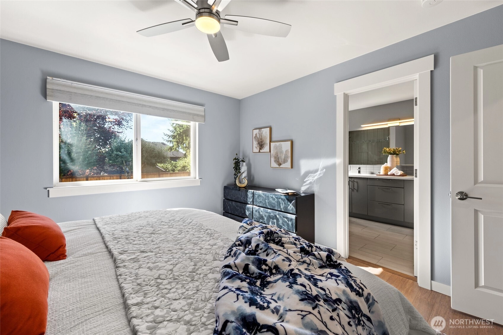 This gorgeous 3 Bedroom rambler on a private 12,000 sqft lot has been transformed into a vacation-like residence that breathes tranquility and fun! The private back yard and huge entertainment deck features in-ground heated pool that can also be used for a cold plunge. If a pool is not your thing, fill and transform into ADU, Pickle Ball Court, or the ultimate play set. The open floor plan fills with natural light and includes gas fireplace, A/C, walk-in showers, and heated tile floors. This immaculate home is 100% move in ready. There are four parking spaces (2 in the garage) in an ultra-quiet neighborhood. Plenty of street parking with the approximately 220 ft of sidewalk surrounding the front lawn. Live well right here.