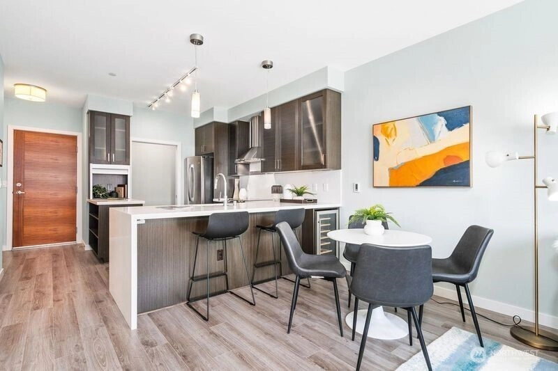 Time to live the urban lifestyle you have dreamed of in this TOP FLOOR south-facing unit in the ultra-modern Vik Condos. Steps to Ballard's renowned shopping district, hip restaurants, cafes & bars, iconic music venues, waterfront & year-round farmers market. This sun-drenched unit features 1+ BED w/custom walk-in closet, bonus den/office or guest space, chef’s kitchen w/ quartz counters & breakfast bar, walk-in pantry & wine fridge, full bath w/ laundry, SW facing patio with water views! 360-degree view rooftop deck w/ multiple entertaining spaces & outdoor kitchen, dog run & dog wash, fitness center, bike storage & designer lobby w/ concierge & beautiful artwork throughout the bldg, secure parking w/ X-large storage for ALL your gear!