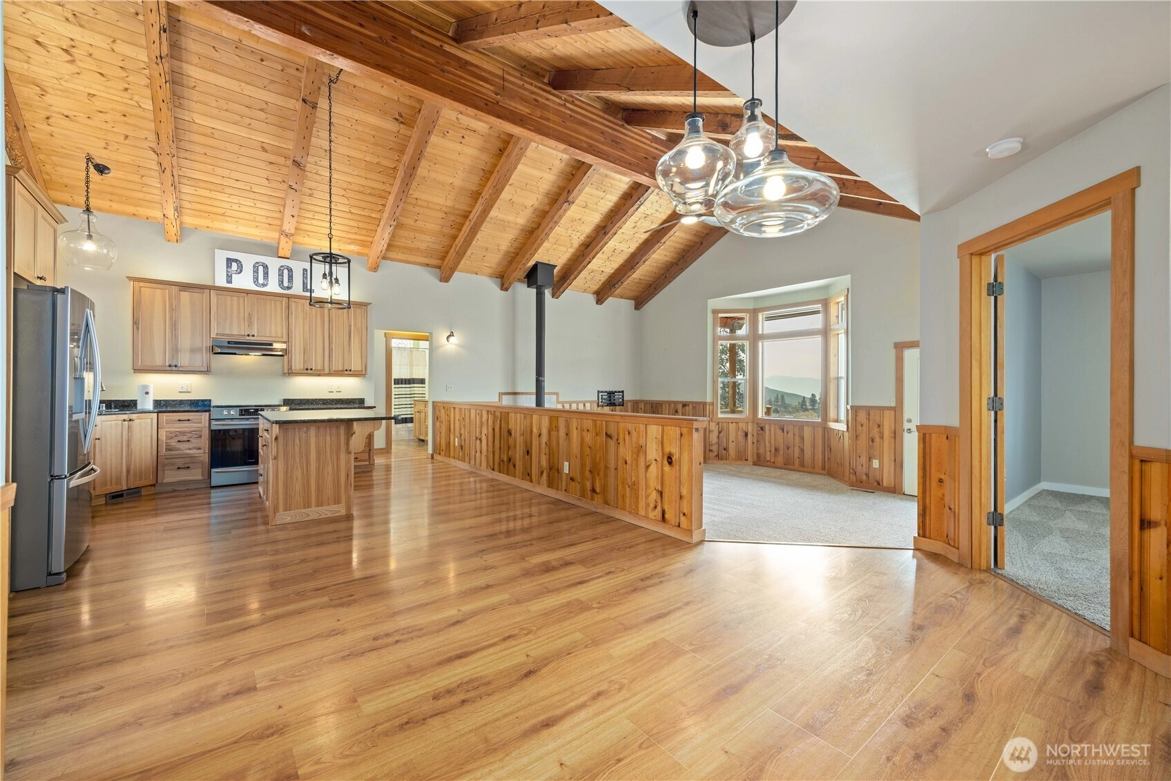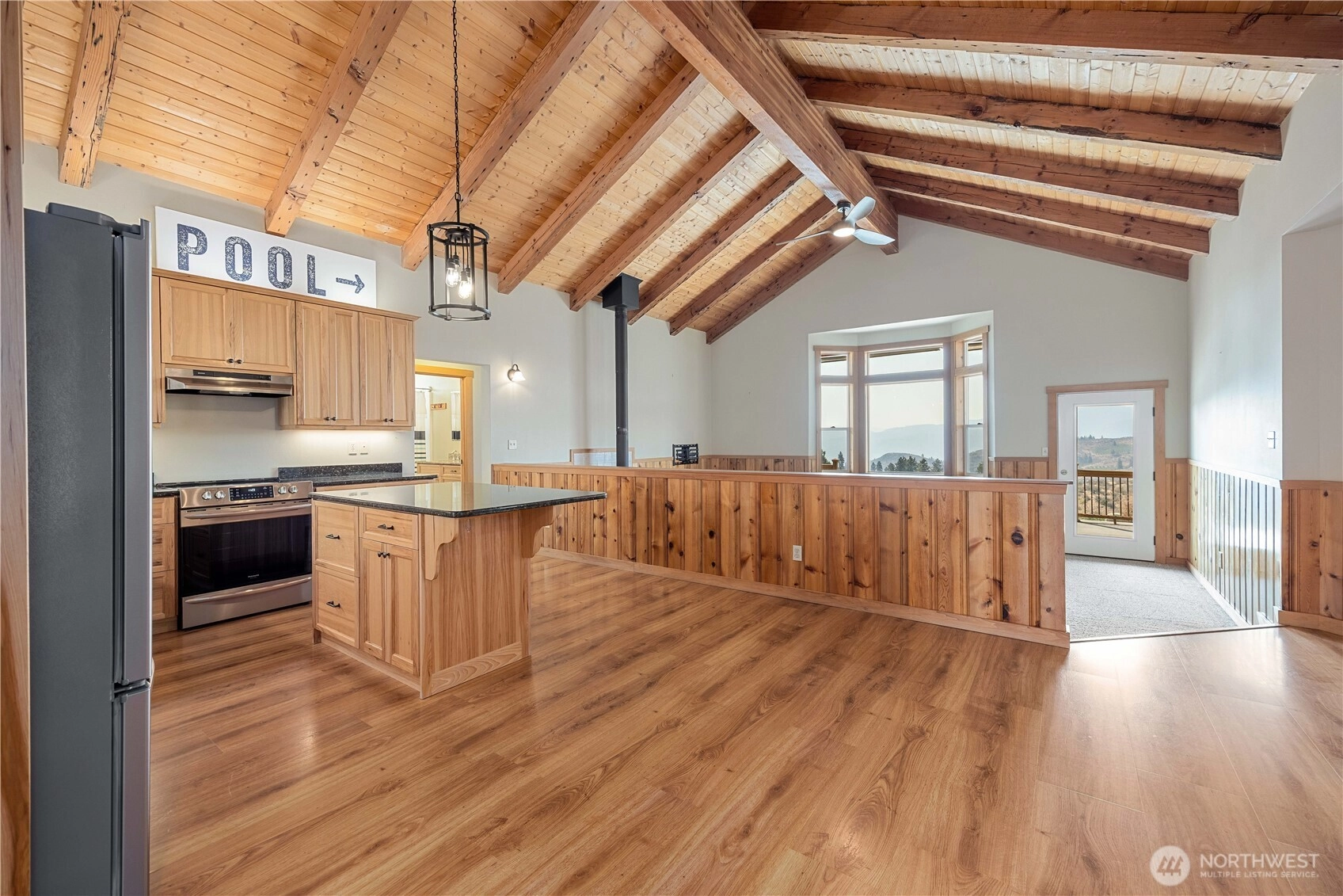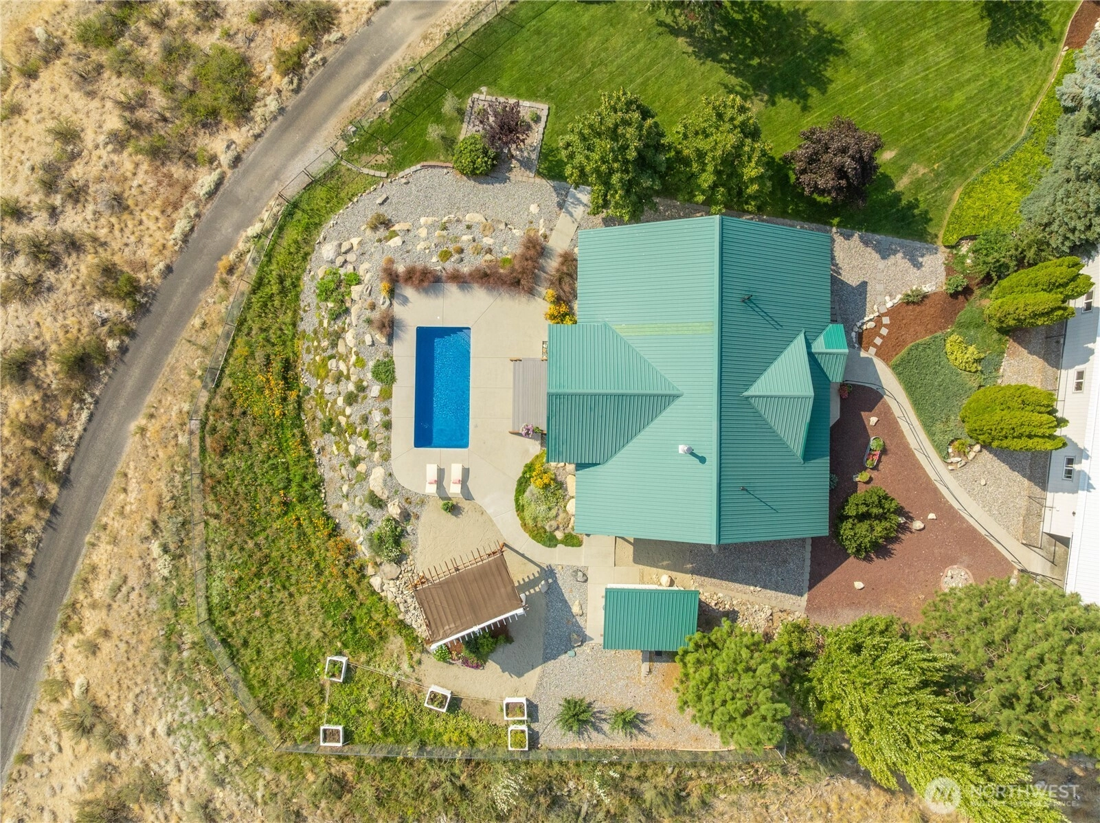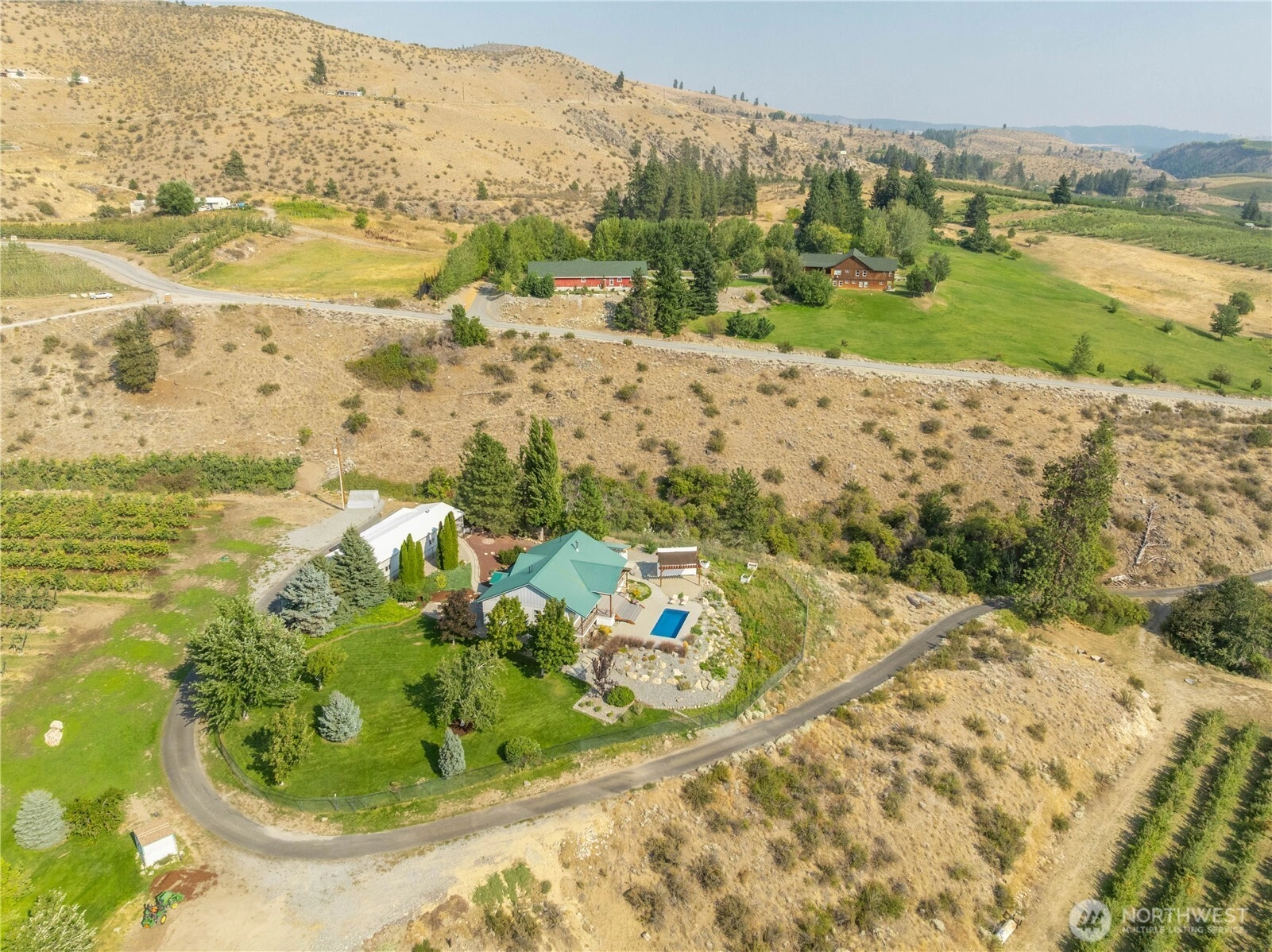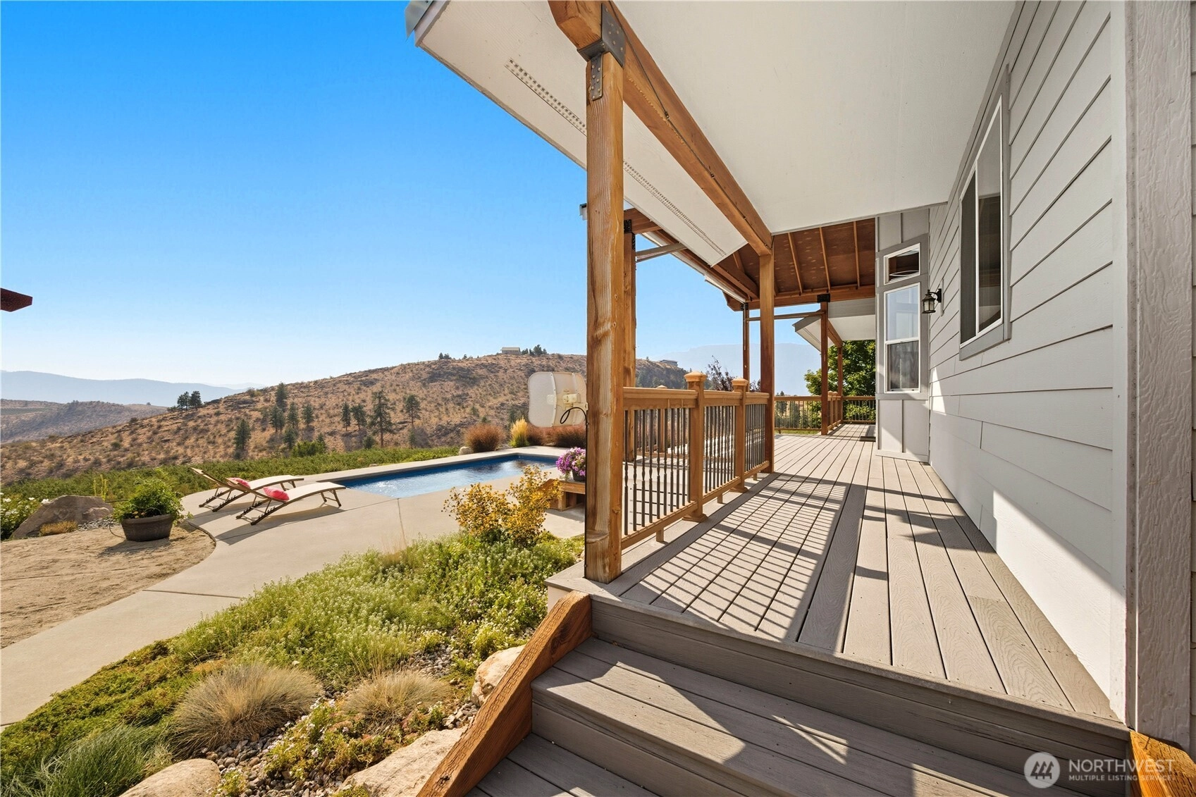 Enjoy serene hillside living with stunning views of Lake Chelan and the surrounding mountains! This thoughtfully designed home offers peace and privacy while being just minutes from town, the lake, wineries, and hiking. The open floor plan features vaulted ceilings with reclaimed beams, custom cabinetry, newer carpet, and a spacious primary en-suite. Entertain with ease on the covered deck or beneath the outdoor pergola. The fully fenced yard is complete with raised garden beds, wildflowers, and a cocktail pool. Bonus perks include a 3-car garage and ample crawlspace storage—perfect for full-time living or a relaxing getaway.