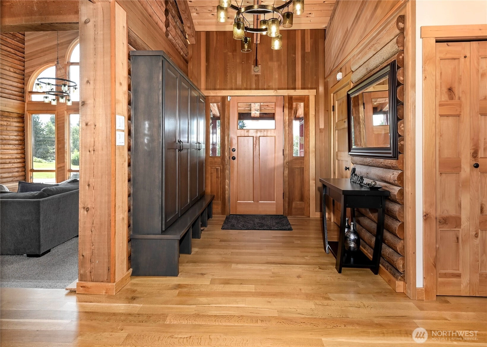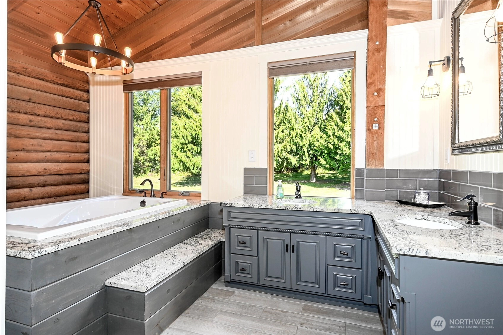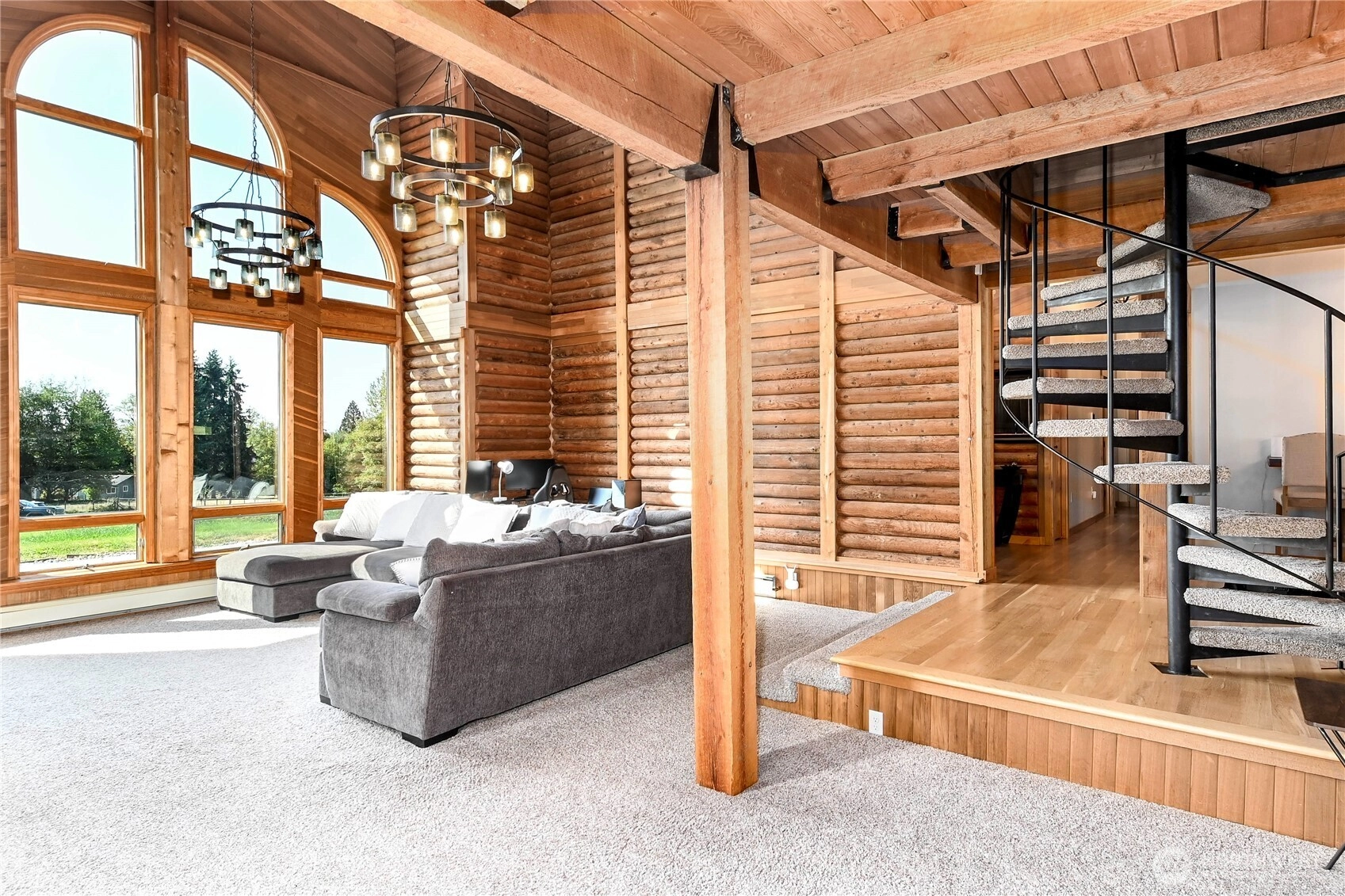 Nestled in the stunning Victoria Heights/Snohoco area, this custom 2,496 sq. ft. log home sits on 5.3 fully usable acres, ideal for horses or hosting gatherings. Outside, you'll find a stamped patio, a spacious 28x34 detached shop, and cleared pasture. Inside, the home boasts maple cabinets, granite slab counters, and stainless steel appliances, with the refrigerator, washer, and dryer included. The 2-story family room features a river-rock fireplace and offers beautiful westerly views. The upstairs primary suite includes dual sinks and a relaxing soaking tub. Lovingly cared for, the property comes with a $10,000 seller credit for exterior cleaning and re-staining, allowing you to select your preferred color.