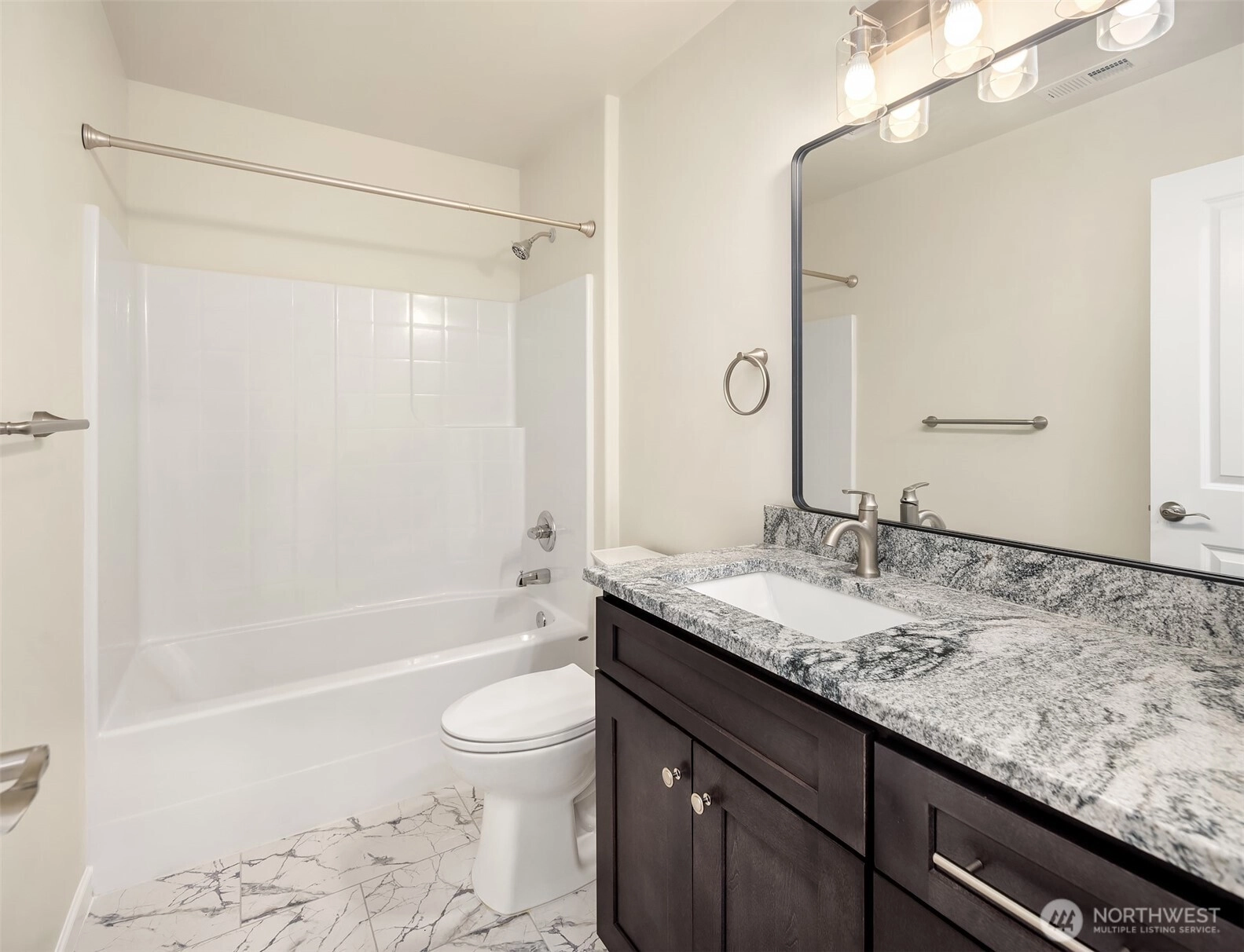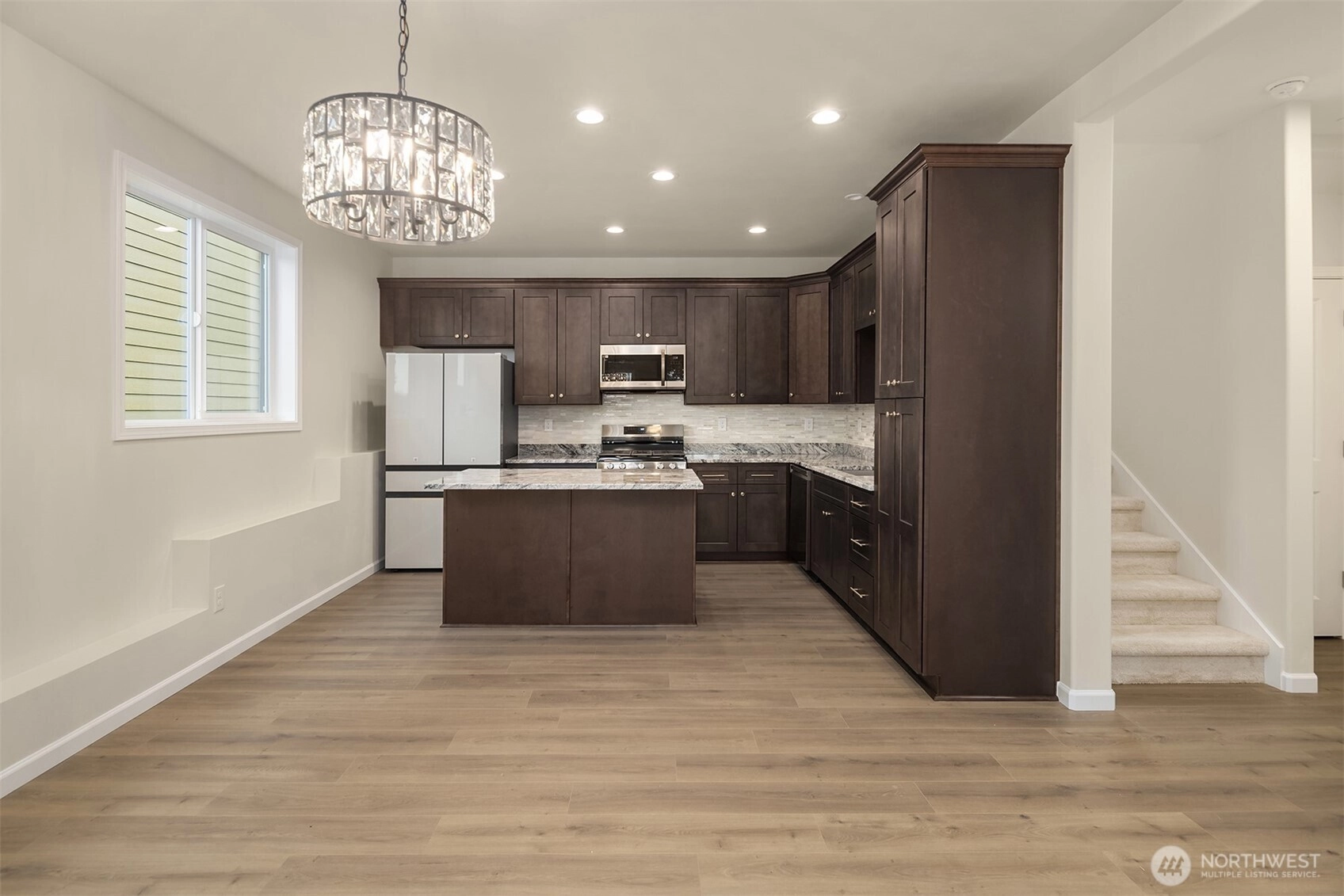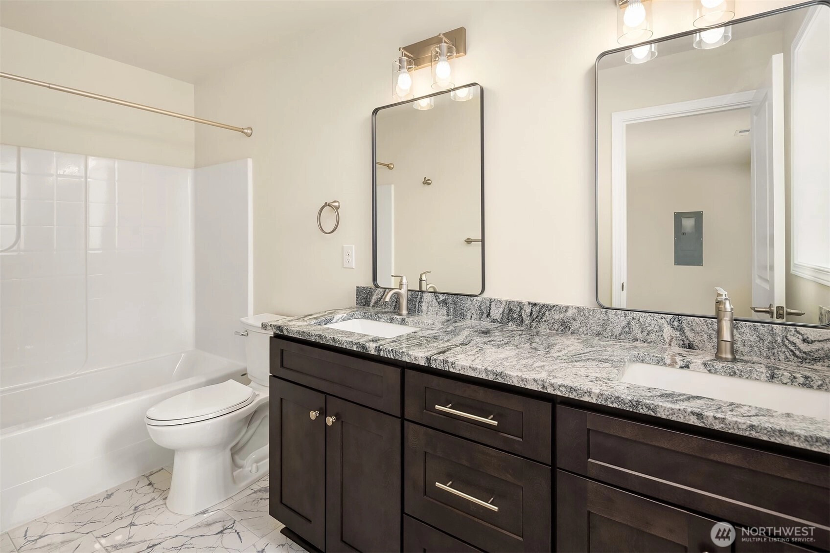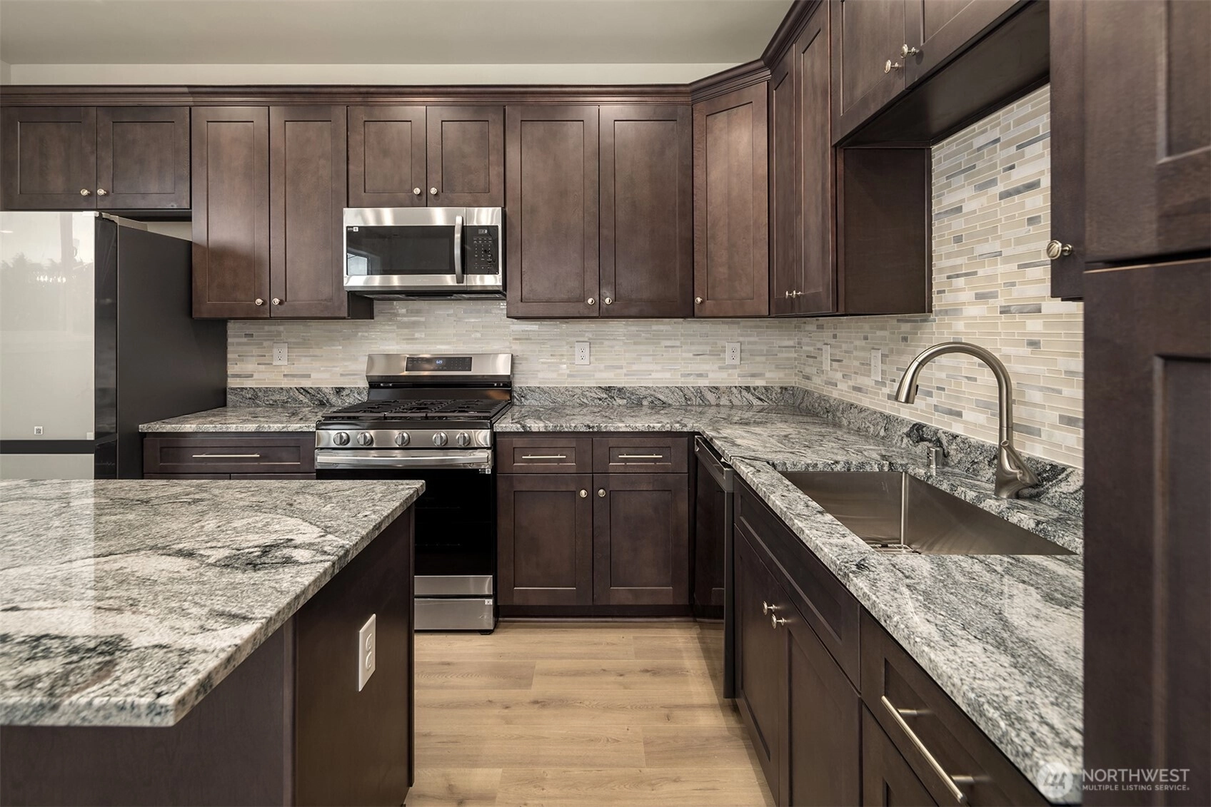5.7% SELLER FINANCING! | Discover Pacific Gardens ~ Perched up on a quiet hillside at the end of a small cul-de-sac by North Shorewood Park, this new construction 2,090sf, 5 bed, 2.5 bath 2-story with mountain & territorial views is built to last! Thoughtfully designed & meticulously crafted with special attention to detail & modern designer finishes throughout. Spacious rooms, tall ceilings & large windows with abundant natural light. Huge living room with corner gas fireplace opens to formal dining & showcase kitchen with granite island & high-end appliances. Grand primary oasis with lavish ensuite & generous walk-in closet. Fully landscaped with entertainment deck. EV ready garage with 220v outlet & long driveway with plenty of parking!