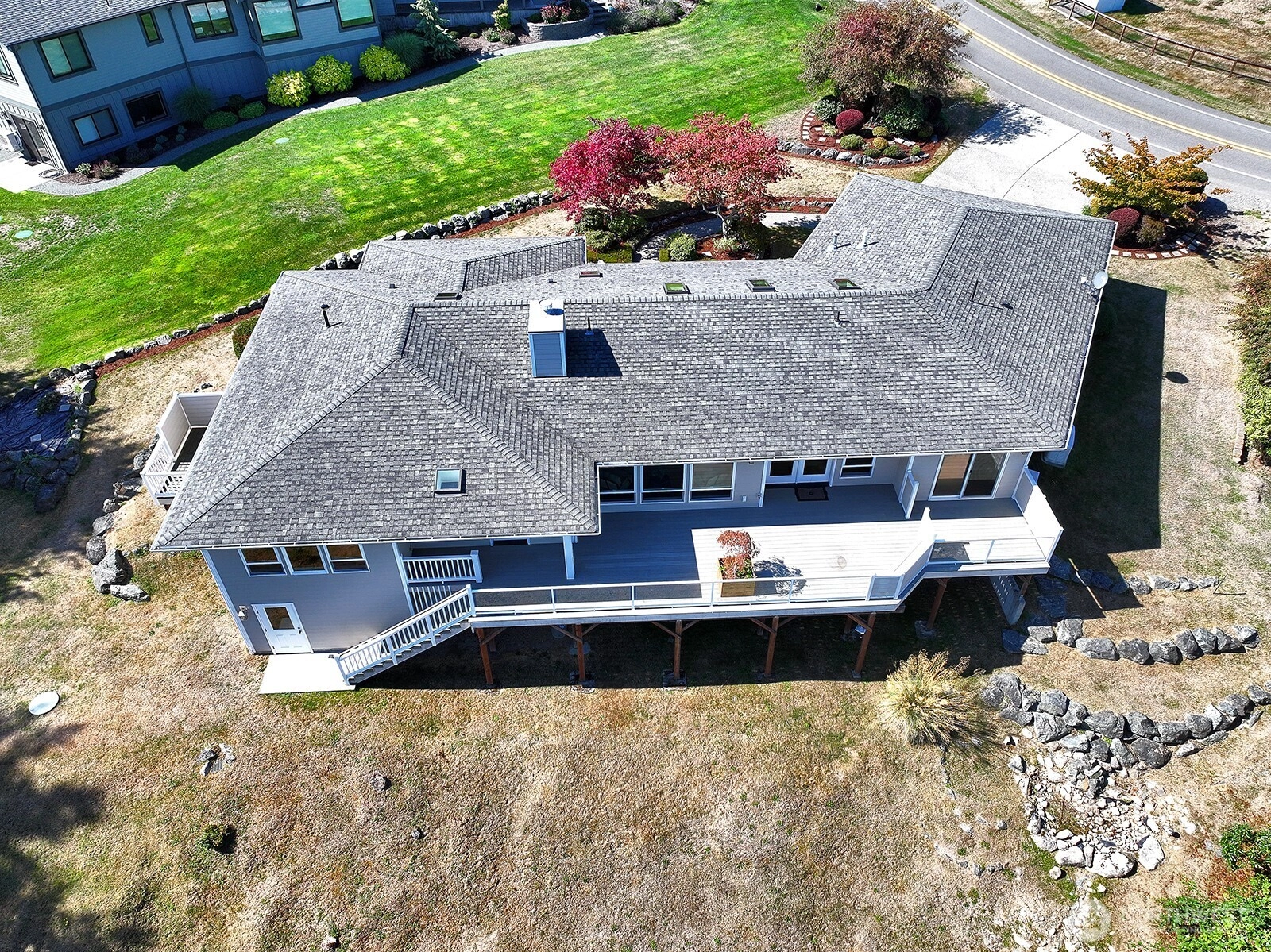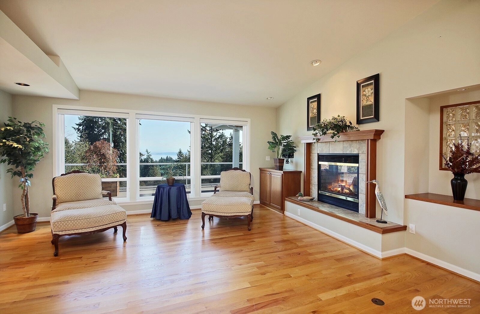 Your Whidbey Island dream home awaits! This beautifully designed, single-level home is ready for you. Step out onto the expansive deck and take in stunning views of the Sound and ferry. With an open-concept floor plan, every space flows seamlessly for effortless living. The primary suite offers its own private deck retreat, while vaulted ceilings and a dual fireplace—shared between the living room and den/primary bedroom—create a warm, inviting ambiance on cooler evenings. A spacious two-car garage gives you room for vehicles, storage, or hobbies. Best of all, you’ll enjoy the feeling of being away from it all, while still just minutes from the ferry and Paine Field. Come see why life on Whidbey Island is so special!