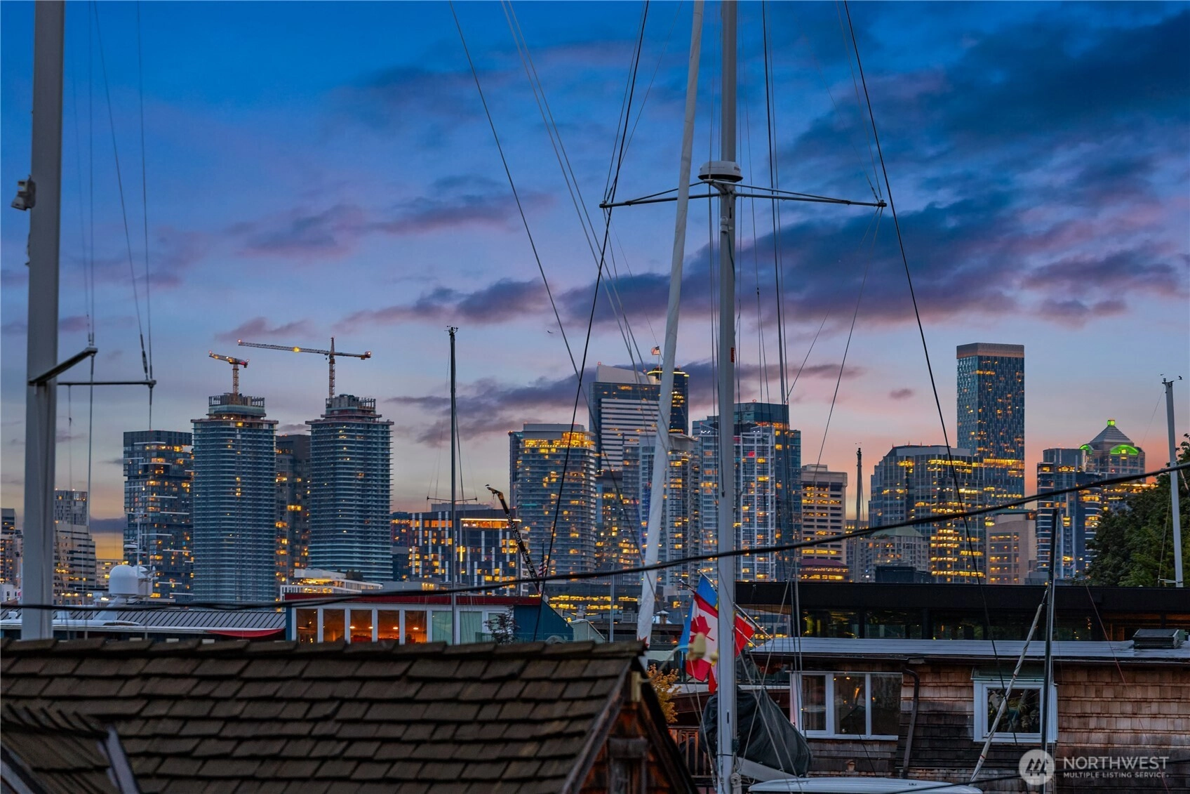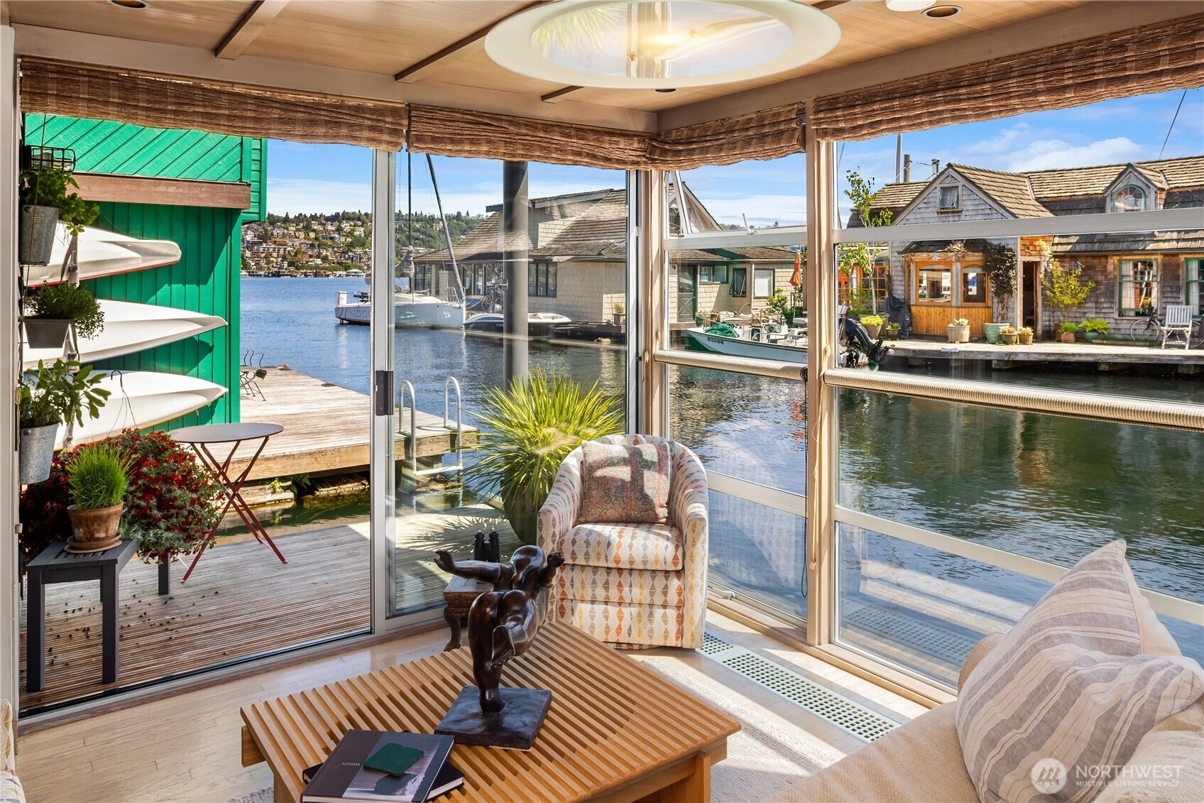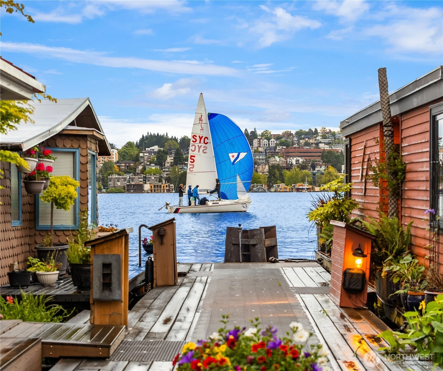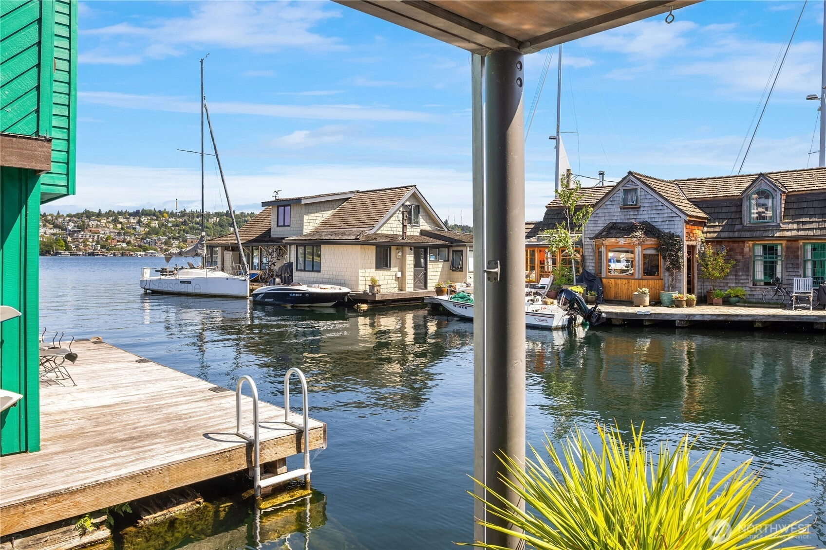 Designed by George Suyama, one of the PNW’s most revered architects & brought to life by the acclaimed firm Krekow Jennings, this is one of Seattle’s most distinctive floating homes—a rare harmony of design & craftsmanship. Its sun-filled, south-facing slip near the end of Westlake’s premier dock offers views of Downtown & Gas Works Park. Gracefully extended into the channel, the glass-wrapped sunroom creates a unique view corridor into Lake Union, blurring the boundaries between indoors & out. A flat roof with ladder access offers 360* views & exciting potential for a full rooftop deck. Quintessential Seattle living awaits—just a short stroll from both Downtown & Fremont. Gated entry, ~45’ x 8.5’ boat moorage & city parking for residents.