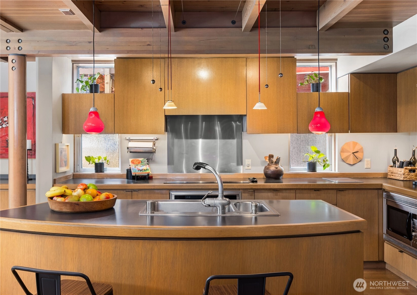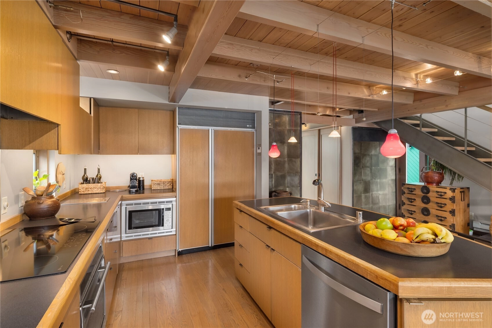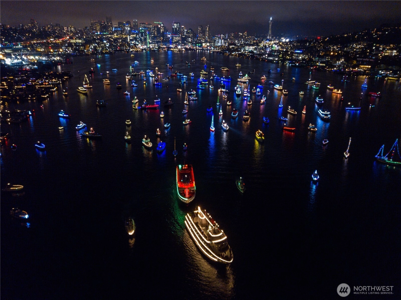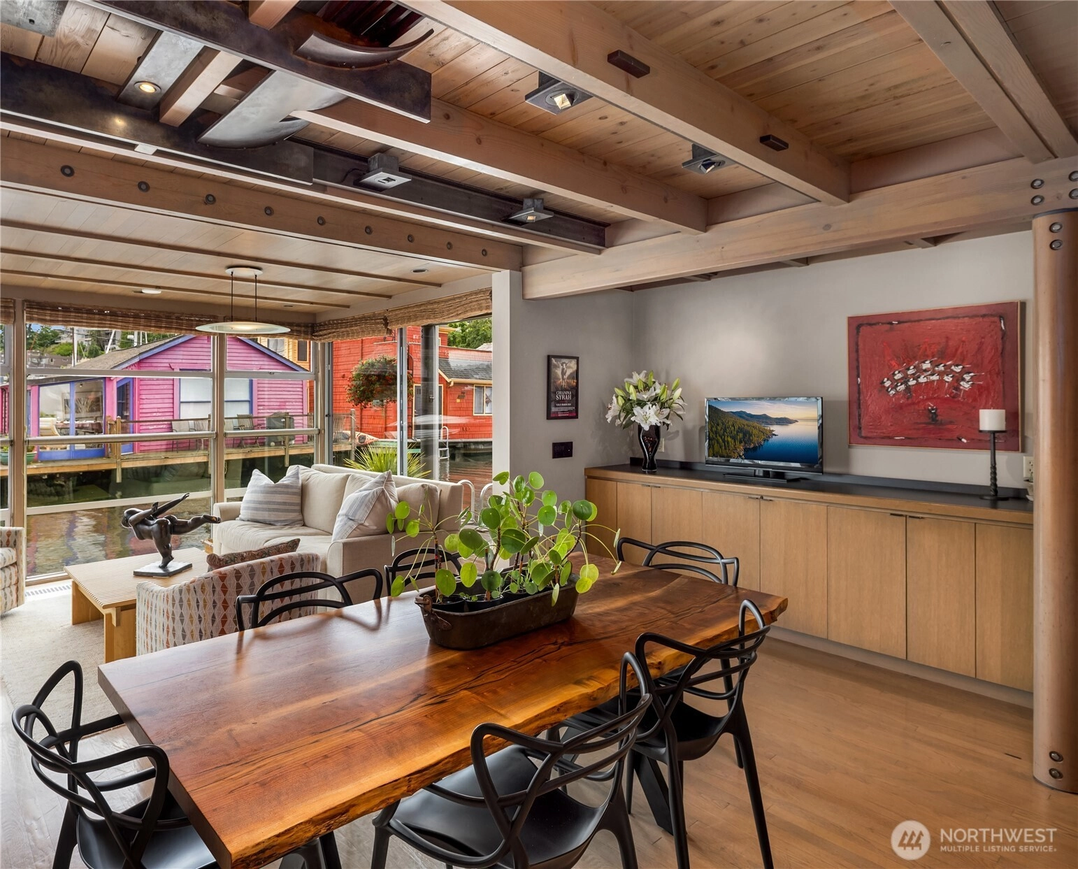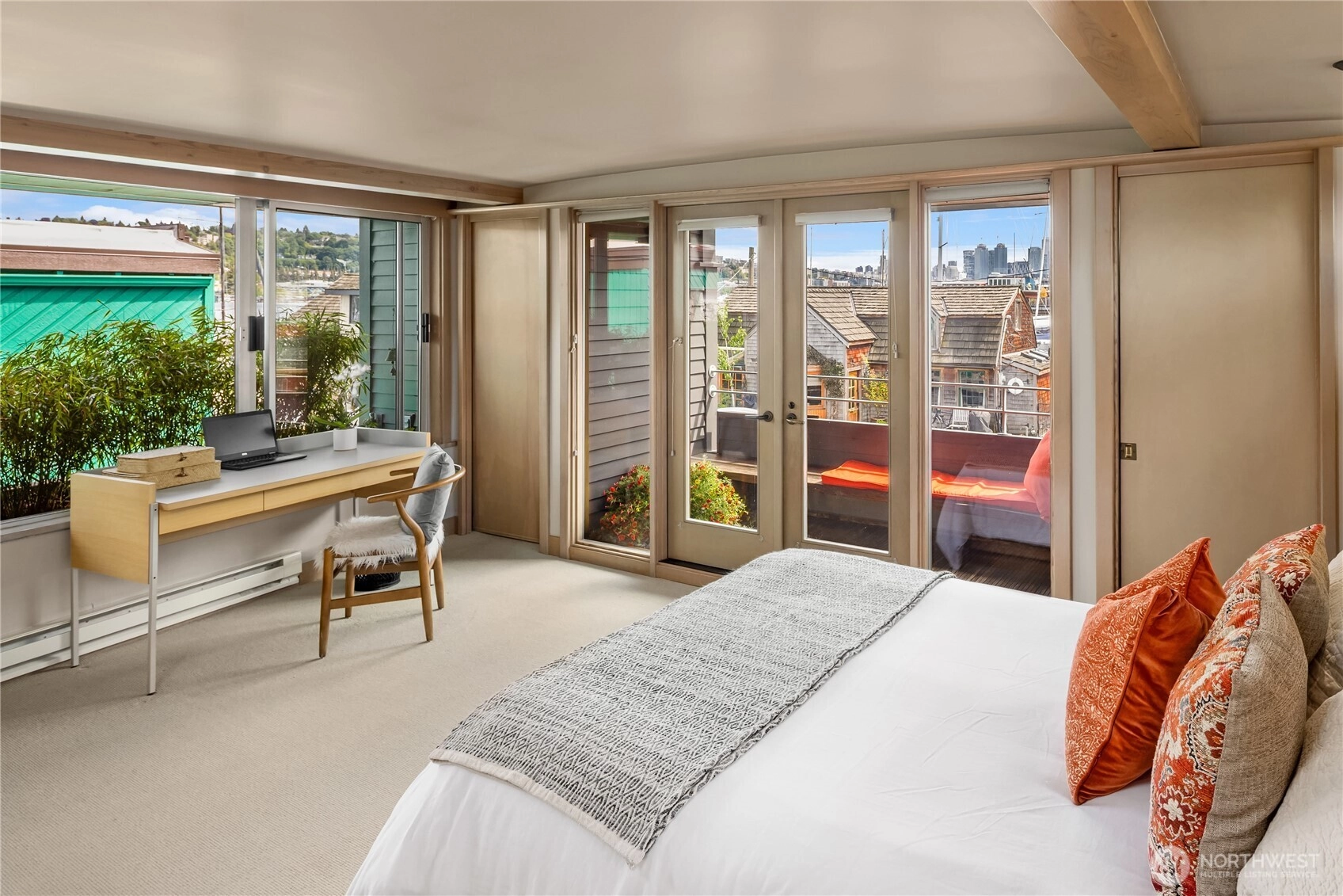 Designed by George Suyama, one of the PNW’s most revered architects & brought to life by the acclaimed firm Krekow Jennings, this is one of Seattle’s most distinctive floating homes—a rare harmony of design & craftsmanship. Its sun-filled, south-facing slip near the end of Westlake’s premier dock offers views of Downtown & Gas Works Park. Gracefully extended into the channel, the glass-wrapped sunroom creates a unique view corridor into Lake Union, blurring the boundaries between indoors & out. A flat roof with ladder access offers 360* views & exciting potential for a full rooftop deck. Quintessential Seattle living awaits—just a short stroll from both Downtown & Fremont. Gated entry, ~45’ x 8.5’ boat moorage & city parking for residents.