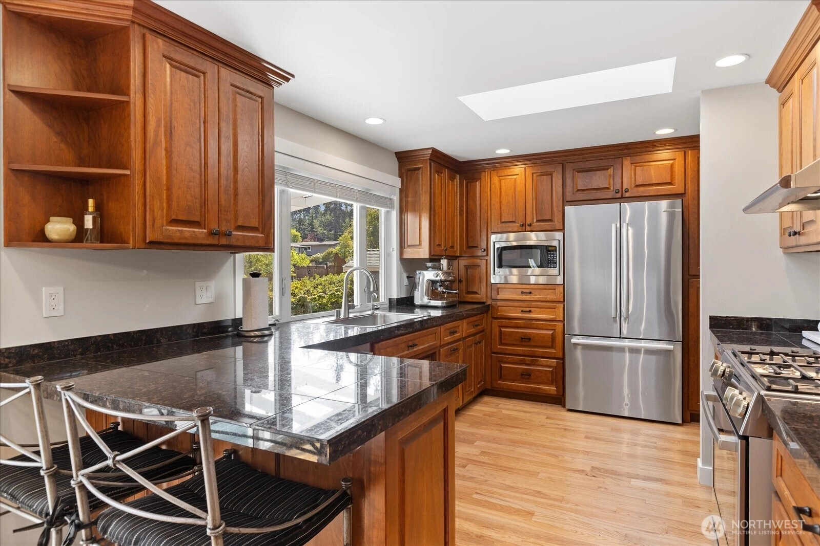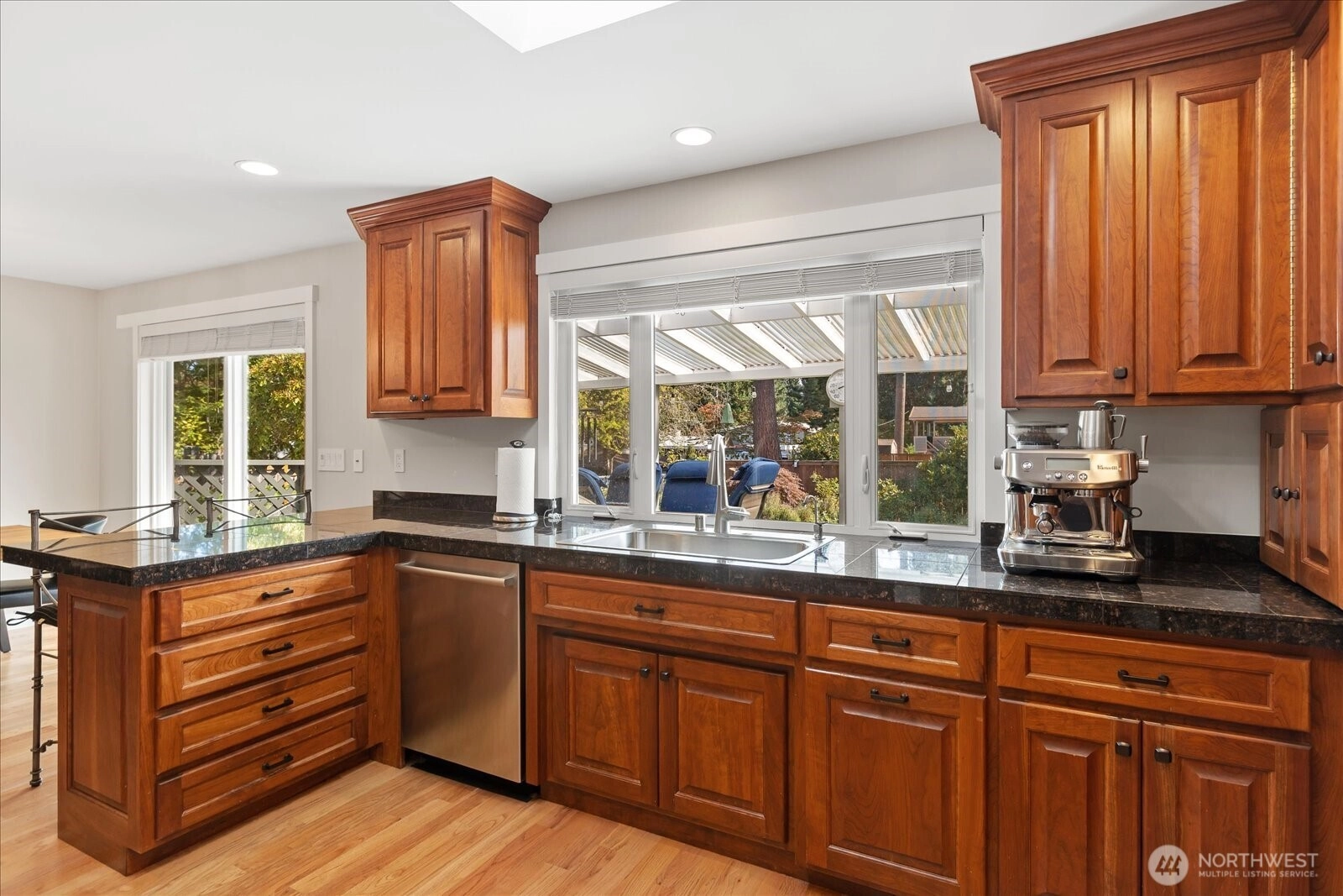 Perfectly located in a tidy & charming neighborhood just minutes to both Downtown Edmonds & Five Corners, this incredibly maintained tri-level is absolutely move-in ready. Thoughtful upgrades include new 200amp-240v electric service (2016); new roof, gutters, garage doors & exterior paint (2019); updated primary & guest bathrooms (2021); newer appliances throughout. Even the crawl space & garage have received attention with a new vapor barrier, insulation & an epoxy floor! Just prior to listing came a brand-new water heater & resurfaced asphalt driveway. Ask your agent for a full list of seller upgrades. The generous lot offers deck & patio spaces, a charming heated shed, a healthy (green!) lawn & garden spaces for both flowers & veggies!