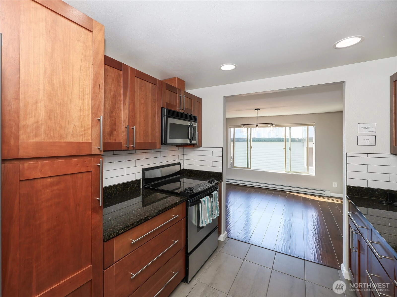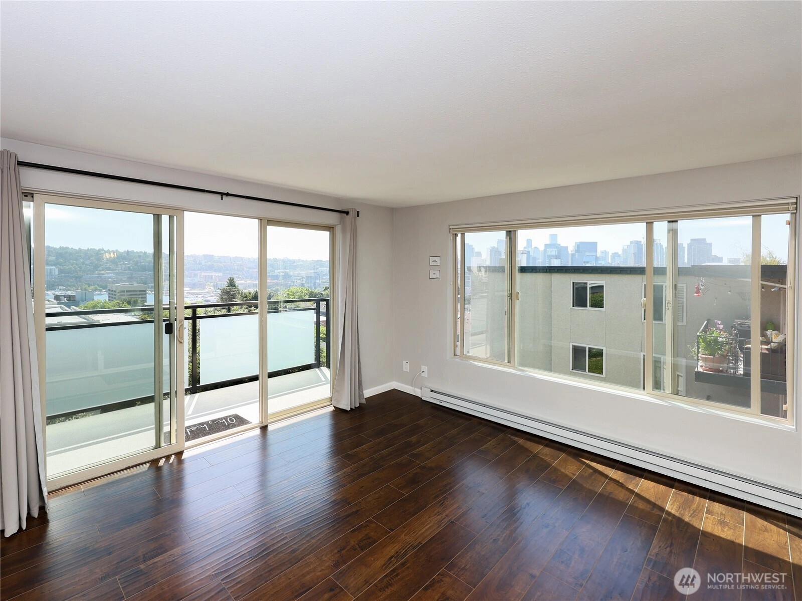 HUGE PRICE REDUCTION! COMPLETELY UPDATED QUEEN ANNE VIEW CONDO w/LOW HOA DUES AND 2 PARKING SPOTS! This 1327 sq ft, 2 Bedroom 2 Bath will EXCEED ALL your expectations! No Stone Unturned. Watch the SUNRISE and take in the PHENOMENAL VIEWS of S Lk Union, Space Needle & the Seattle Skyline. Tech Giants Amazon/Meta/Google/Apple and Climate Pledge Arena are your neighbors w/a Walk Score of 79! Light & Bright Corner Unit LIVES LARGE. FANTASTIC Kitchen w/Custom Cabinets/Granite & SS Appl. PLUS in unit Bosch W/D. BIG Great Rm/Dining Rm w/ Cozy fireplace. BIG Master Bdrm w/ 2 Closets AND VIEWS. GORGEOUS Tile Surround Baths. Private COVERED VIEW deck. Professionally Managed HOA w/ STRONG Reserves. Secure Garage. EZ access to I-5/99/520. Pet friendly!