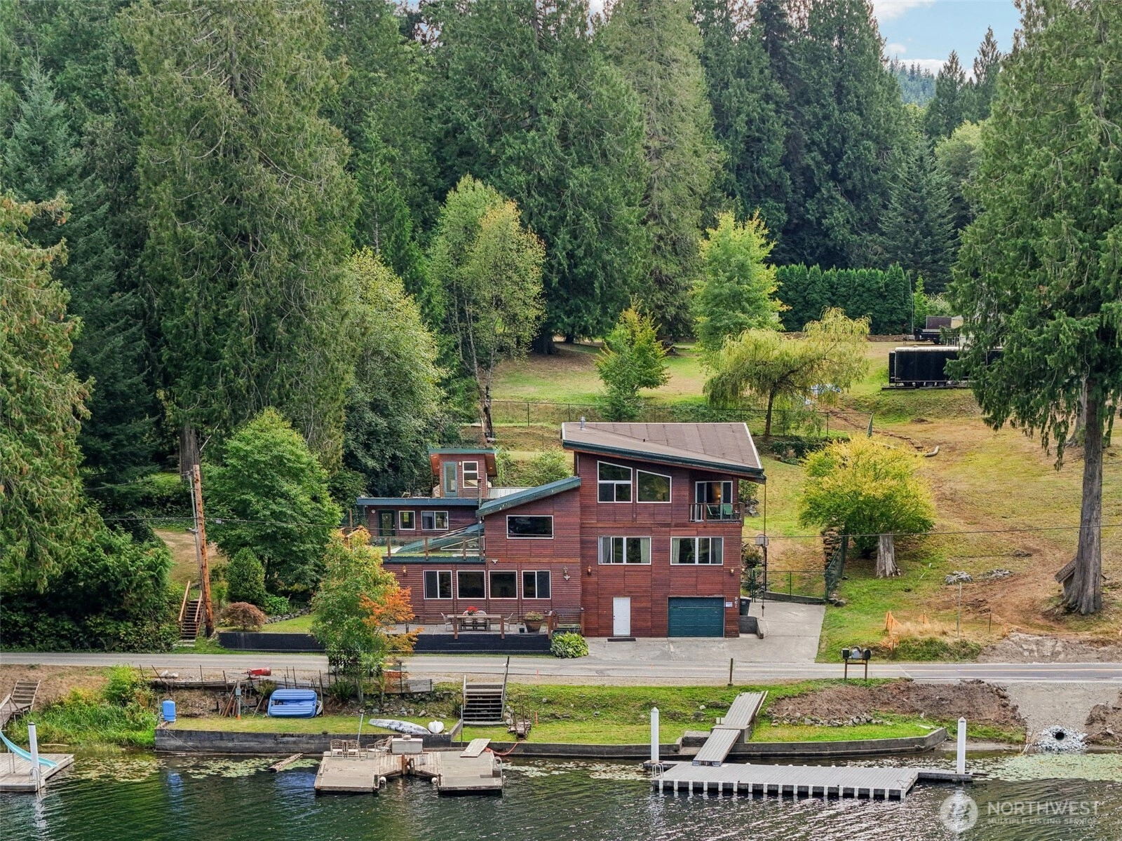 Welcome Home! 67ft of low bank waterfront with a private dock. Property is generating $80K annually as an established Airbnb, it delivers immediate income while giving visionary buyers a true canvas to elevate. Multiple kitchens, separate entrances, and a flexible layout make it ideal for multigenerational living, guest use, or strong rental returns. Enjoy full days on the water and unwind each evening with unobstructed mountain views. The location completes the package 30 minutes to the Canadian border, fast I-5 access, and surrounded by premier hiking, biking, and the iconic Samish Overlook. This price reflects a rare chance to secure premium waterfront at a number that allows room for upgrades, enhancements, or a full creative vision.