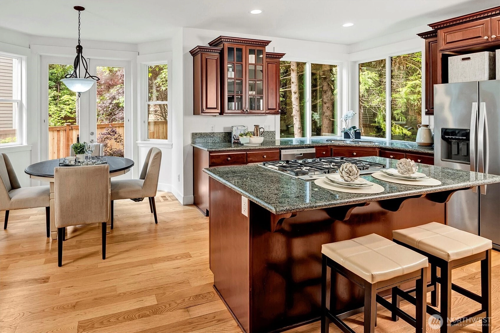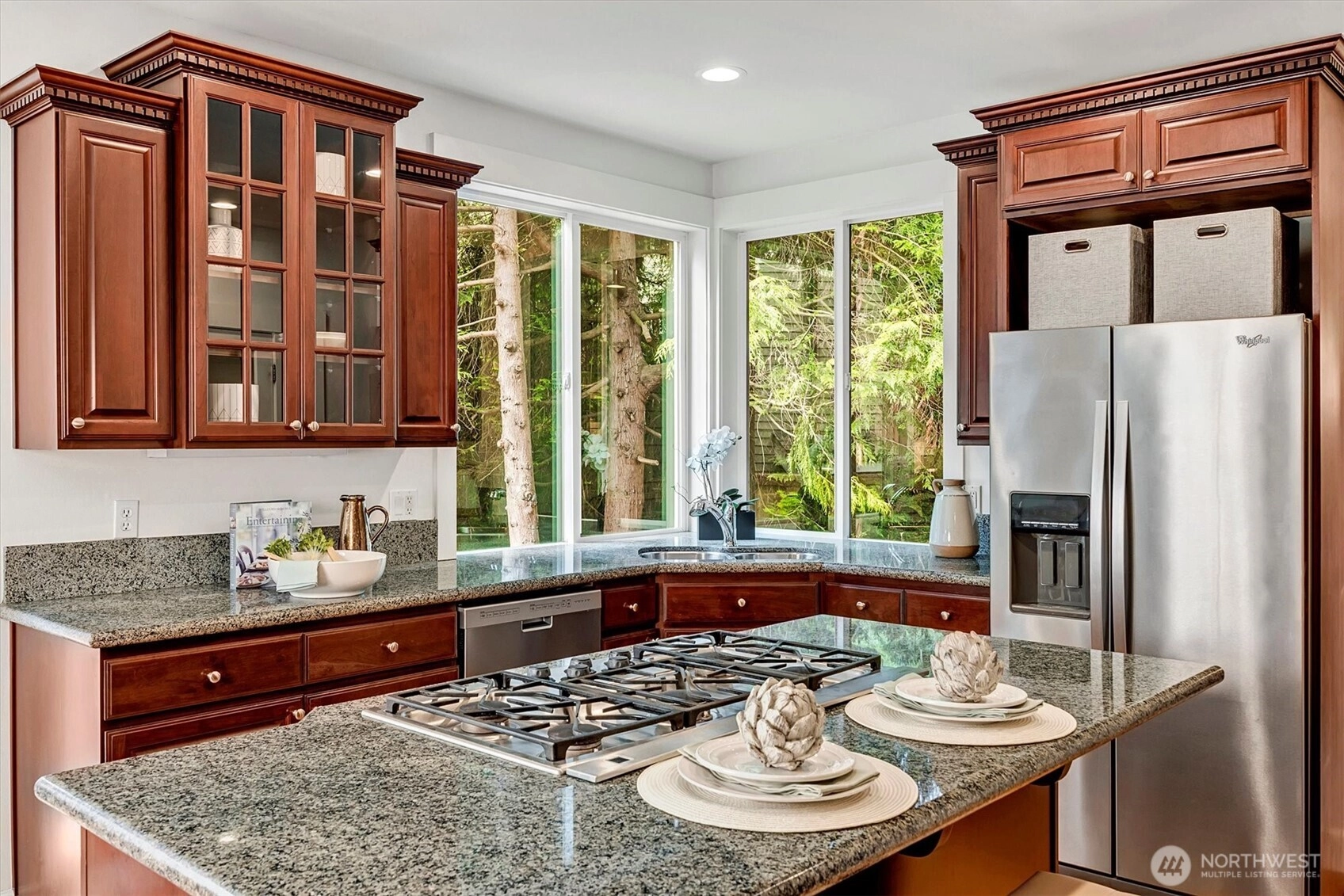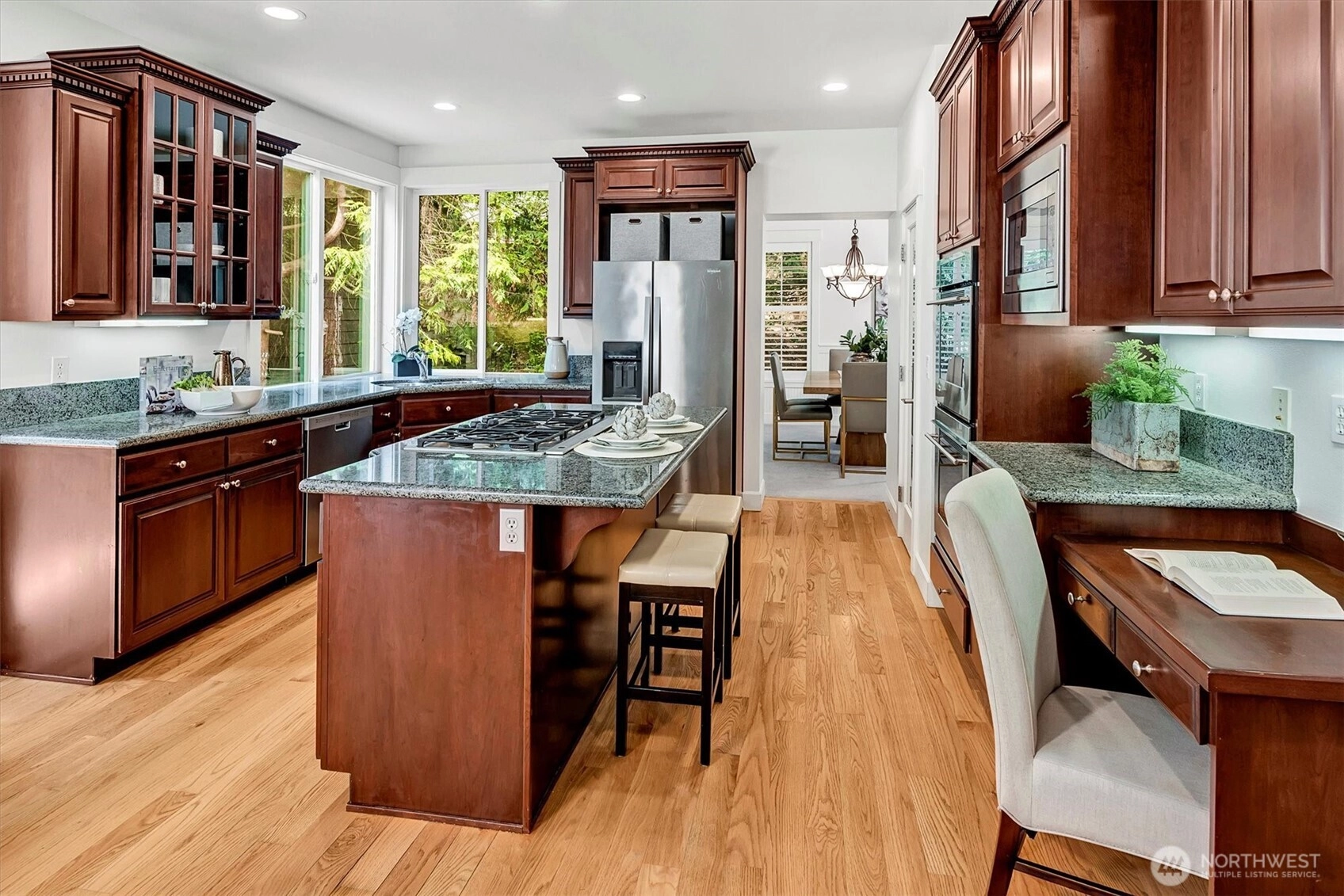 Don’t miss your chance to own this stunning 3,697 sq. ft. home w/timeless style & versatility. Ideally located- min. from Lake Hills Connector, downtown Bellevue, I-405, & I-90 . Step inside to a sweeping staircase, rich millwork, & plantation shutters. Host gatherings in the formal living & dining rooms, or enjoy the chef’s kitchen featuring cherry cabinetry, granite counters, a walk-in pantry, & a large island w/gas range. The kitchen flows seamlessly into a sunny breakfast nook & spacious family room w/a cozy fireplace. A main-floor den w/French doors offers a perfect spot for work or retreat. Upstairs, the luxurious primary suite includes a fireplace, jetted tub. 3 more bdrms, a full bath, & a vaulted bonus room complete the upper level