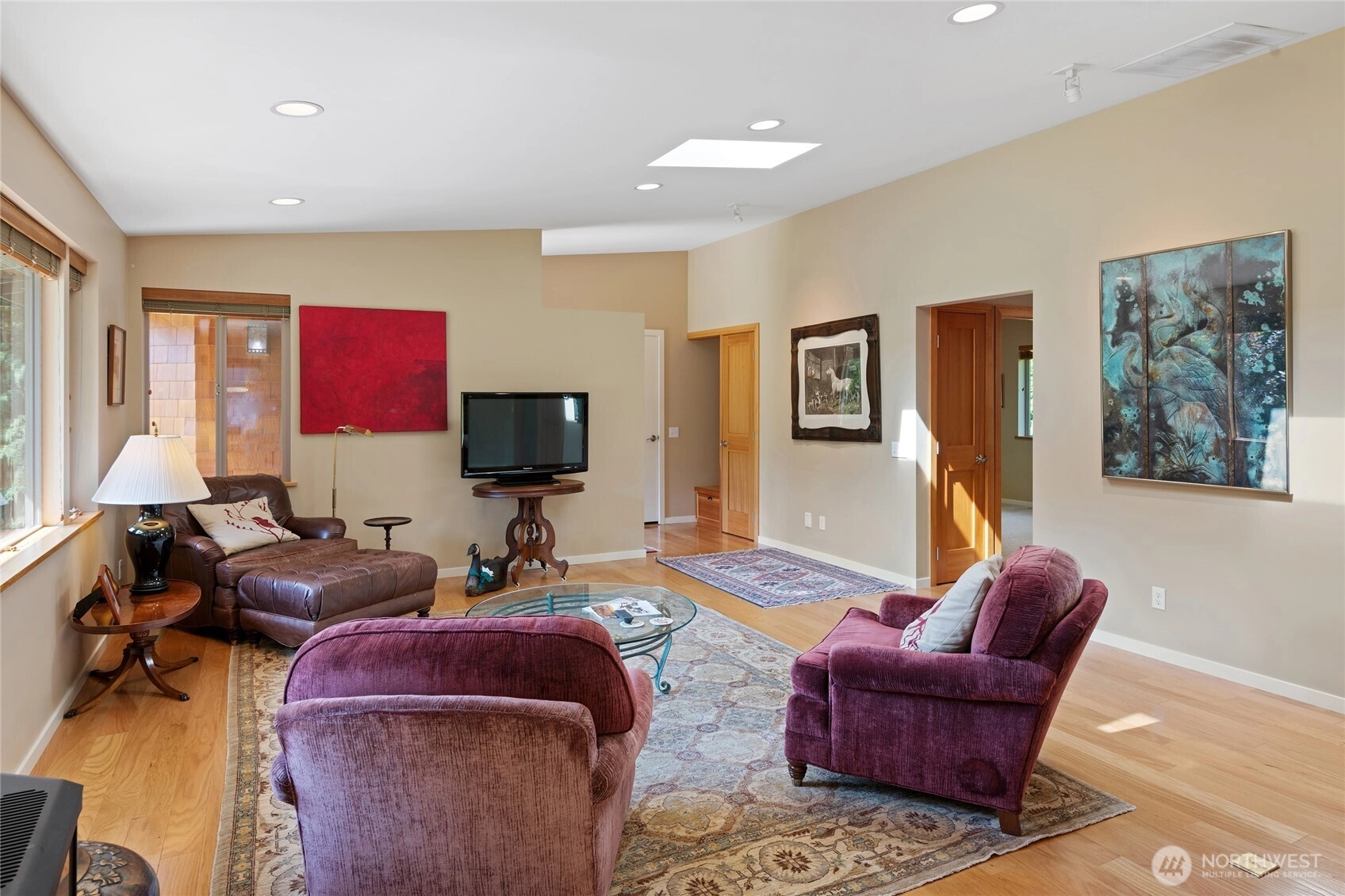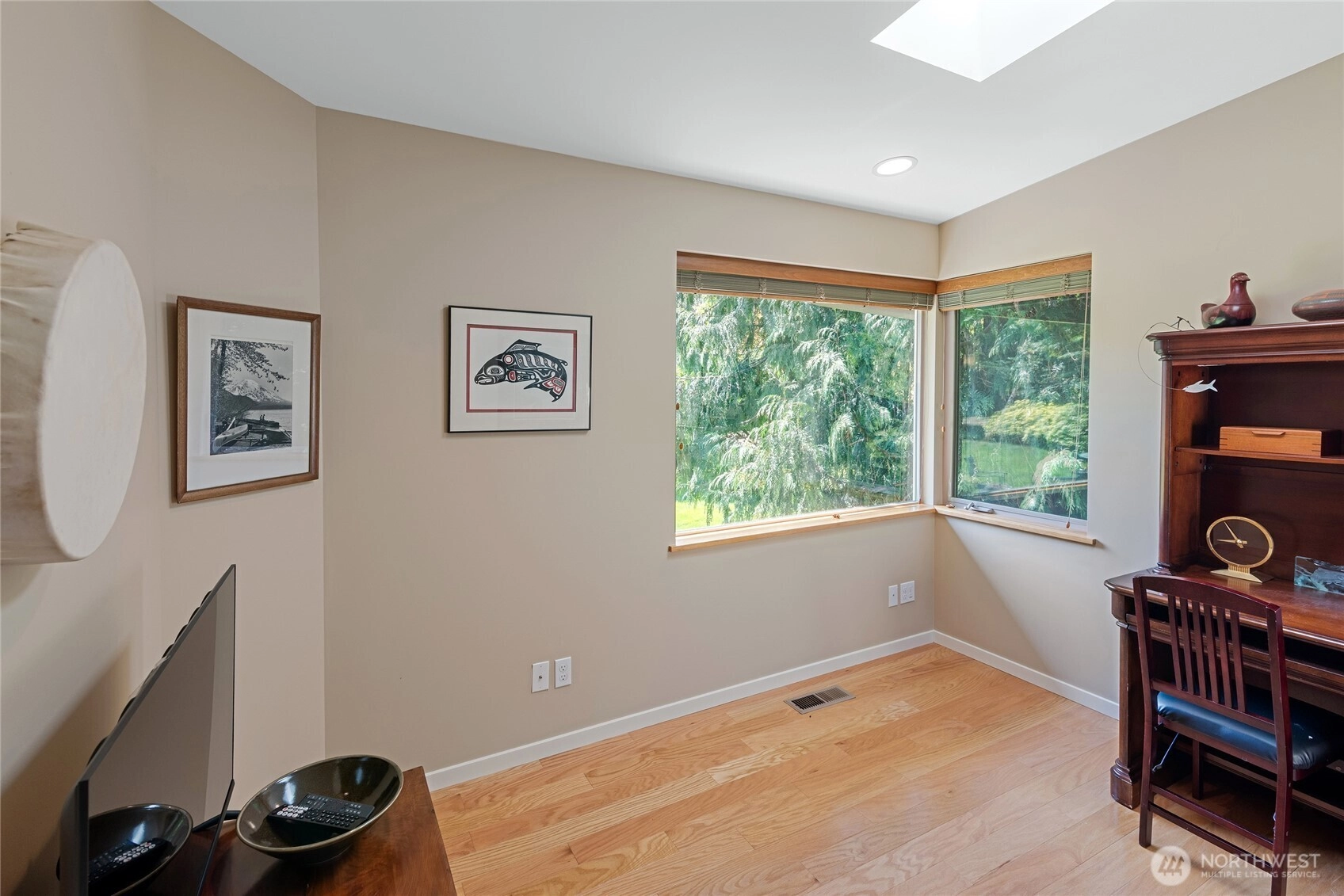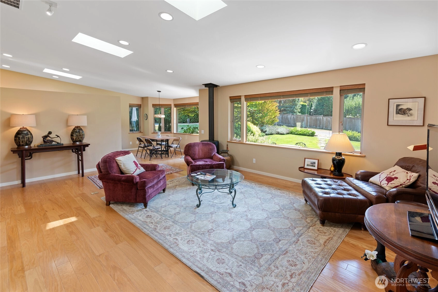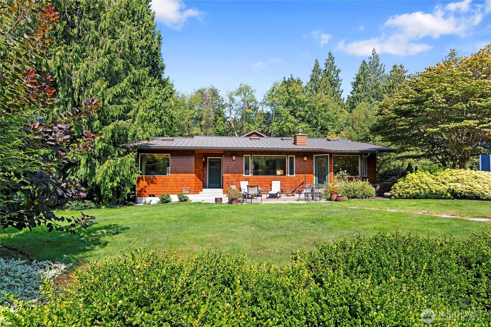 One level living at its best! Architecturally designed, custom built with easy care living in mind. Located just blocks to beach accesses on fully landscaped corner lot. Sunshine, natural light abounds in this home with eight skylights, many south facing windows. Quality construction throughout, wood shingle siding (newly treated), metal roof and professional landscaped/sprinkler system. Wonderful floor-plan has primary bedroom, 3/4 tiled shower bathroom, separated from 2nd bedroom with its own full bath--great for guests! Bright kitchen has stainless steel appliances, propane cooktop, near dining area with free standing propane stove for cozy ambiance. High ceiling in 2-garage, heat pump/forced air heating/cooling, generator hookup. A gem!
