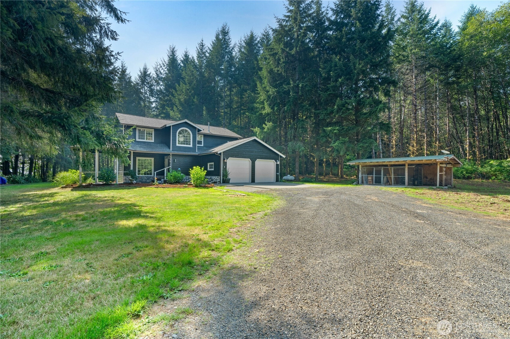 Welcome to this 2,451 sqft on 5.3 lush acres, this 4-bed plus office home features 2.5 bath, loaded with upgrades and charm. Step inside to vinyl flooring, newer windows, French doors, walk-in pantry & closet, jetted tub, and a cook’s kitchen with stainless steel appliances and island. Outside, enjoy a covered back patio for entertaining, a gazebo, concrete walkways, covered porch, automatic gate, dog kennel, and lots of yard. Fruit trees, mature foliage, and a creek winding through the land. Freshly painted exterior, new leaf guard gutters, and new water filtration system. Includes a 2-car attached garage and wiring ready for a generator. $5,000 carpet credit. This rare property offers a unique blend of comfort and seclusion, all in one.