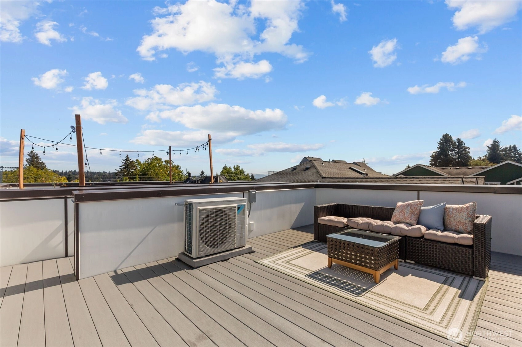 An affordable option for living in the city! This like-new home features huge windows that flood the space with natural light, modern kitchen with gas stove and large island seating area, A/C, private side yard with garden space, and rooftop deck with gorgeous 360 views. Prime location with easy access to Downtown, Green Lake, Greenwood, and Northgate Light Rail Station. No HOA. Welcome home!