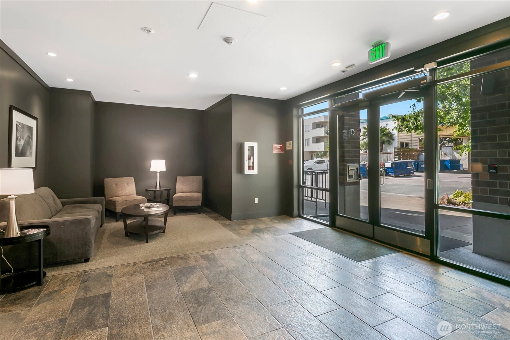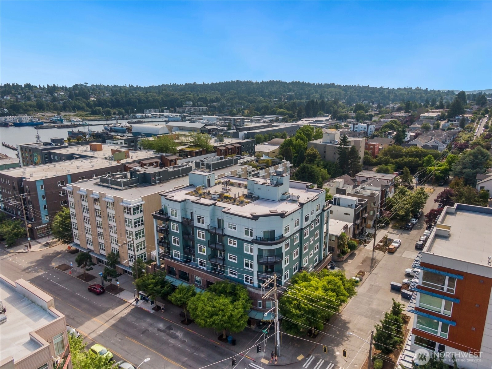 The Metropole is an impressive, boutique bldg of only 31 units, 90% owner-occupied, and it shows! Unit 45 is on the quiet-western side w/sunset & mountain views from every room; generous size deck off lvg room. Fresh interior paint, hardwds in living area, plus a rare double-sided gas fireplace in the living rm & king-sized bedroom-new carpet. Kitchen w/granite counters, gas range, abundance of cabinets & breakfast bar. A floor plan w/ sharp architectural details & character, like no other. Professionally mngd HOA, rental cap, deep reserves, no assmnts & long term ownership. Separate floor for storage;secure garage w/EV charging. Expansive rooftop deck worth using. All within blocks to Ballard's finest! Great value for this high end condo!