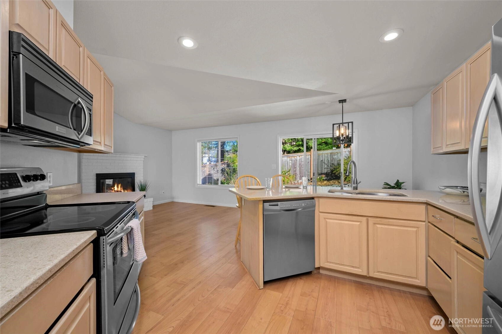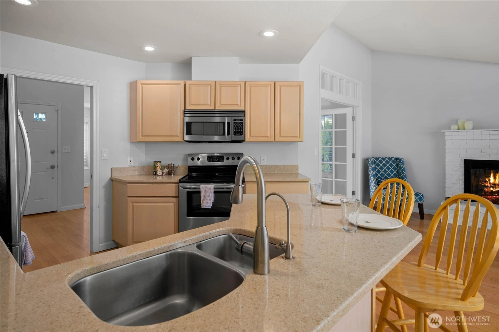 Super clean 3 BR, 1.75 BA rambler on a quiet cul-de-sac in Anacortes’ desirable Clearidge neighborhood. Open floor plan features a kitchen w/stainless appliances, eating bar & dining area that flows to family rm & formal living rm w/fireplace. French doors open to the primary suite w/private 3/4 bath. Bathrooms are beautifully updated. Private backyard & attached 2-car garage. Just steps from the Guemes Channel trail, with easy access to parks, schools & town—this home offers both comfort & convenience!