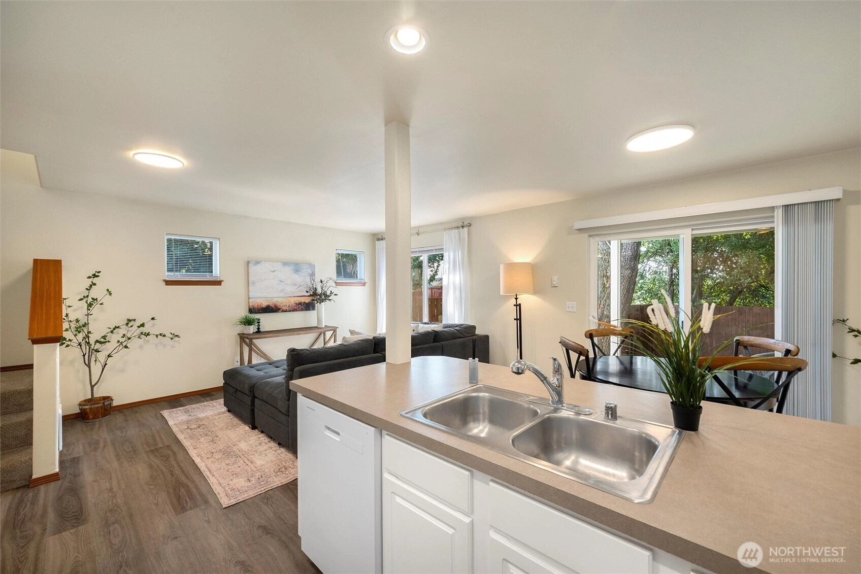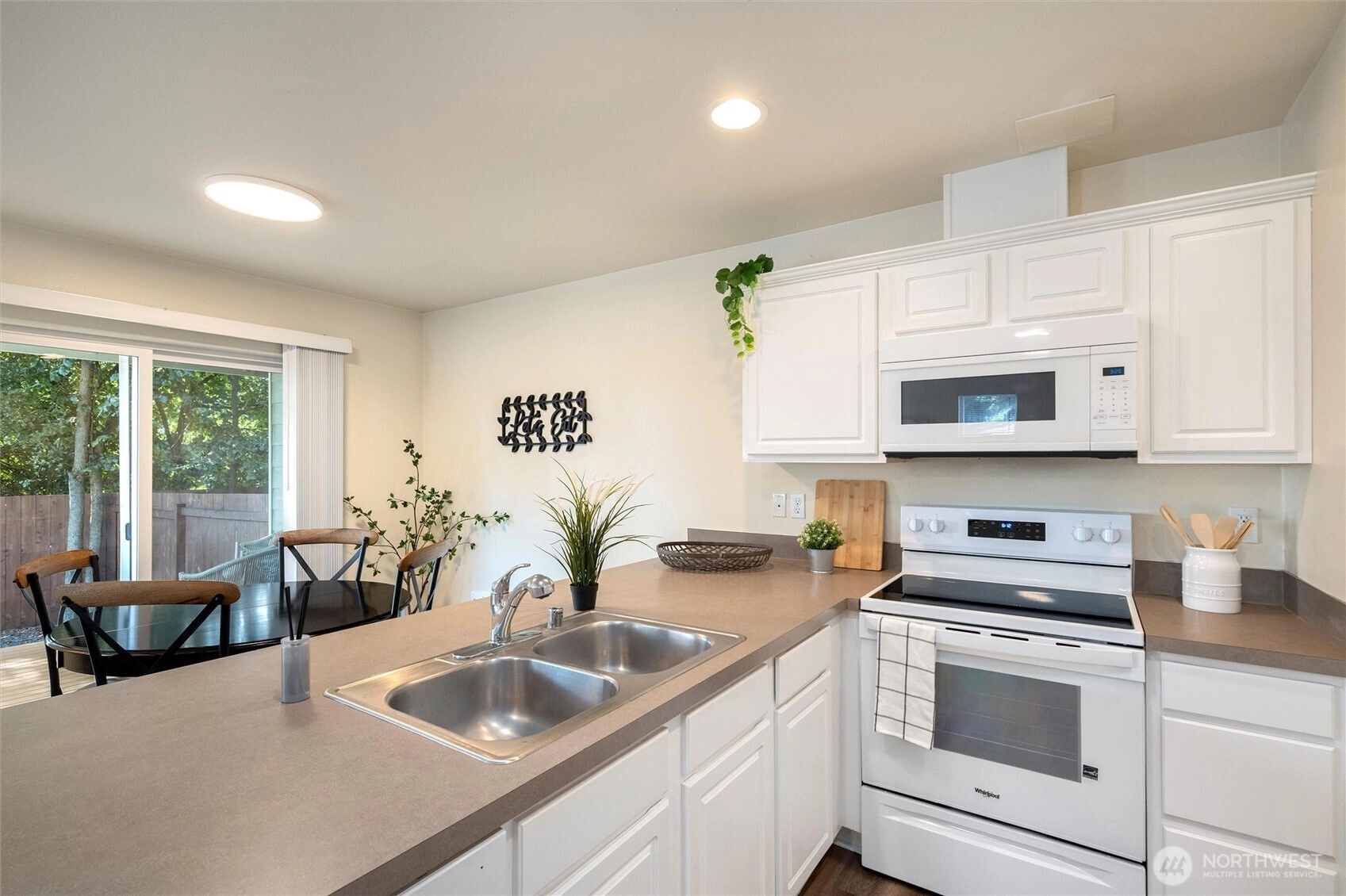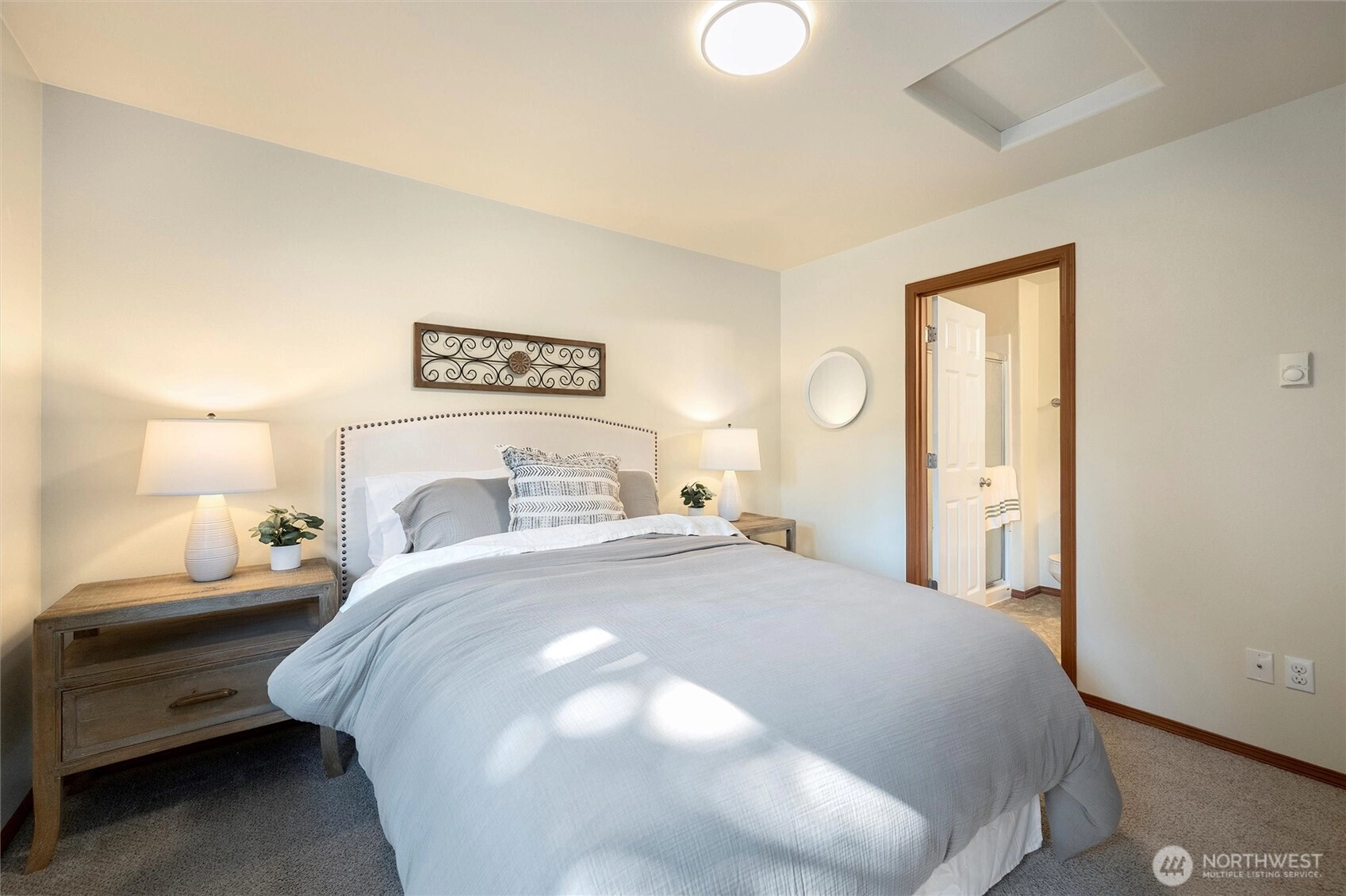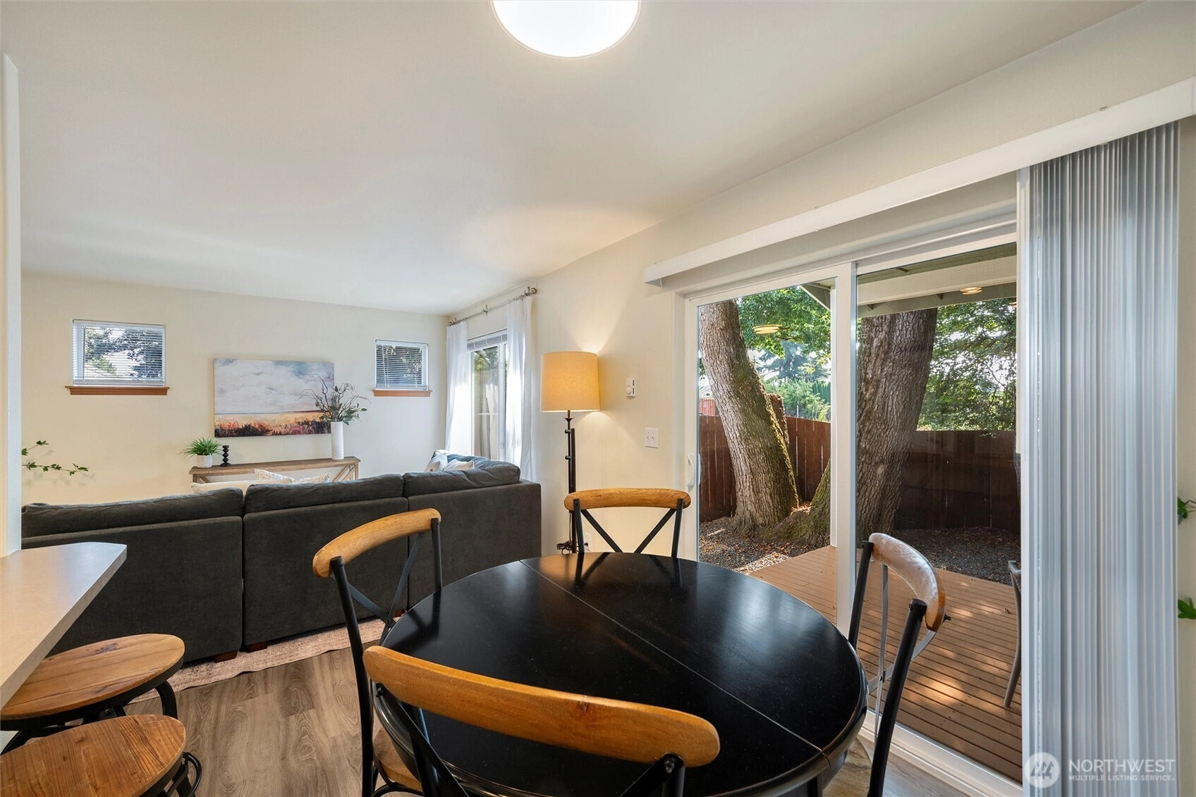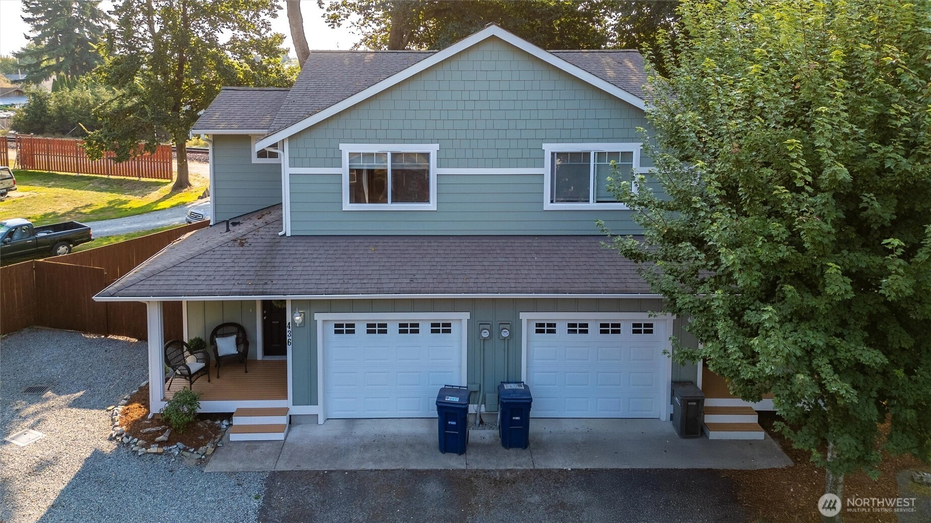Charming end-unit single-family townhome with 1,148 sq. ft., 2 bedrooms, 2 full baths, and a powder bath. Freshly updated inside and out with new paint, appliances, and light fixtures—this home is spotless and move-in ready! The main level offers an inviting living room, bright kitchen, and convenient half bath; upstairs, both bedrooms enjoy private full baths. A single-car garage provides extra storage. Enjoy a cozy fenced yard with a deck—ideal for morning coffee or pets. Walk to downtown restaurants, with quick access to I-5. Comfort, convenience, and affordability—perfect as a starter home or investment! This property is not located within the 100-year flood plain.