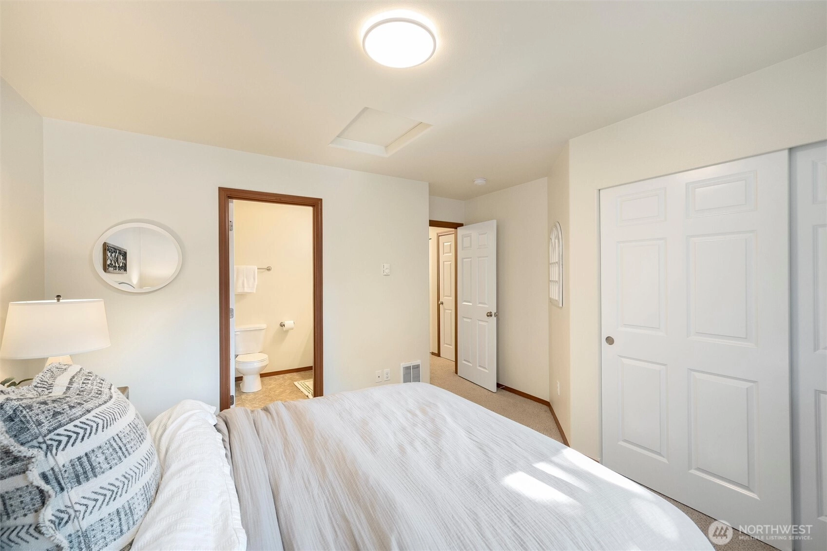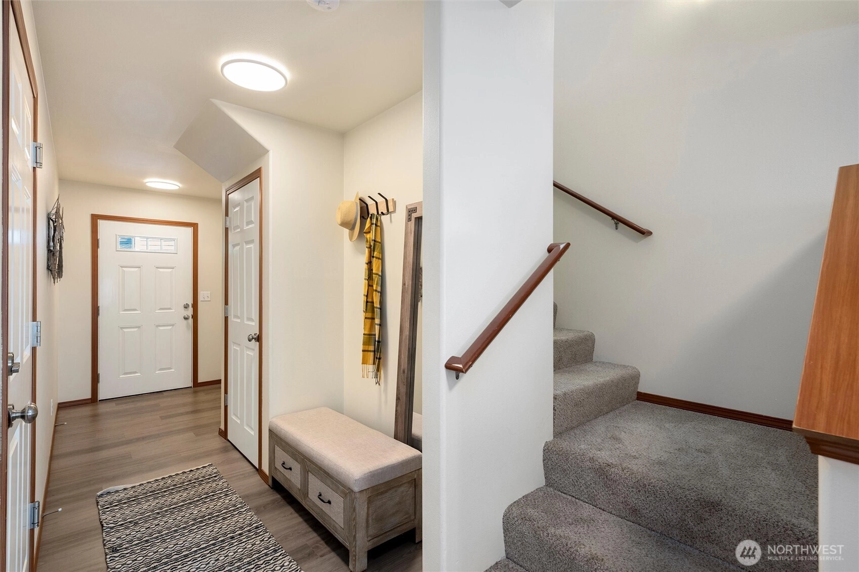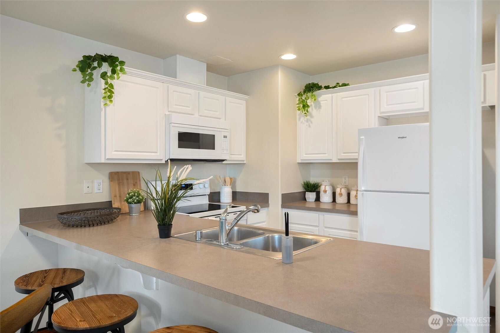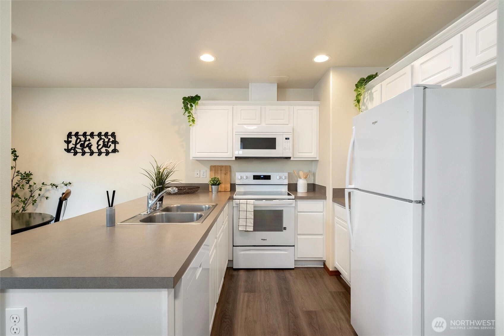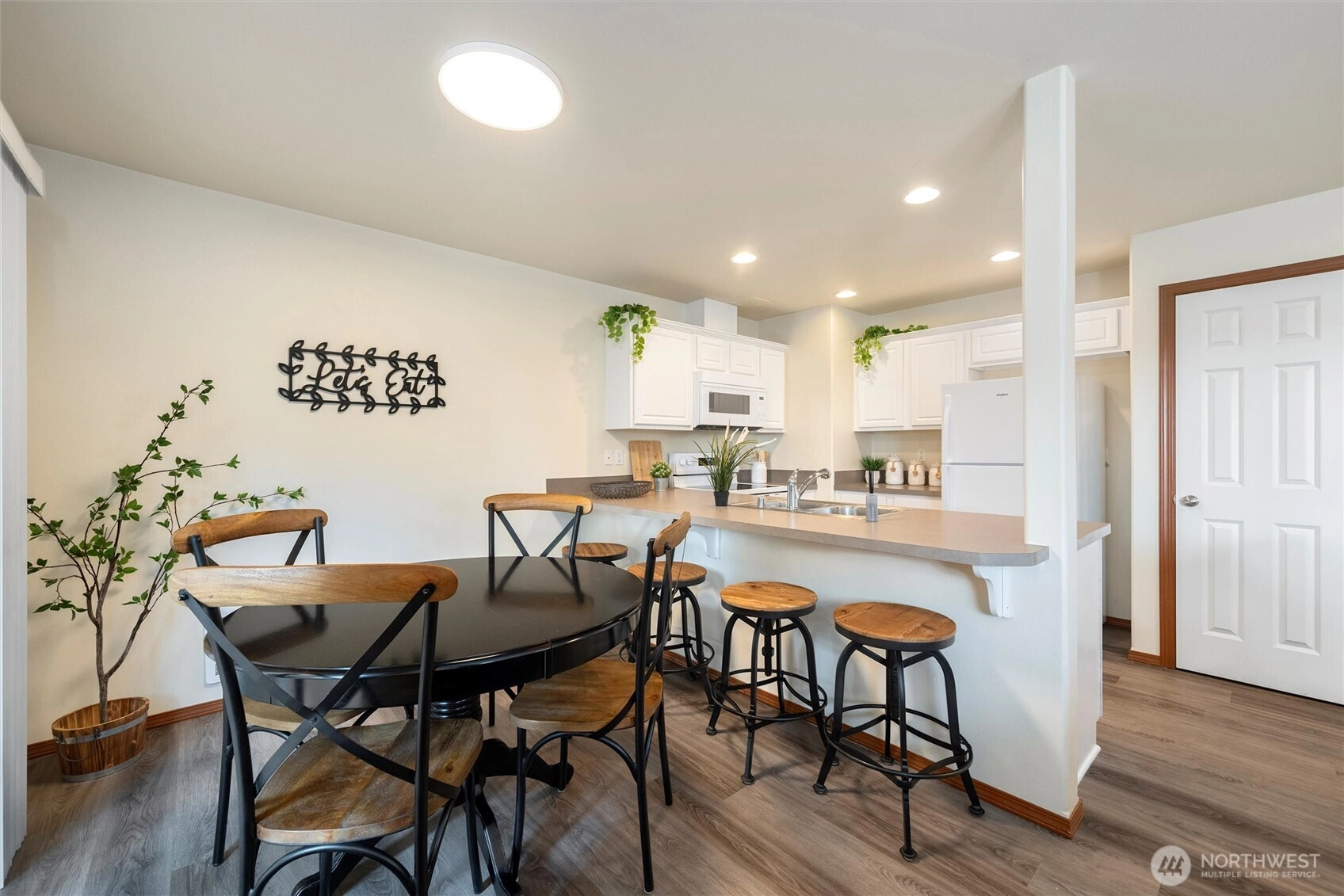 Charming end-unit single-family townhome with 1,148 sq. ft., 2 bedrooms, 2 full baths, and a powder bath. Freshly updated inside and out with new paint, appliances, and light fixtures—this home is spotless and move-in ready! The main level offers an inviting living room, bright kitchen, and convenient half bath; upstairs, both bedrooms enjoy private full baths. A single-car garage provides extra storage. Enjoy a cozy fenced yard with a deck—ideal for morning coffee or pets. Walk to downtown restaurants, with quick access to I-5. Comfort, convenience, and affordability—perfect as a starter home or investment! This property is not located within the 100-year flood plain.