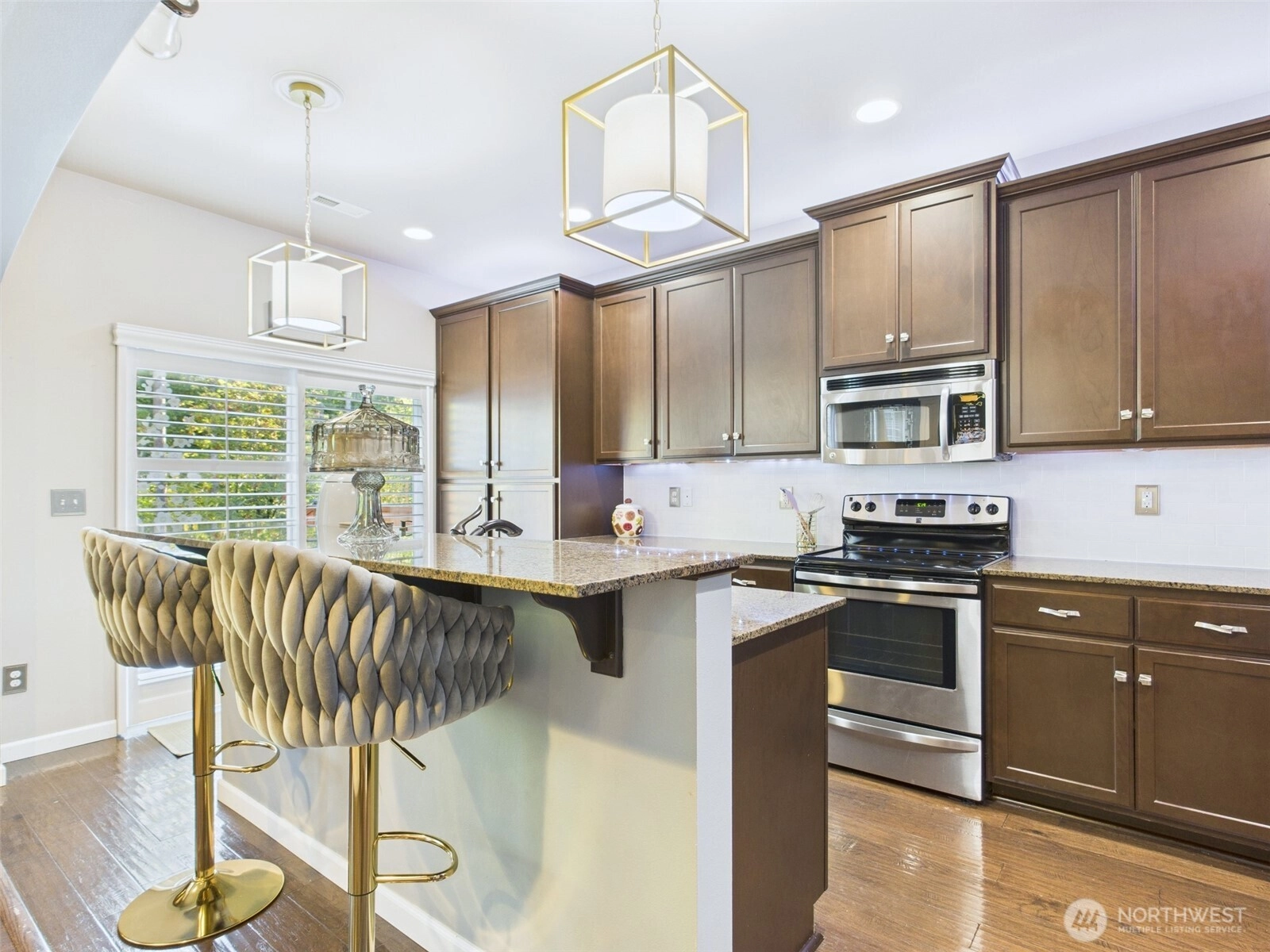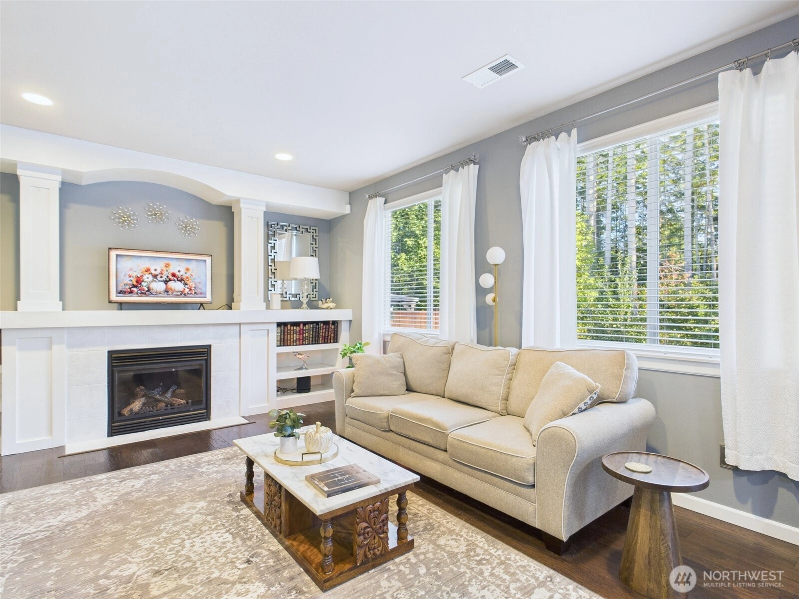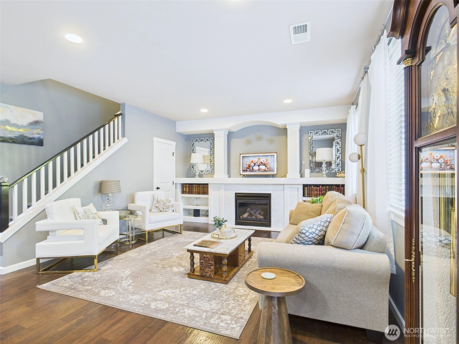 Welcome home to this immaculate one-owner home in the Evergreen Pointe neighborhood. The grand covered entry opens to new hardwood floors, office w/ French doors, formal dining room & an amazing kitchen w/ granite counters & 42" upper cabinets while open to the living room. Art niches and built in shelving surround the gas fireplace. Upstairs features a large bonus room, full bath & laundry as well as 2 guest rooms. Huge primary bedroom opens to a fantastic 5 pc bath. Stroll in the pass-through to a dream custom closet & dressing room! Porcelain tile floors, high end chandelier & built-ins to showcase your wardrobe. Apple trees, sprinkler system, custom shed, aggregate patio & private fenced yard to enjoy the Golden Hour. 3 car garage too.