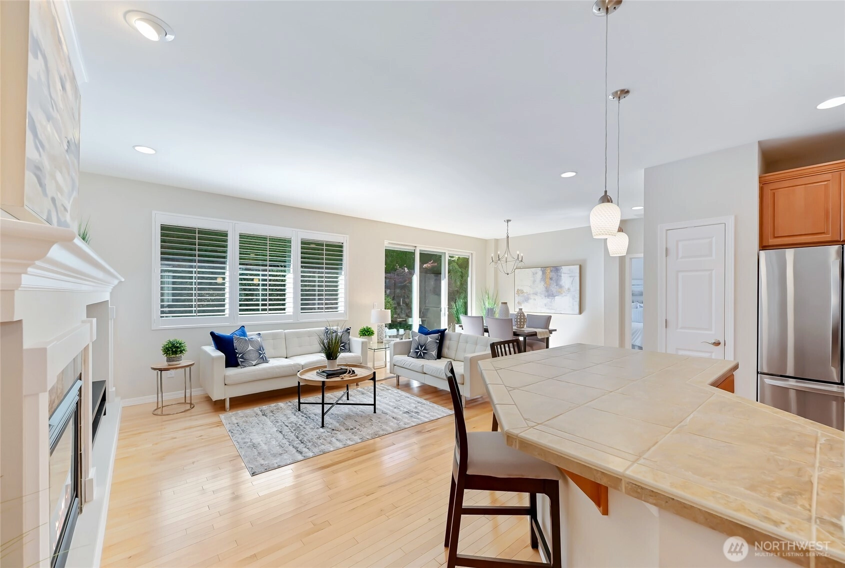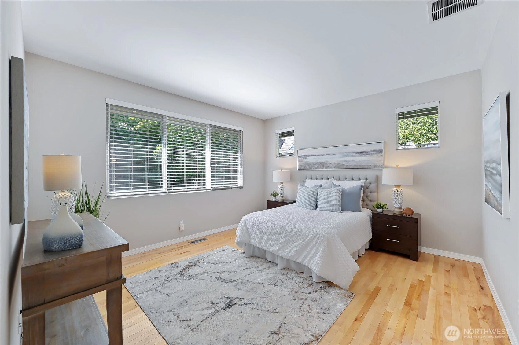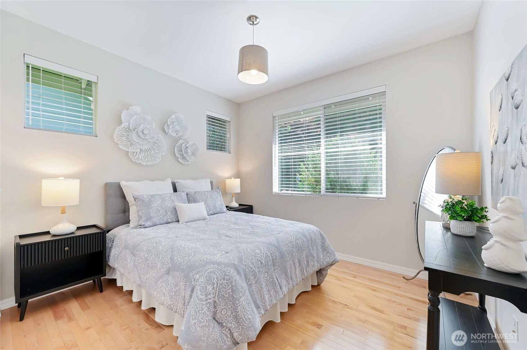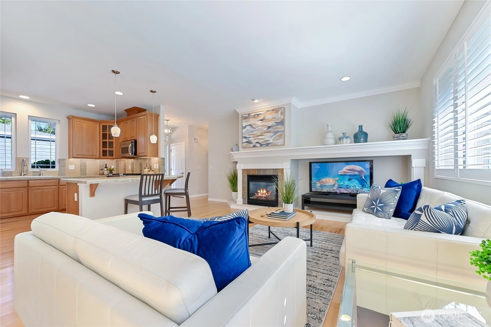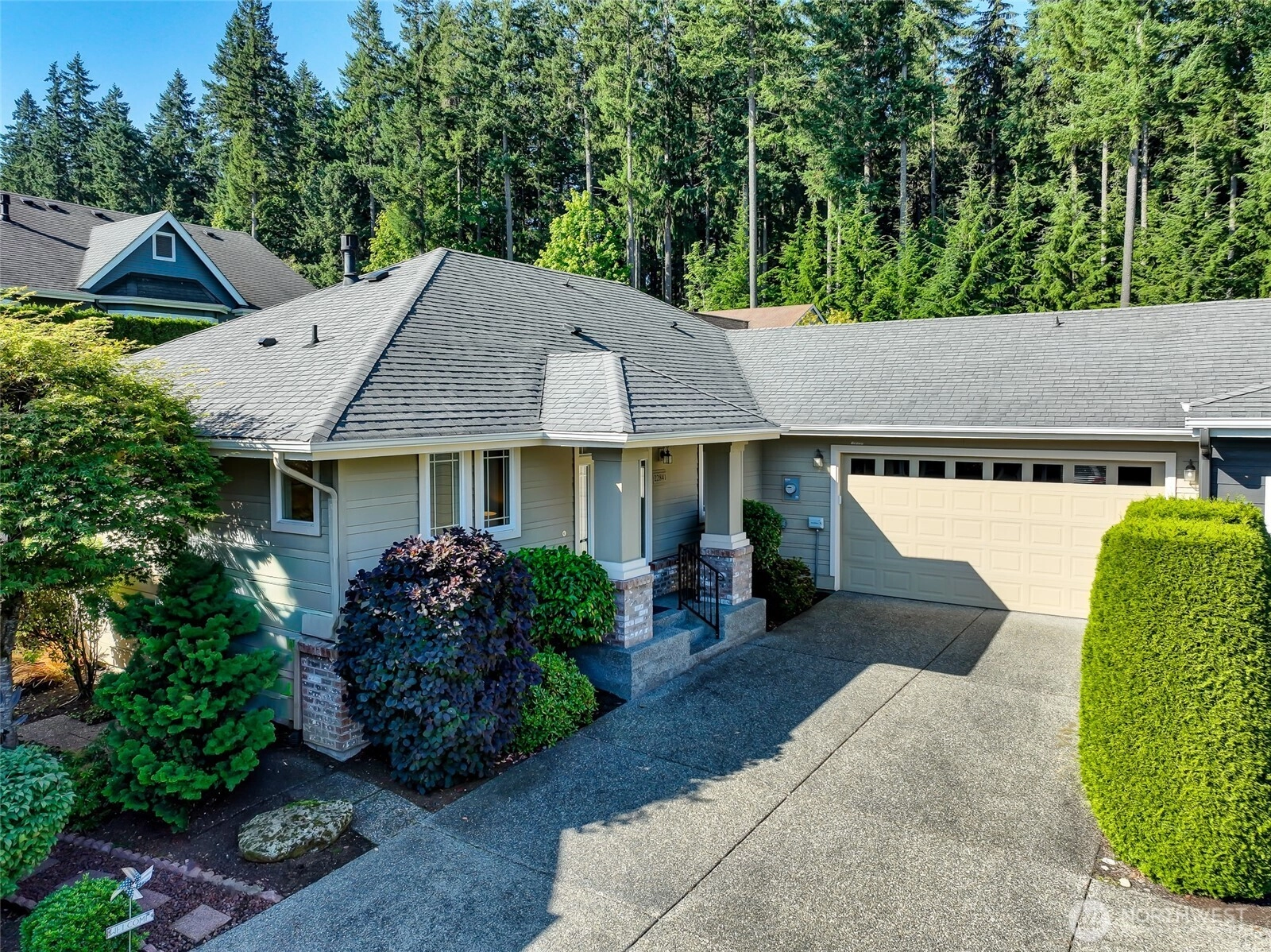 Resort style living awaits in this coveted Discovery model home, the pearl of the Port collection. Set on a sunny corner lot, this home is attached only at the garage and lives like a stand-alone home. An abundance of windows and 9’ceilings create light filled living spaces and the expansive great room flows easily to the fully fenced, private backyard w/large patio surrounded by mature landscaping and flower beds. You'll find gorgeous hardwood floors thru-out, crisp white millwork and plantation shutters. Large kitchen w/42" cabinetry. Owners' suite w/step-in shower & 2 walk-in closets. 2nd bdrm w/adjacent full bath. Home office w/custom barn door. BRAND NEW ROOF, New furnace in 2023/H2O tank in 2020/AC/Pre-inspected. The Perfect Home! 55+
