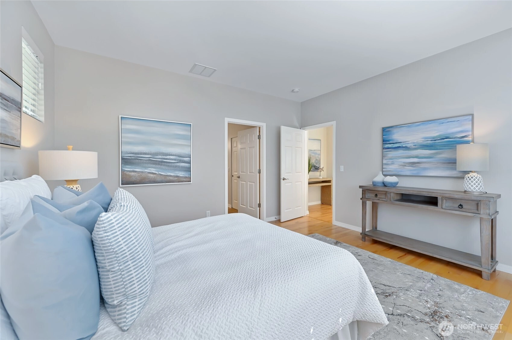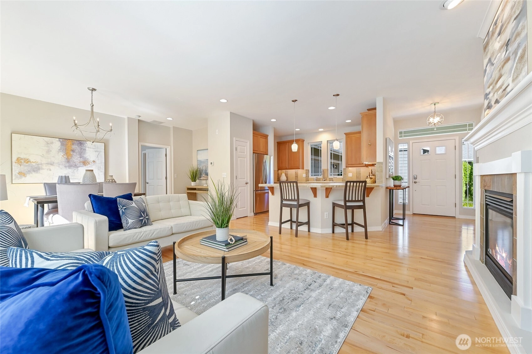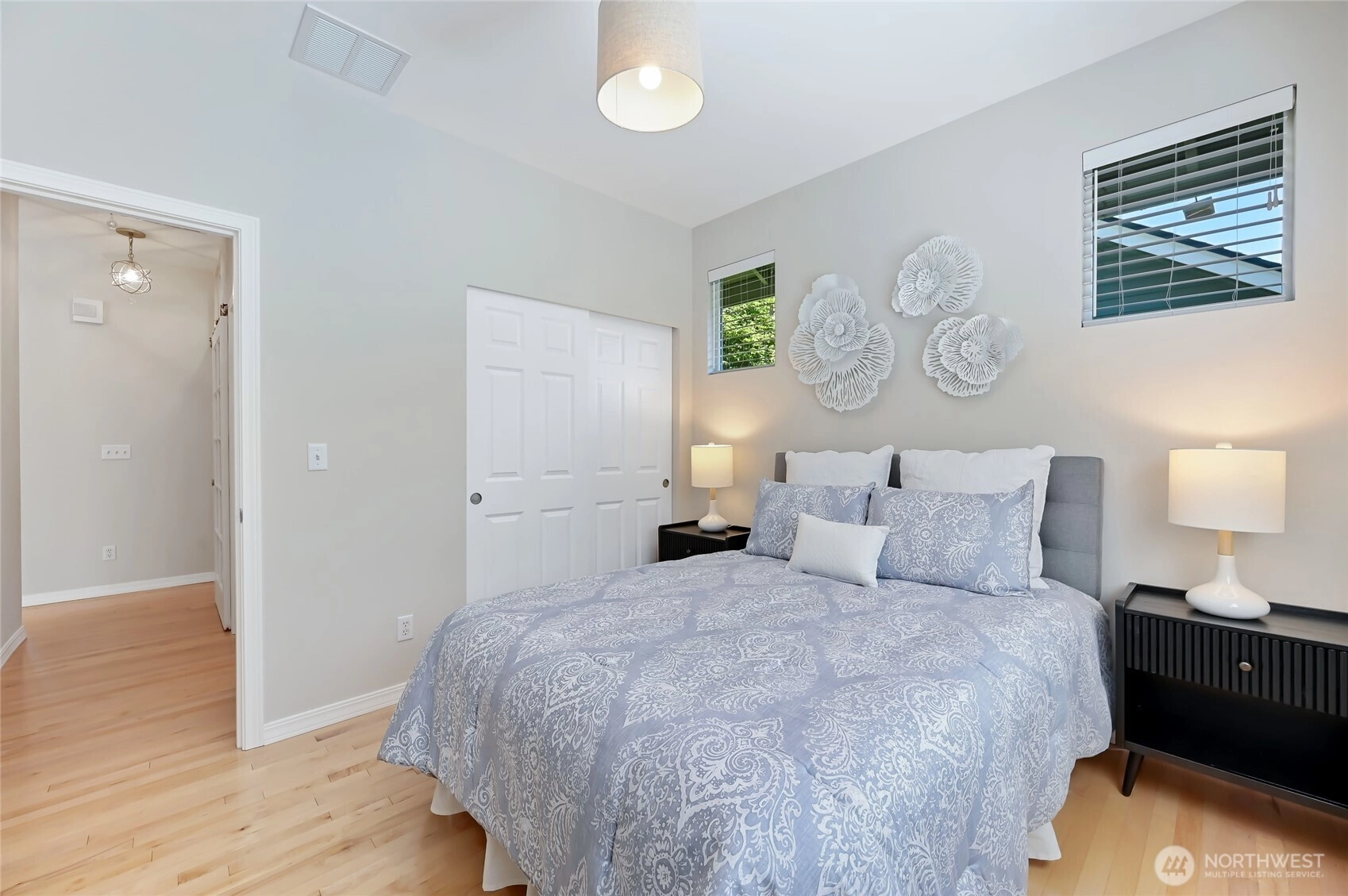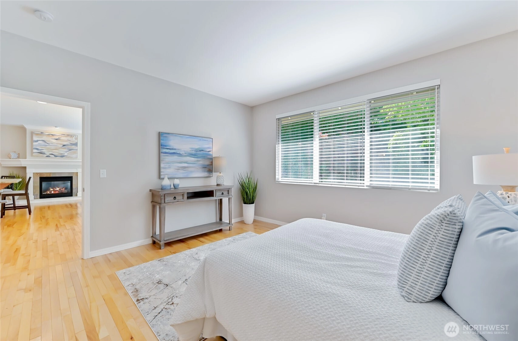 Resort style living awaits in this coveted Discovery model home, the pearl of the Port collection. Set on a sunny corner lot, this home is attached only at the garage and lives like a stand-alone home. An abundance of windows and 9’ceilings create light filled living spaces and the expansive great room flows easily to the fully fenced, private backyard w/large patio surrounded by mature landscaping and flower beds. You'll find gorgeous hardwood floors thru-out, crisp white millwork and plantation shutters. Large kitchen w/42" cabinetry. Owners' suite w/step-in shower & 2 walk-in closets. 2nd bdrm w/adjacent full bath. Home office w/custom barn door. BRAND NEW ROOF, New furnace in 2023/H2O tank in 2020/AC/Pre-inspected. The Perfect Home! 55+