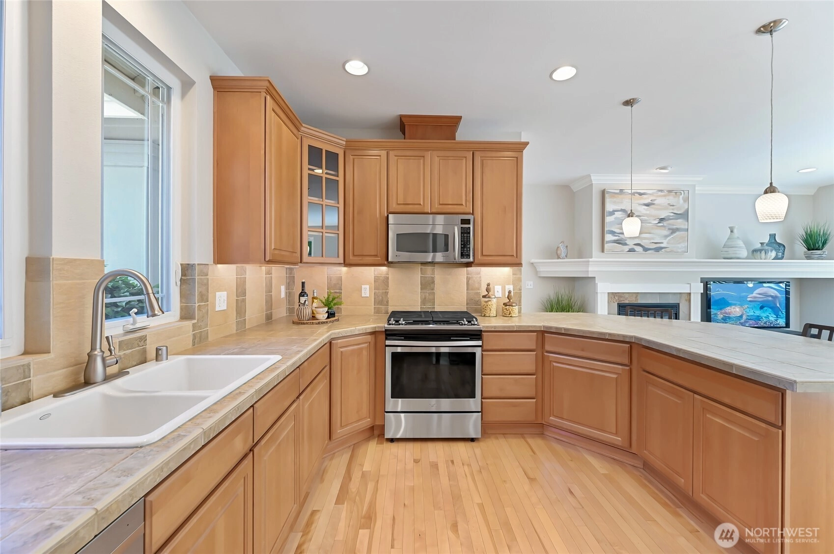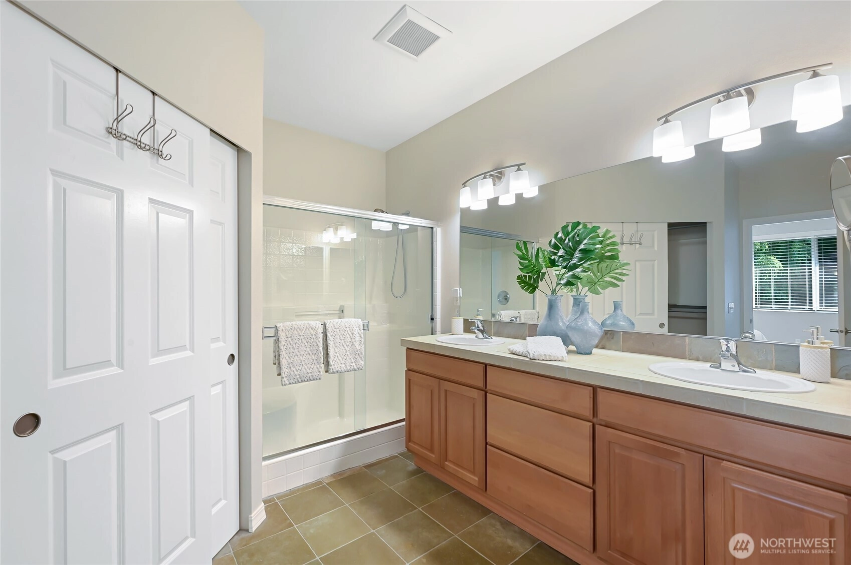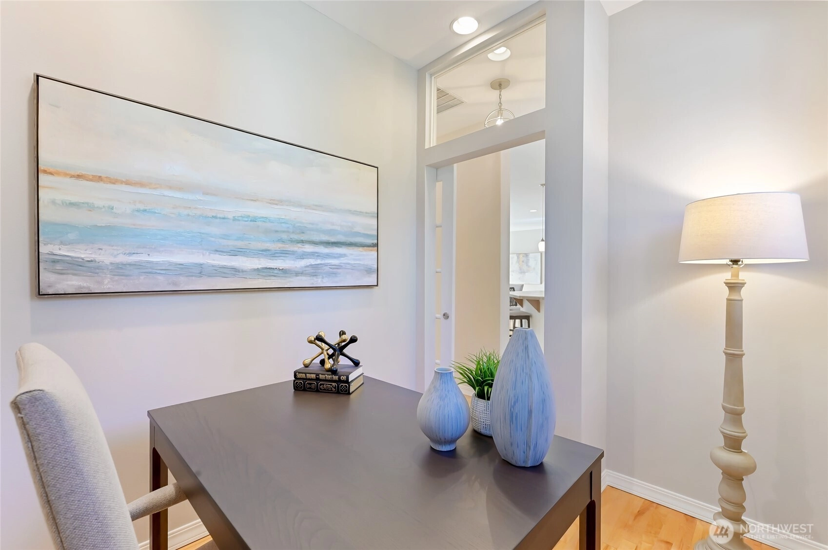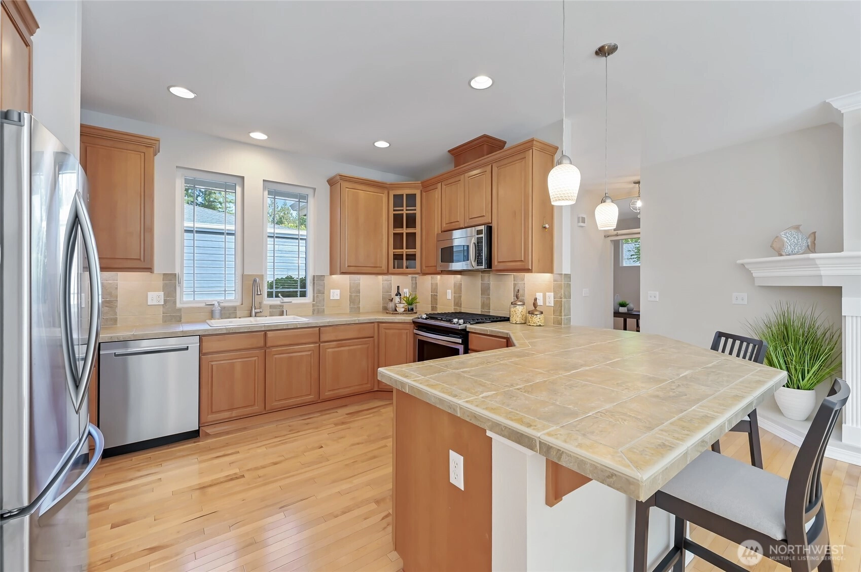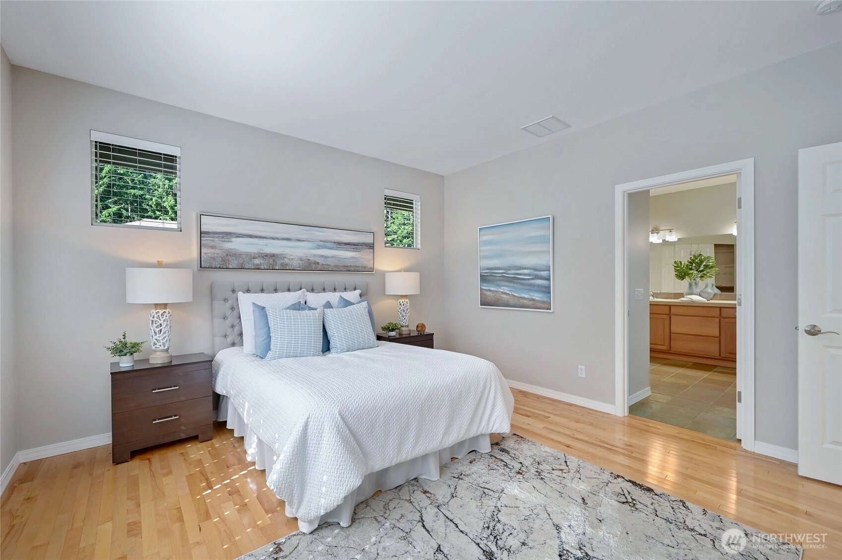 Resort style living awaits in this coveted Discovery model home, the pearl of the Port collection. Set on a sunny corner lot, this home is attached only at the garage and lives like a stand-alone home. An abundance of windows and 9’ceilings create light filled living spaces and the expansive great room flows easily to the fully fenced, private backyard w/large patio surrounded by mature landscaping and flower beds. You'll find gorgeous hardwood floors thru-out, crisp white millwork and plantation shutters. Large kitchen w/42" cabinetry. Owners' suite w/step-in shower & 2 walk-in closets. 2nd bdrm w/adjacent full bath. Home office w/custom barn door. BRAND NEW ROOF, New furnace in 2023/H2O tank in 2020/AC/Pre-inspected. The Perfect Home! 55+