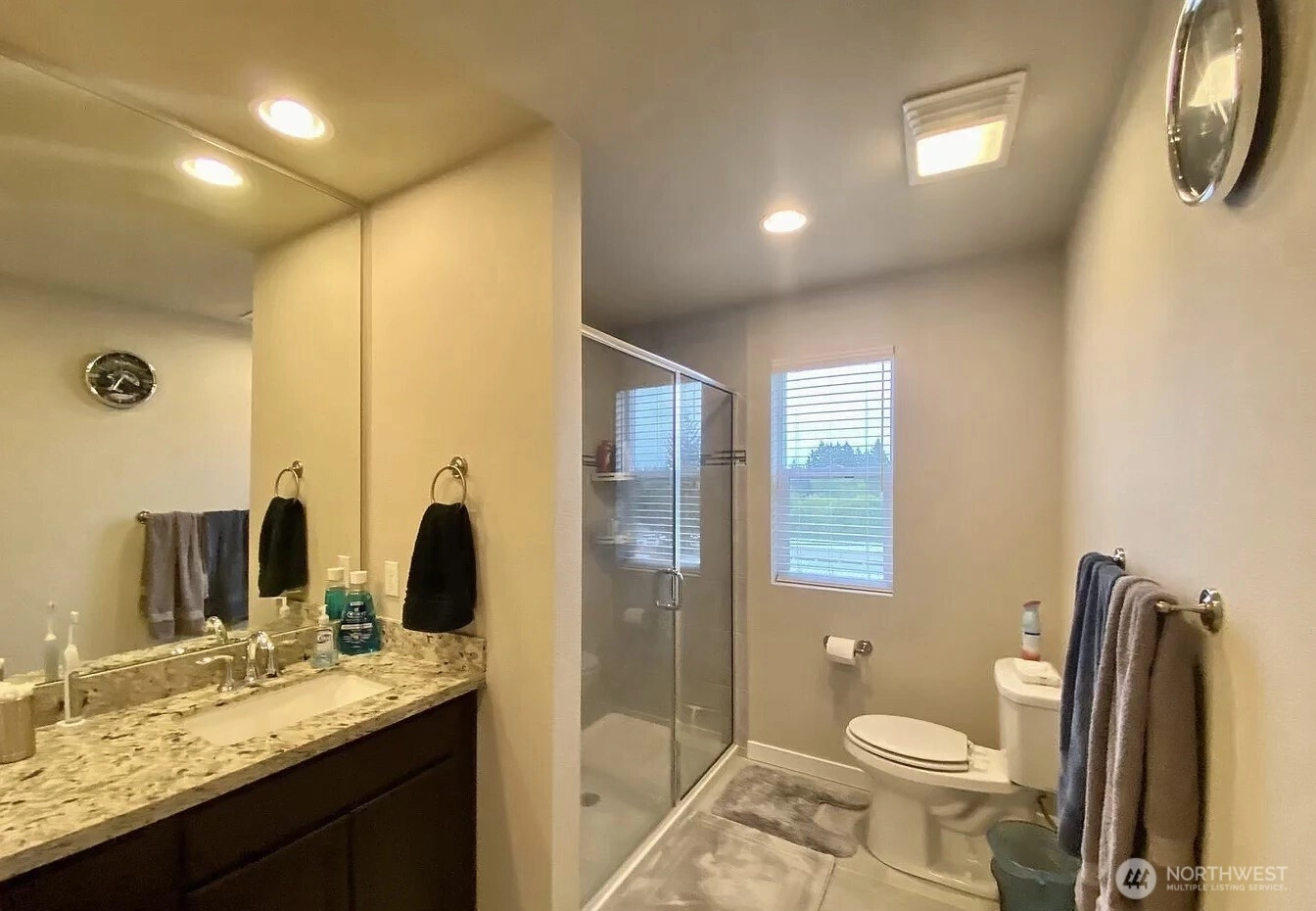 Discover this stunning, meticulously maintained residence that has just undergone a complete renovation. Enjoy a host of upgrades, including new carpet, fresh interior paint, modern appliances, and hardware.The main floor features an open-concept kitchen and family room that seamlessly connects to a covered deck, offering breathtaking mountain views. On the lower level, you'll find a spacious den that can easily be transformed into a 3rd bedroom, complete with an additional covered patio. The upper level boasts a generous primary bedroom with an en-suite bath and walk-in closet, while the second bedroom also includes its own private bath and ample closet space. Located near Paine Field Airport and popular shopping and dining options.