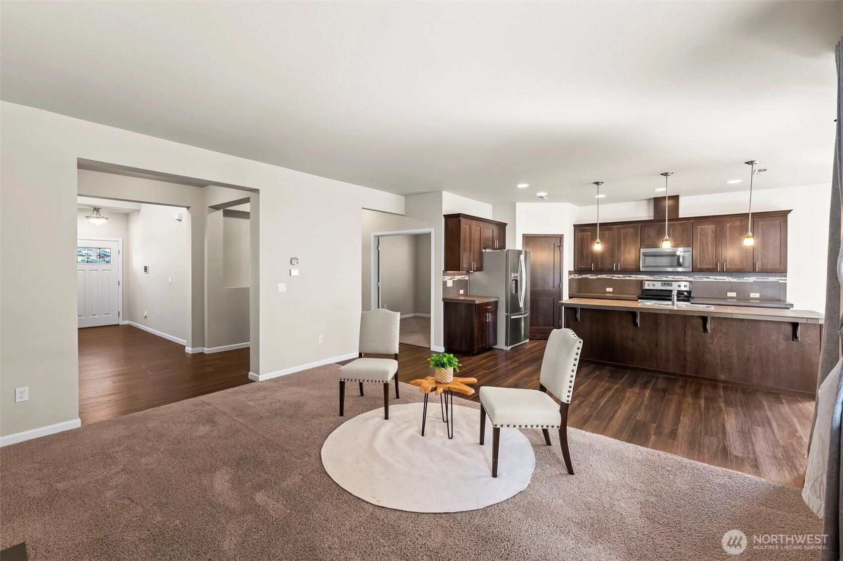 Step into comfort and connection in this inviting 4-bedroom, 2,482 sq ft home in a gated Spanaway community. Imagine cooking in the spacious kitchen with a center island while friends gather by the gas fireplace in the open living area. A main floor office makes working from home easy, while the serene primary suite offers your own retreat with a spa-like 5-piece bath, soaker tub, and expansive walk-in closet. All the other bedrooms are great size and each have a walk in closet as well! This home has a generous amount of storage space! Host year-round BBQs and evenings under the covered outdoor space. With shopping, freeways, and JBLM just minutes away, this home balances everyday convenience with the perfect place to unwind.
