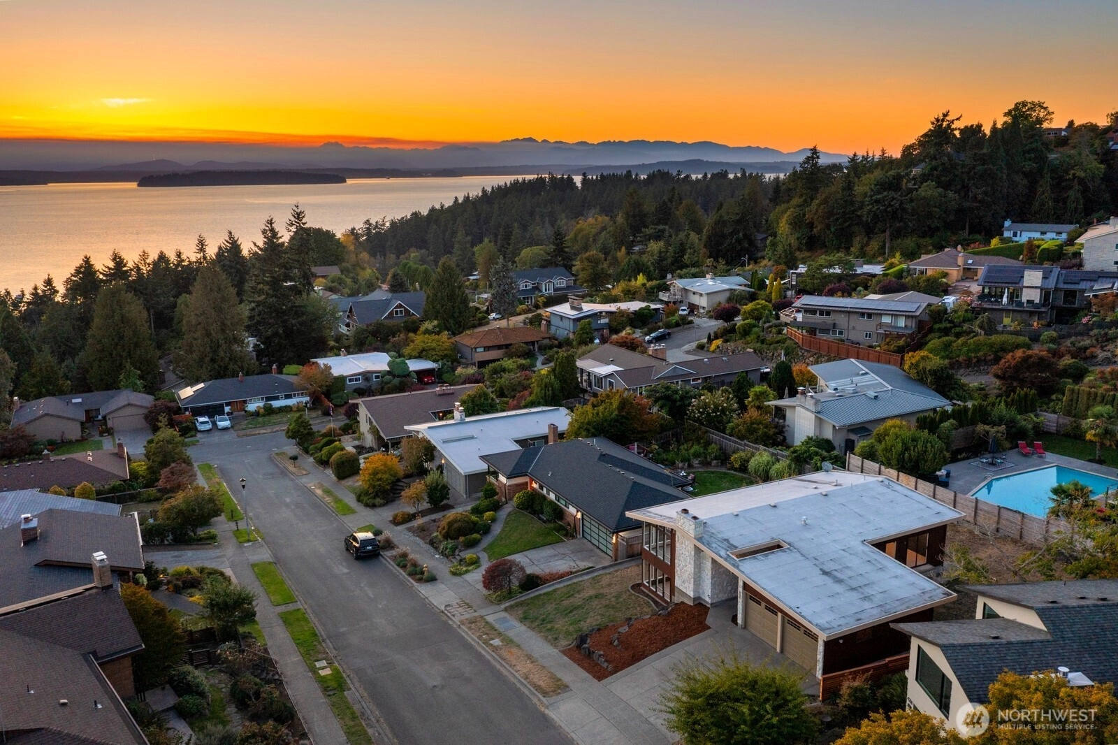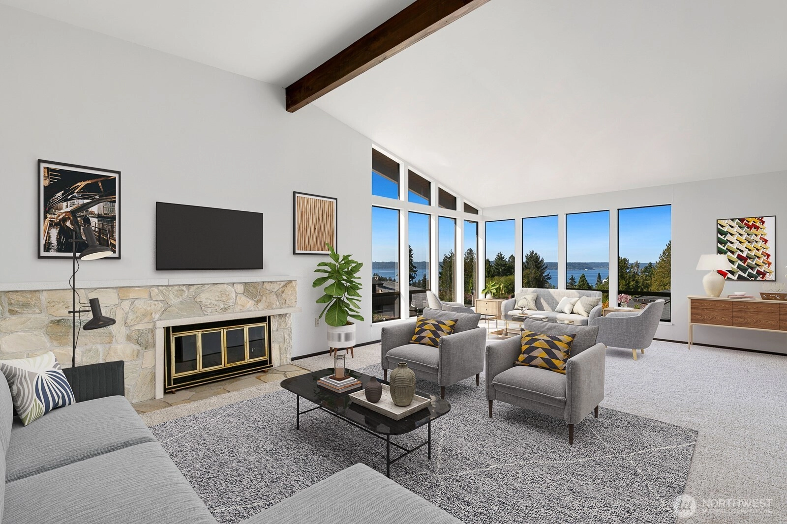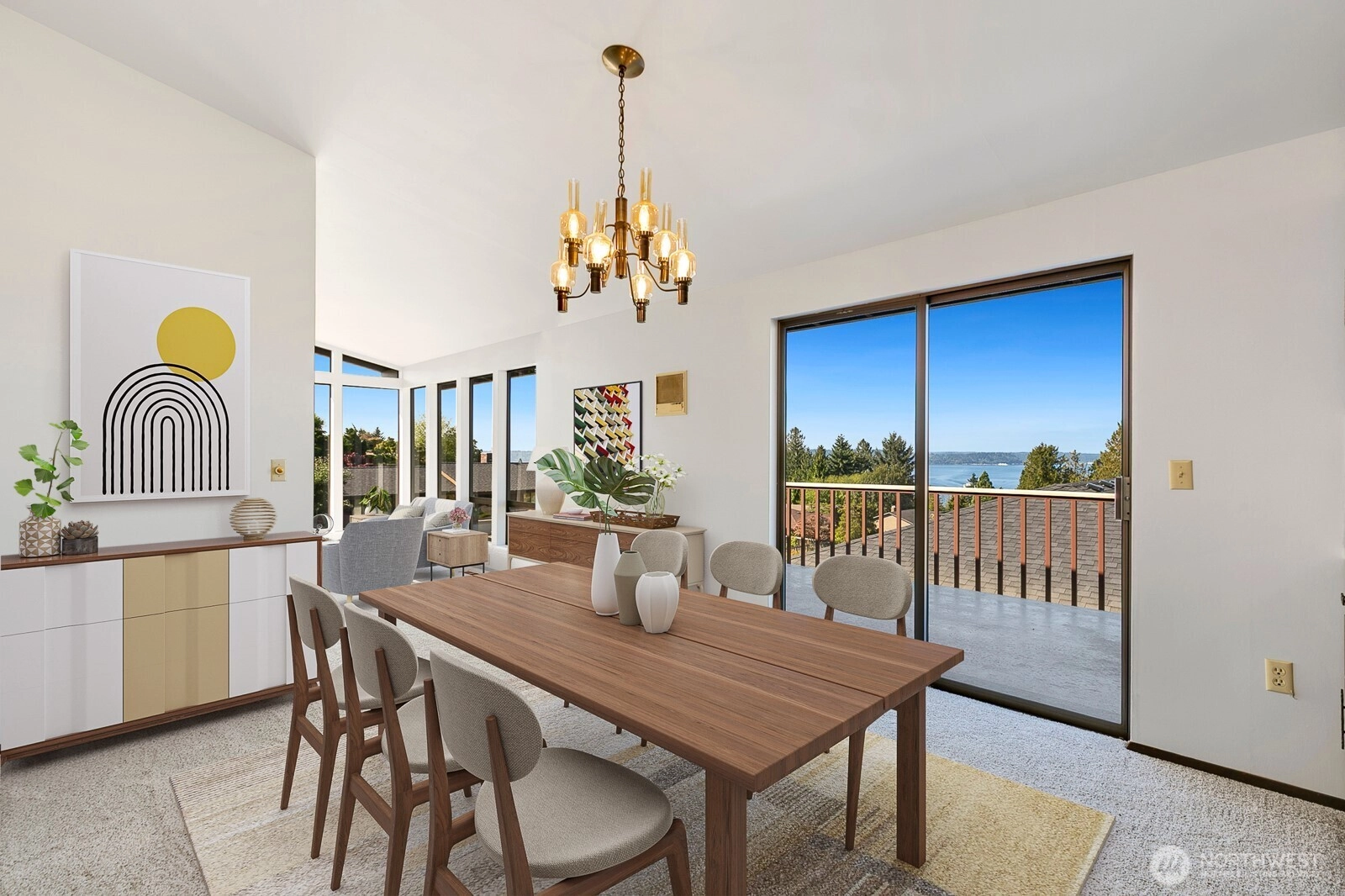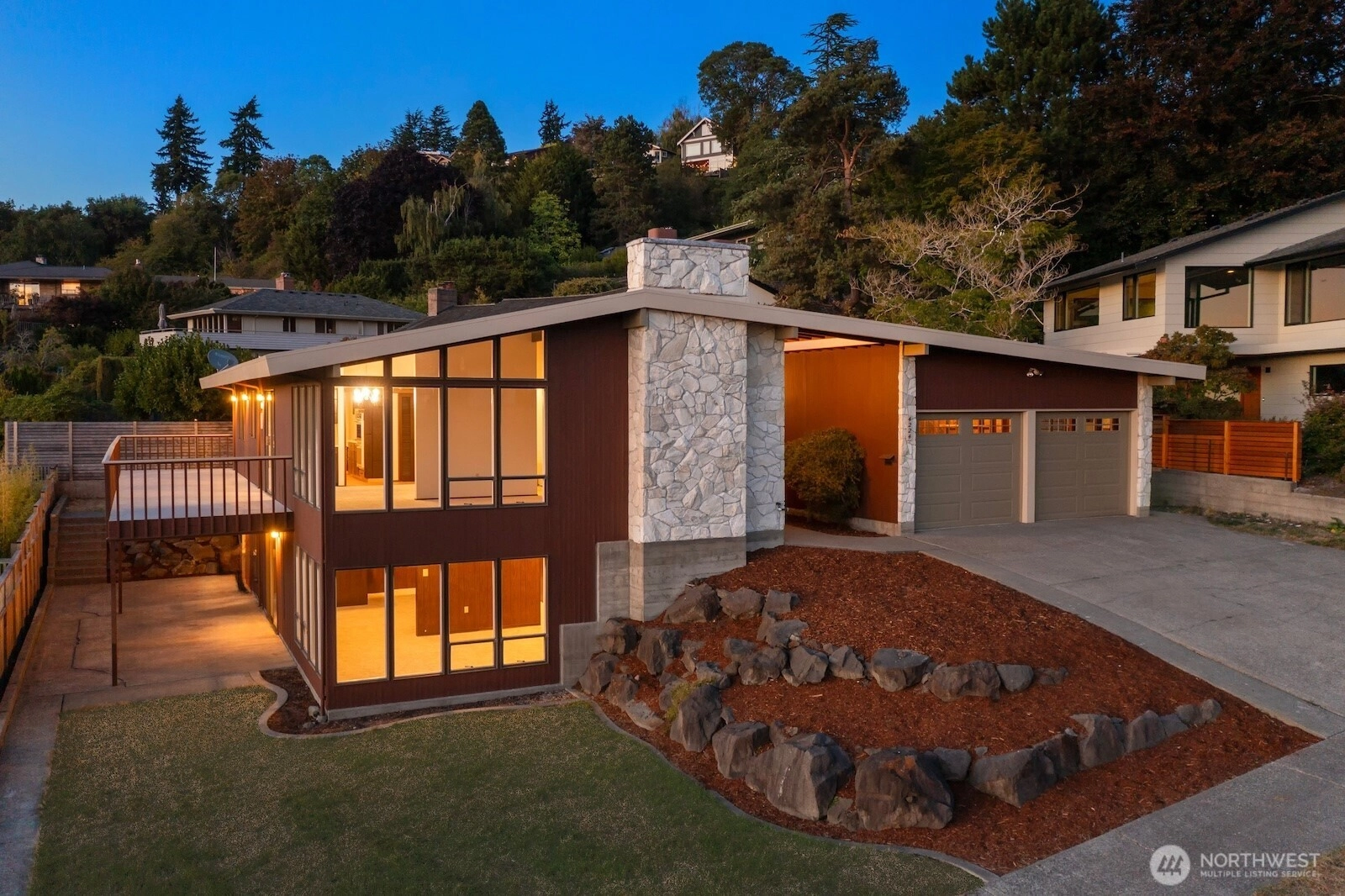 Distinctive Fauntlee Hills Mid-Century Modern with sweeping Sound & Olympic Mountain views, ferries gliding to Vashon, and NO WIRES in sight. Built in 1968 as the builder’s own home, it reflects enduring quality and design. Handpicked Montana Travertine cladding, and a breezeway with skylight & Japanese maple creates a striking welcome. Inside, vaulted ceilings, slate entry, and walls of windows frame the view, opening to a 500+ SF deck. 4BD + office, 2.5BA, including a spacious primary suite with yard access. Lower family room also enjoys the view and a classic built-in bar. Fresh paint & flooring, select new appliances. 2-car garage. Large, level backyard offers room for a pool. Near Lincoln Park, Endolyne, and all West Seattle offers!