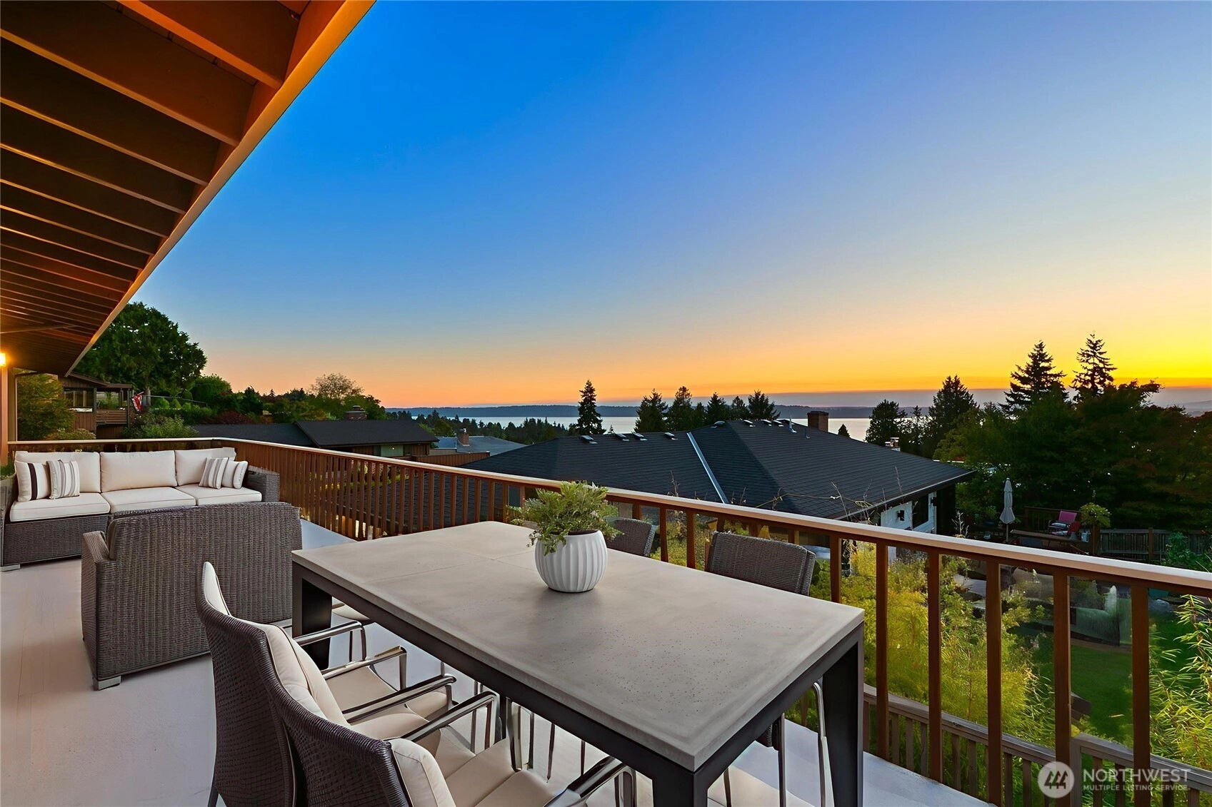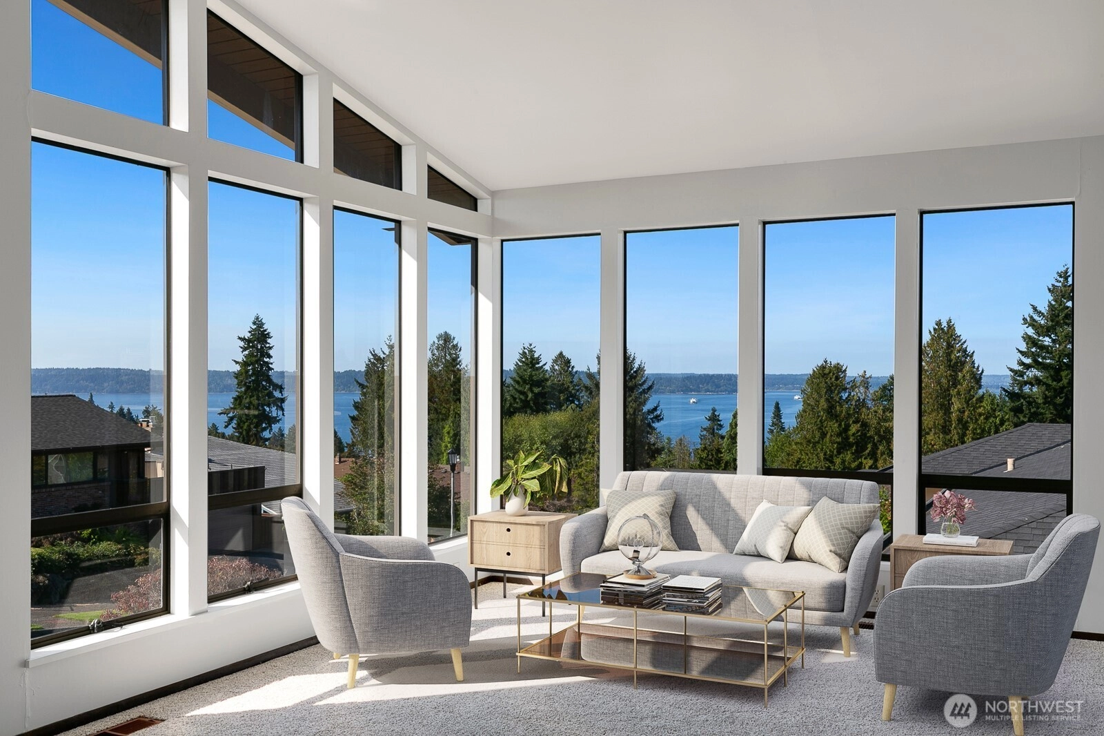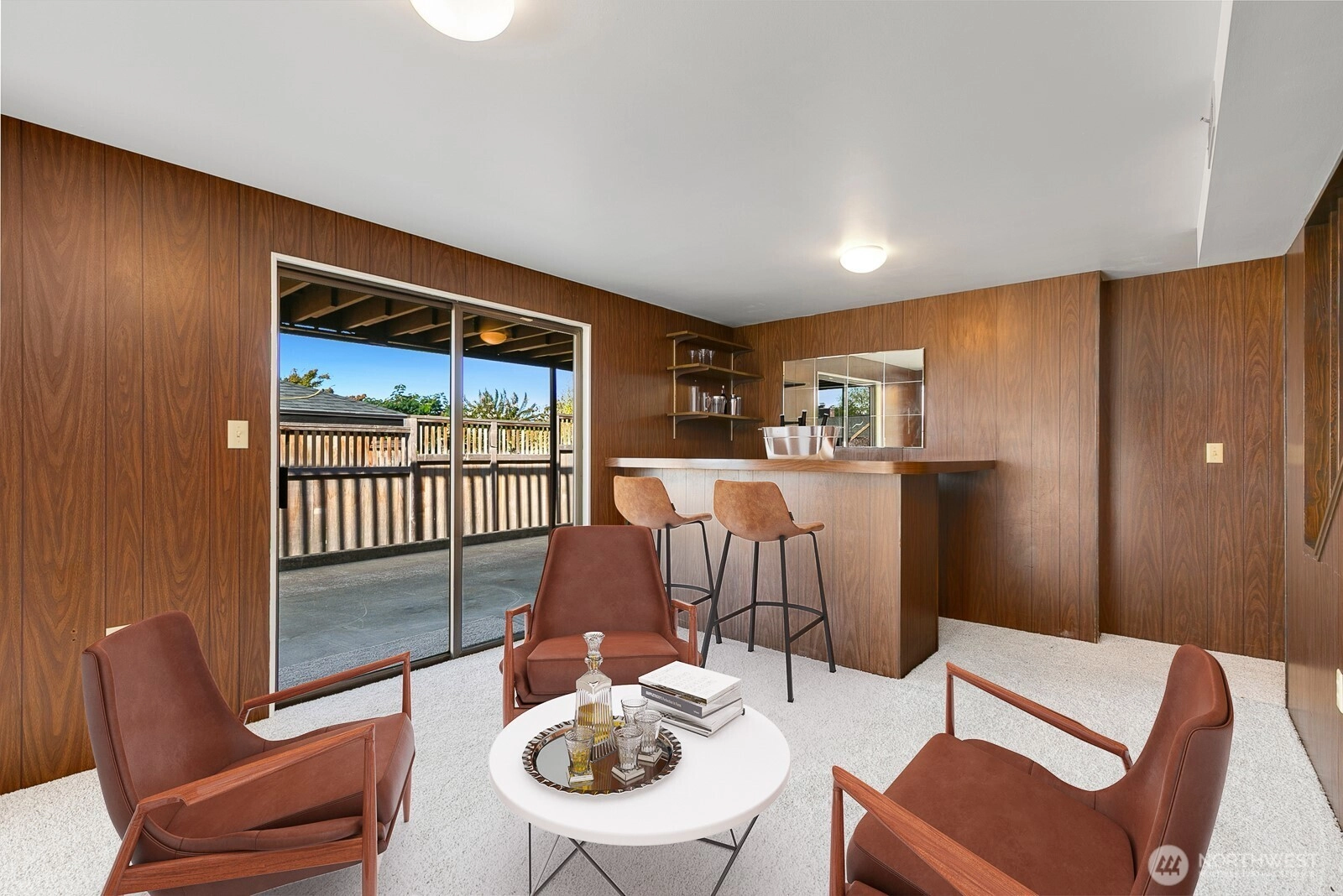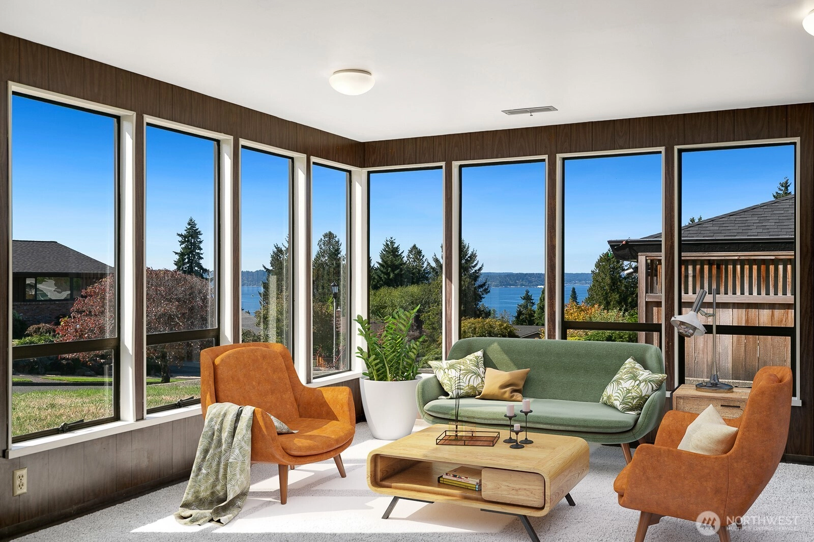 Distinctive Fauntlee Hills Mid-Century Modern with sweeping Sound & Olympic Mountain views, ferries gliding to Vashon, and NO WIRES in sight. Built in 1968 as the builder’s own home, it reflects enduring quality and design. Handpicked Montana Travertine cladding, and a breezeway with skylight & Japanese maple creates a striking welcome. Inside, vaulted ceilings, slate entry, and walls of windows frame the view, opening to a 500+ SF deck. 4BD + office, 2.5BA, including a spacious primary suite with yard access. Lower family room also enjoys the view and a classic built-in bar. Fresh paint & flooring, select new appliances. 2-car garage. Large, level backyard offers room for a pool. Near Lincoln Park, Endolyne, and all West Seattle offers!