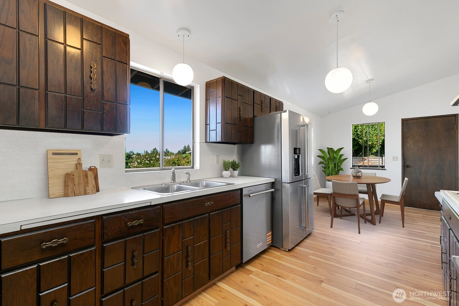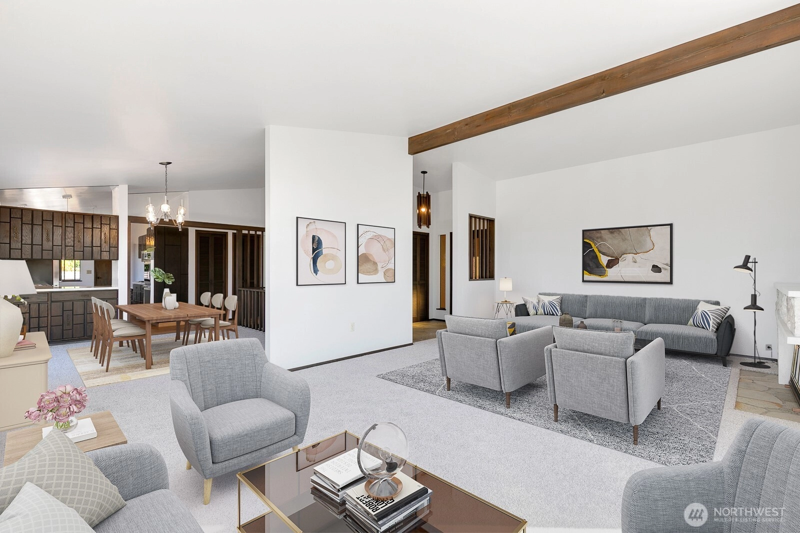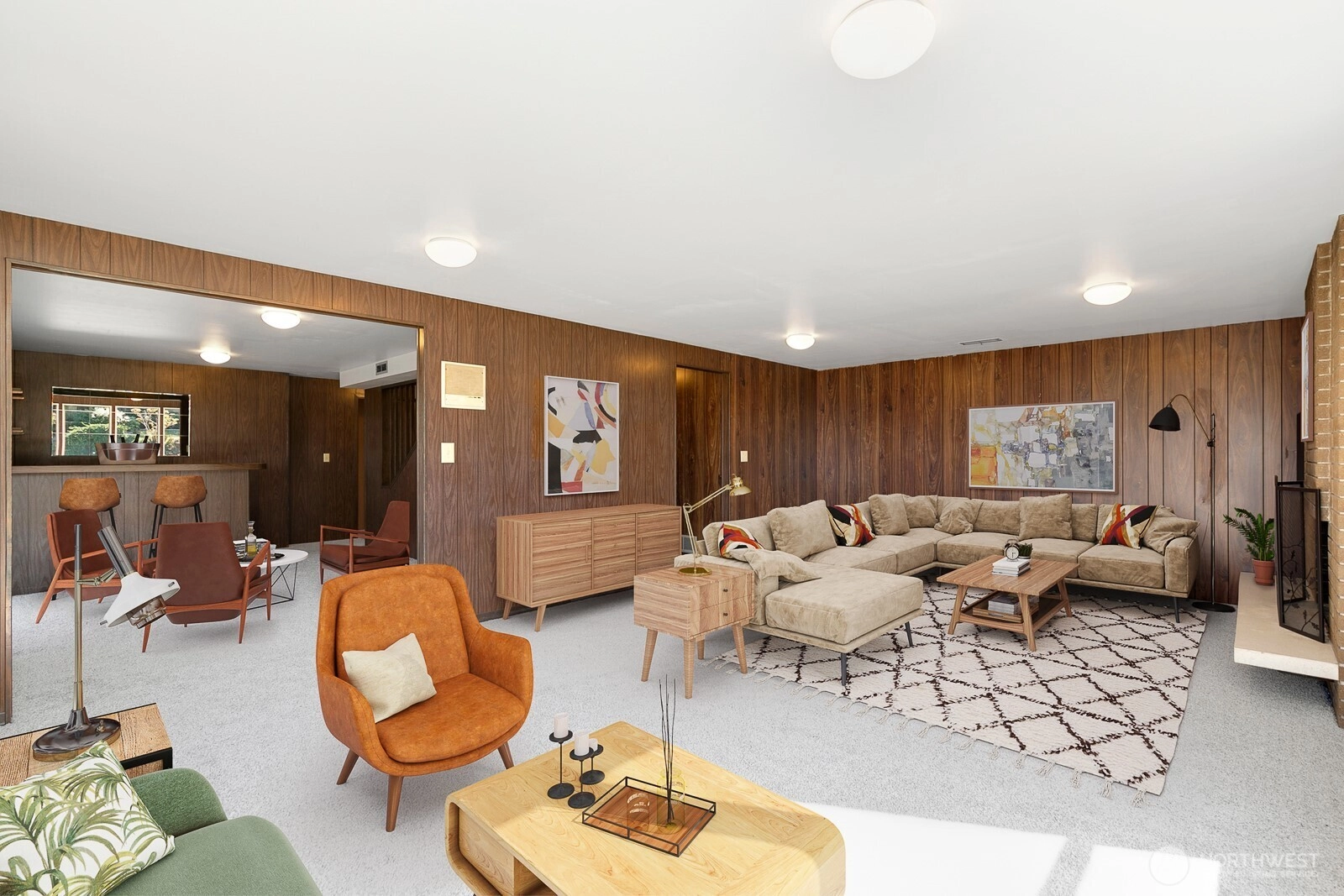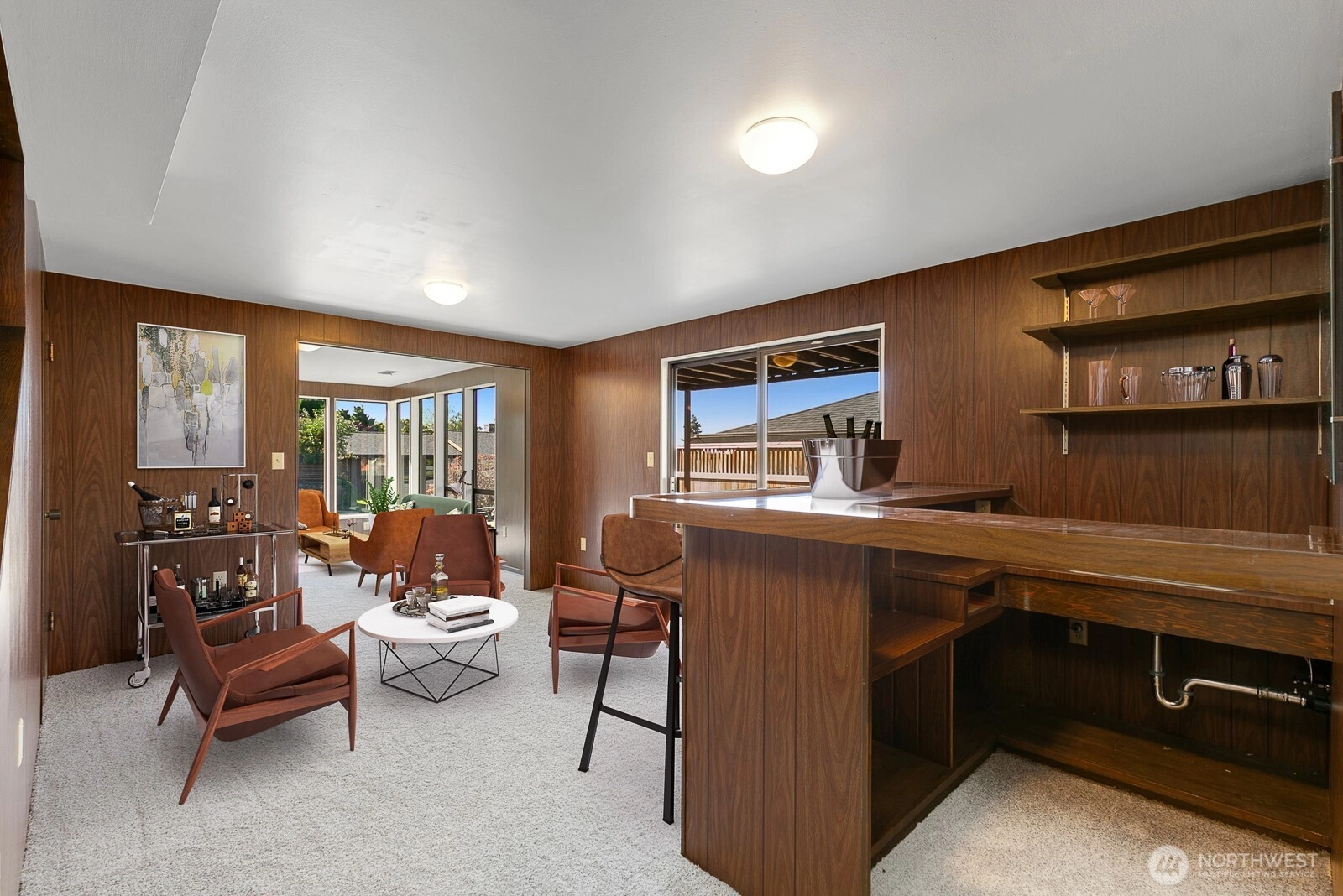 Distinctive Fauntlee Hills Mid-Century Modern with sweeping Sound & Olympic Mountain views, ferries gliding to Vashon, and NO WIRES in sight. Built in 1968 as the builder’s own home, it reflects enduring quality and design. Handpicked Montana Travertine cladding, and a breezeway with skylight & Japanese maple creates a striking welcome. Inside, vaulted ceilings, slate entry, and walls of windows frame the view, opening to a 500+ SF deck. 4BD + office, 2.5BA, including a spacious primary suite with yard access. Lower family room also enjoys the view and a classic built-in bar. Fresh paint & flooring, select new appliances. 2-car garage. Large, level backyard offers room for a pool. Near Lincoln Park, Endolyne, and all West Seattle offers!