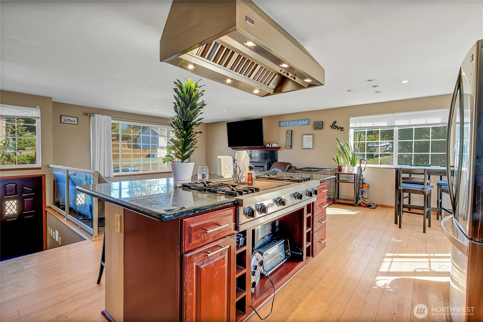 Welcome to this wonderful three bedroom home with so much to offer! Bamboo flooring, granite counter-tops, cherry cabinets, Viking cook-top with custom hood, double oven, warming drawer below double oven and more. All appliances are stainless steel and stay including the washer and dryer. Plenty of space to entertain! Spacious bedrooms, large bonus room with propane fireplace and a projector screen. So much possibilities! Love the outdoors? Love to garden? Then check out the large backyard. Come take a look and make this home your own!