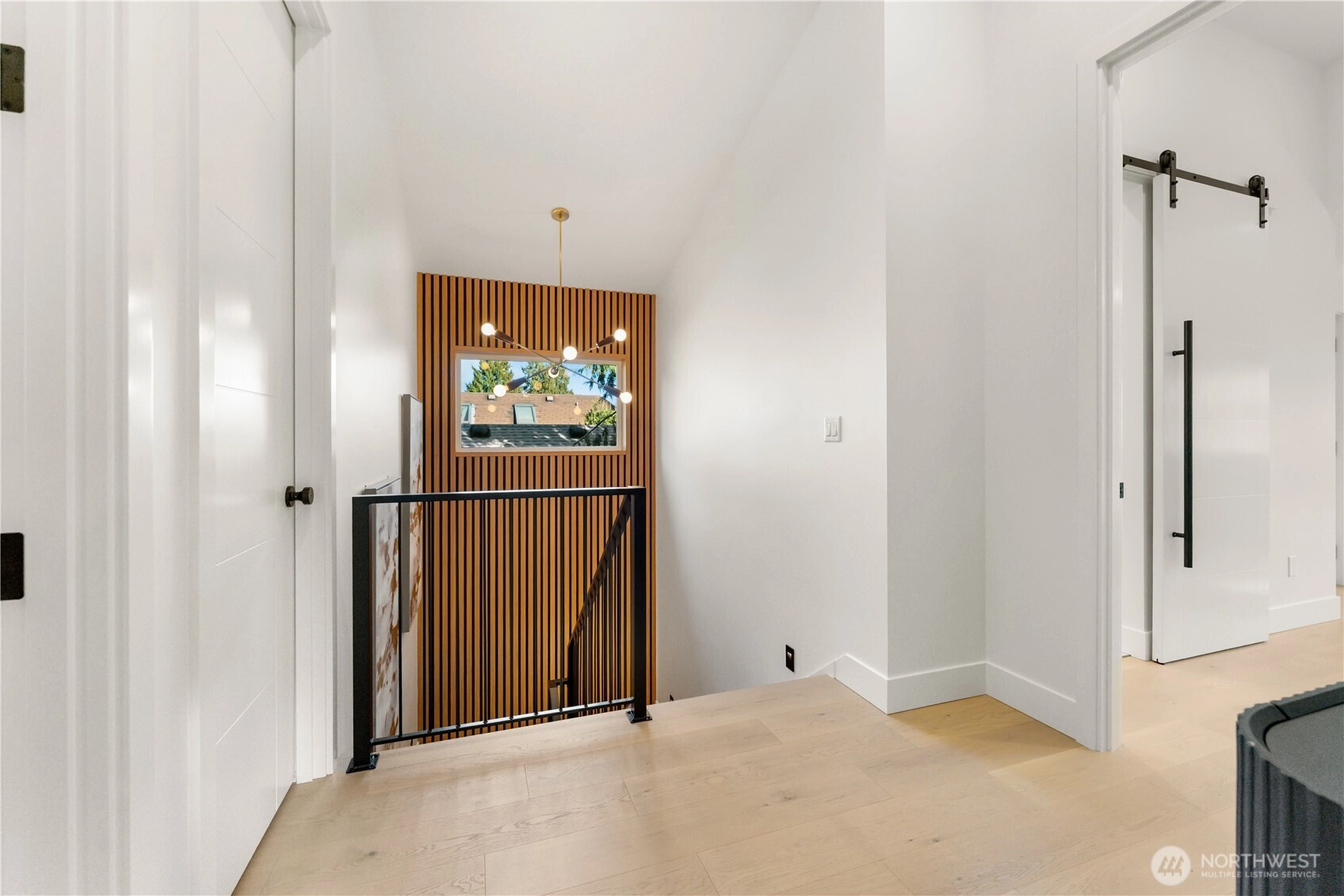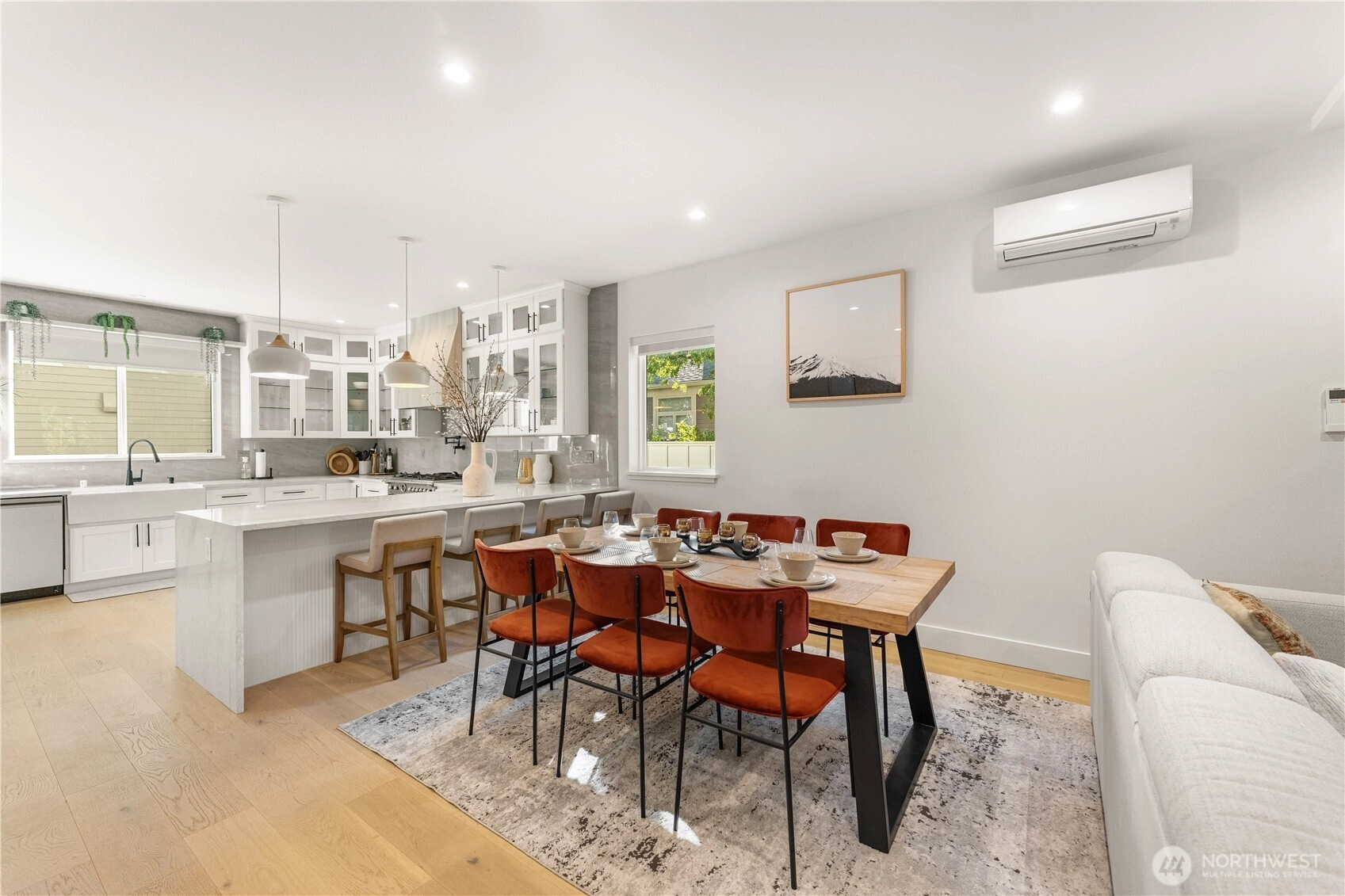 Better than new construction on a peaceful Phinney Ridge street. Owner/builder meticulously rebuilt this house in 2023 as his own house. High end thoughtful touches throughout: high ceilings on main and upper floors (most bedroom doors are 8'), gorgeous engineered hardwoods on both levels, even the stairs. Stunning great room features living rm with gas fireplace, large dining area, & total chef's kitchen with quartz counters, Bertazzoni 6 burner stove/oven, pot-filler, walk-in pantry, etc. 4th BR/office on main floor. Upper floor has 3 beds, 2 full baths, including an incredible primary suite with its own covered deck. The 2 other bedrooms share a covered balcony. Efficient mini-splits for heating & cooling. Driveway parking off alley.