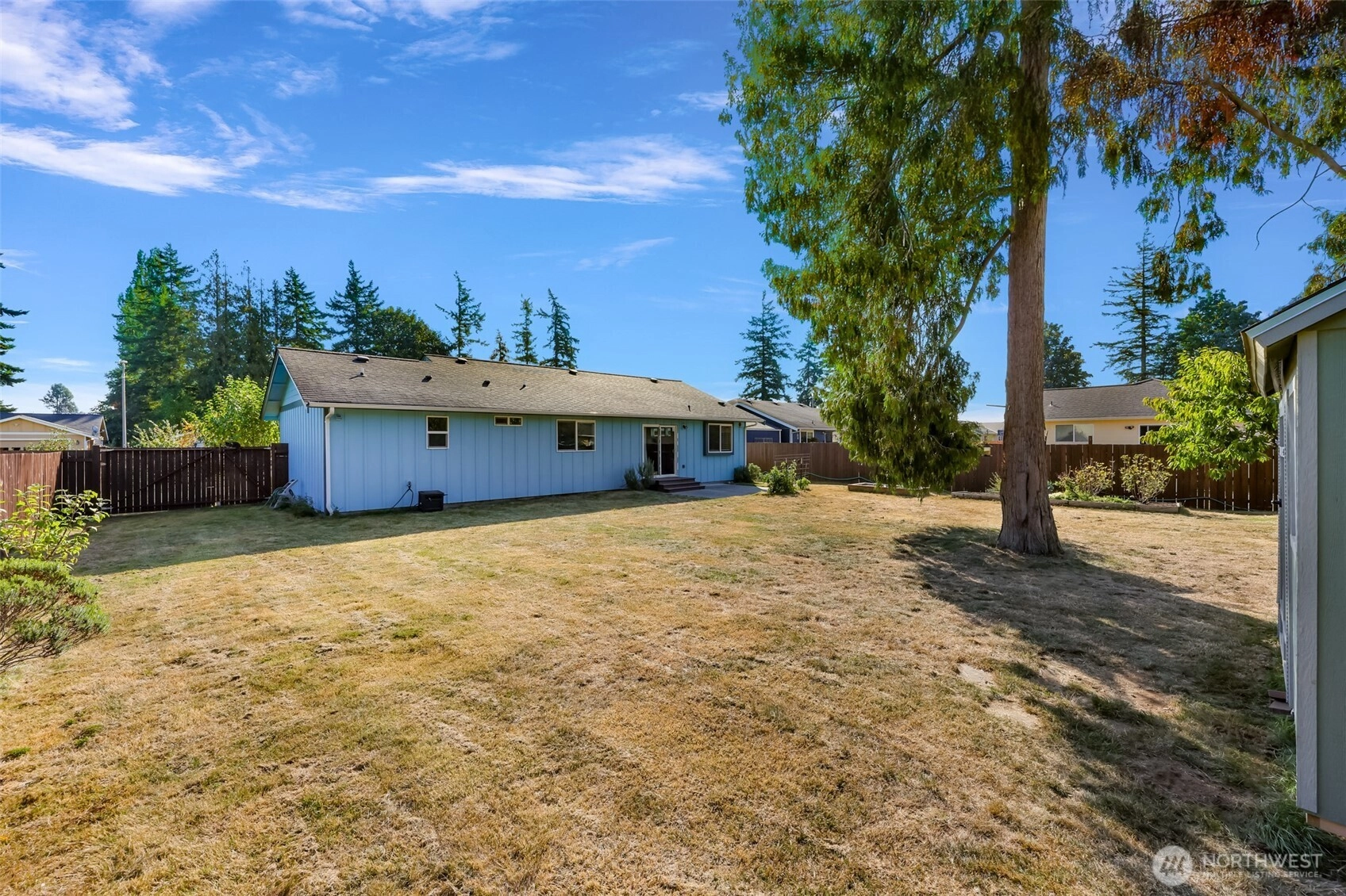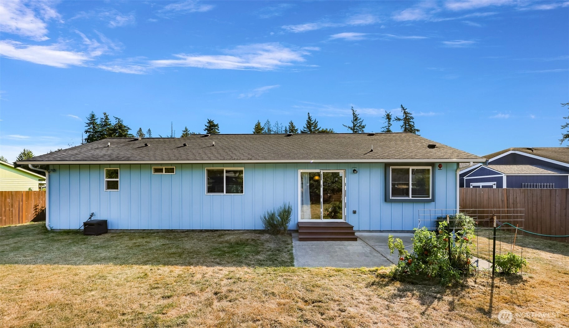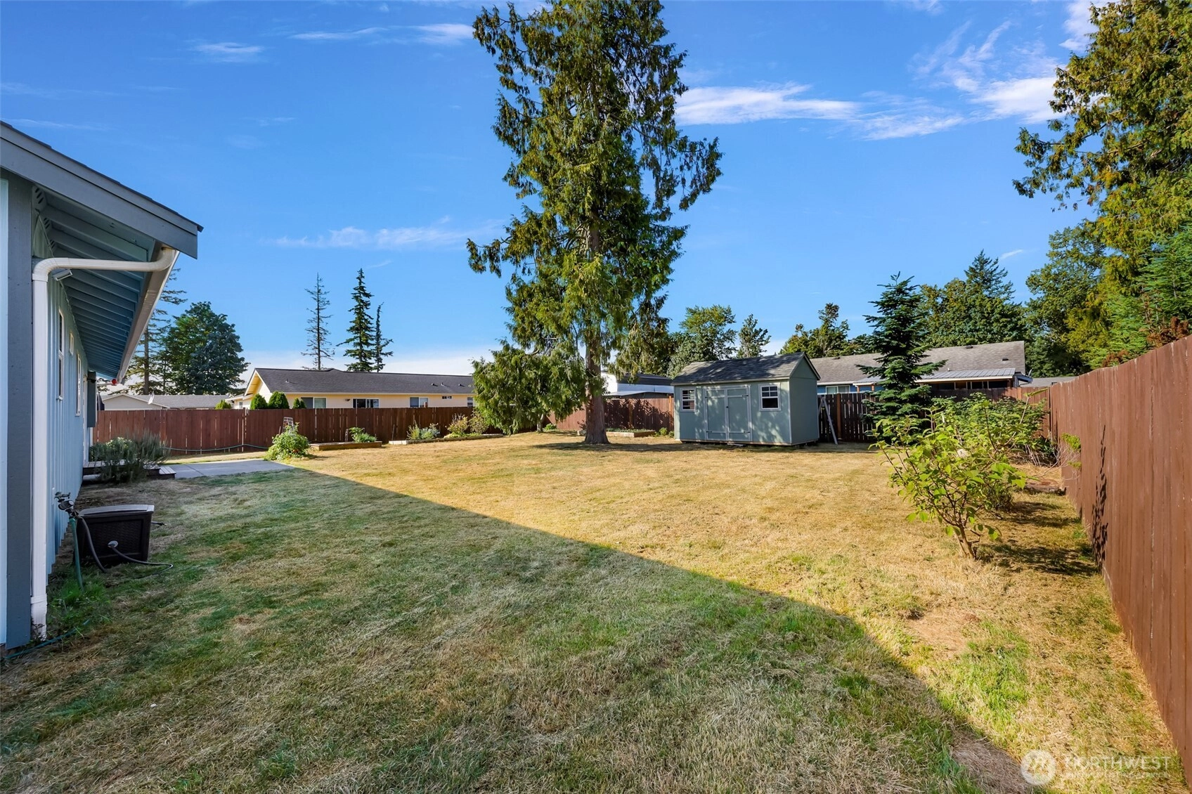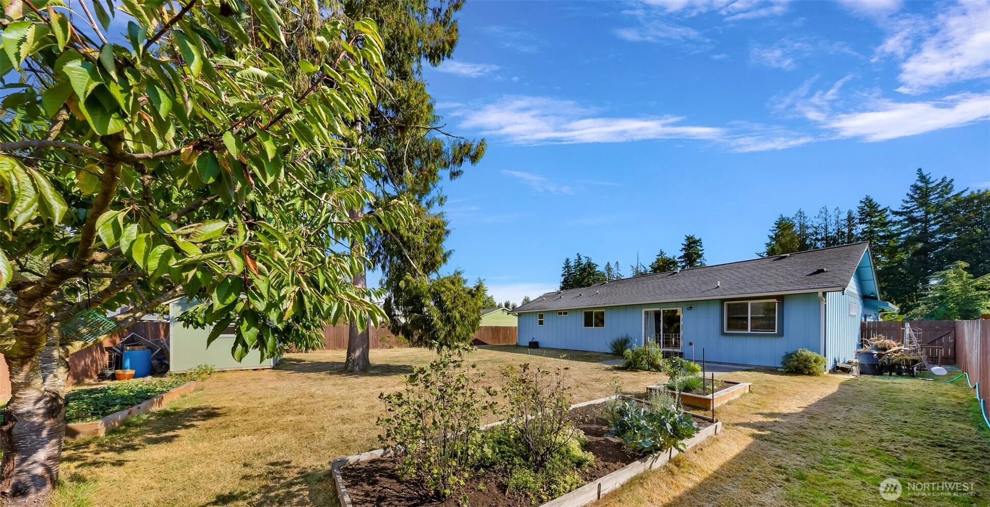 Beautifully maintained 3-bedroom, 2-bath home on a large lot in Ferndale. The open floorplan creates a bright and welcoming flow between living, dining, and kitchen areas—perfect for gatherings or everyday living. The primary suite offers a private bath, while two additional bedrooms provide flexibility for guests, office, or hobbies. Large windows bring in natural light, highlighting the pride of ownership throughout. Outside, enjoy a spacious fully fenced backyard with room to play, entertain, and garden. A dedicated garden area is ready for planting, and the large storage building adds excellent space for tools, projects, or hobbies. Conveniently located near town and amenities, this move-in ready home offers comfort, usability, and life
