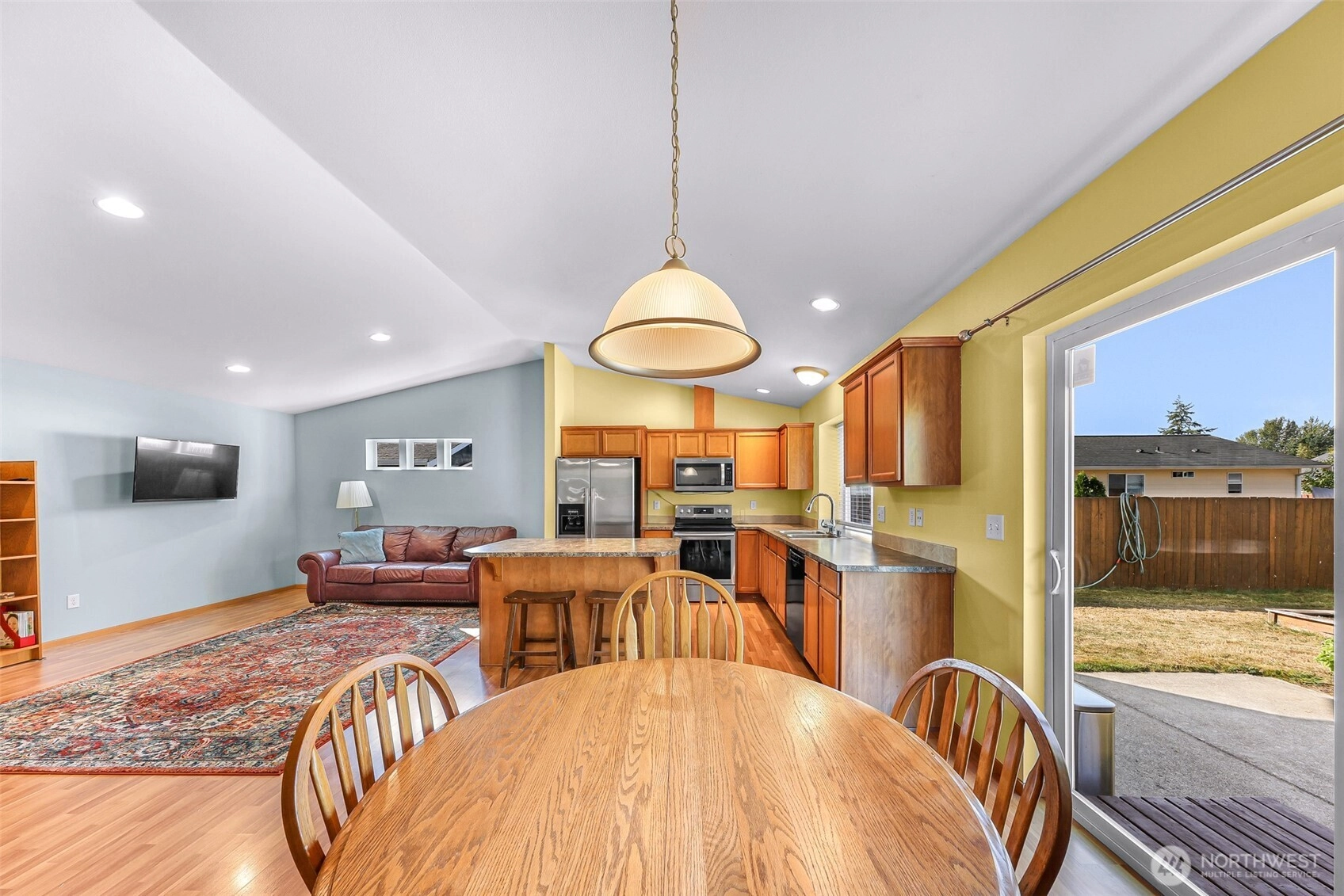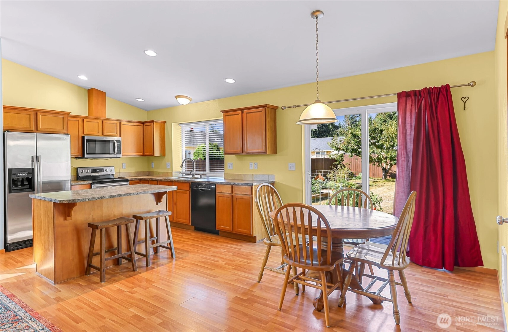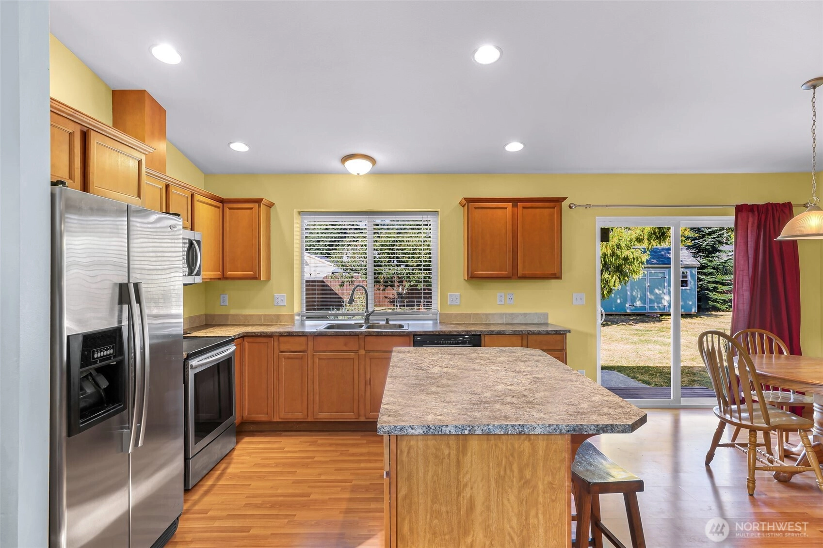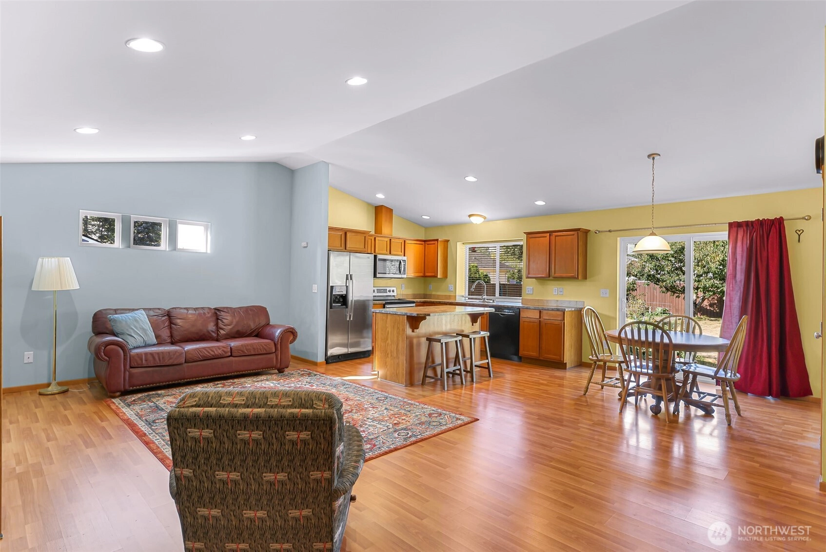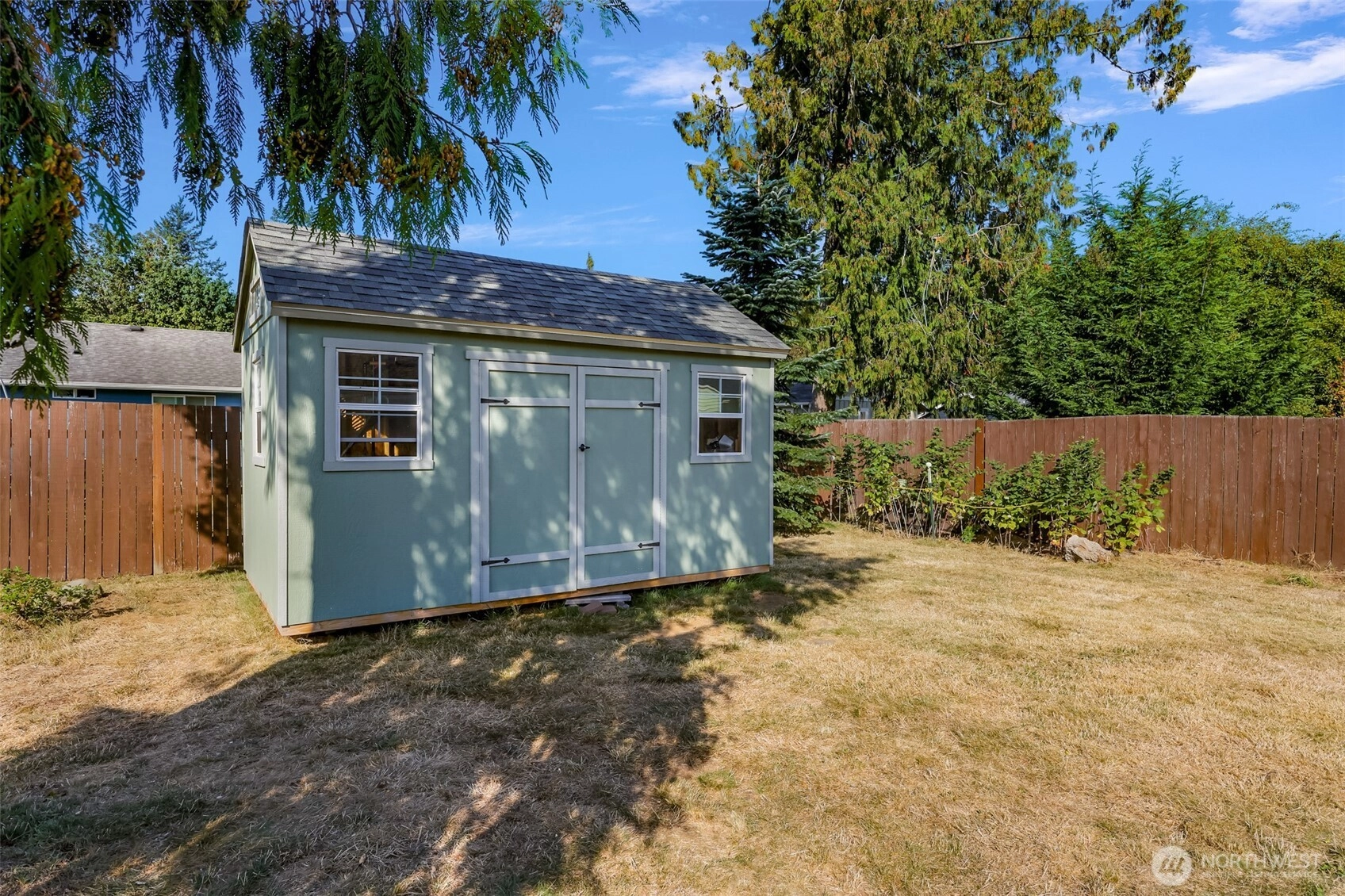 Beautifully maintained 3-bedroom, 2-bath home on a large lot in Ferndale. The open floorplan creates a bright and welcoming flow between living, dining, and kitchen areas—perfect for gatherings or everyday living. The primary suite offers a private bath, while two additional bedrooms provide flexibility for guests, office, or hobbies. Large windows bring in natural light, highlighting the pride of ownership throughout. Outside, enjoy a spacious fully fenced backyard with room to play, entertain, and garden. A dedicated garden area is ready for planting, and the large storage building adds excellent space for tools, projects, or hobbies. Conveniently located near town and amenities, this move-in ready home offers comfort, usability, and life