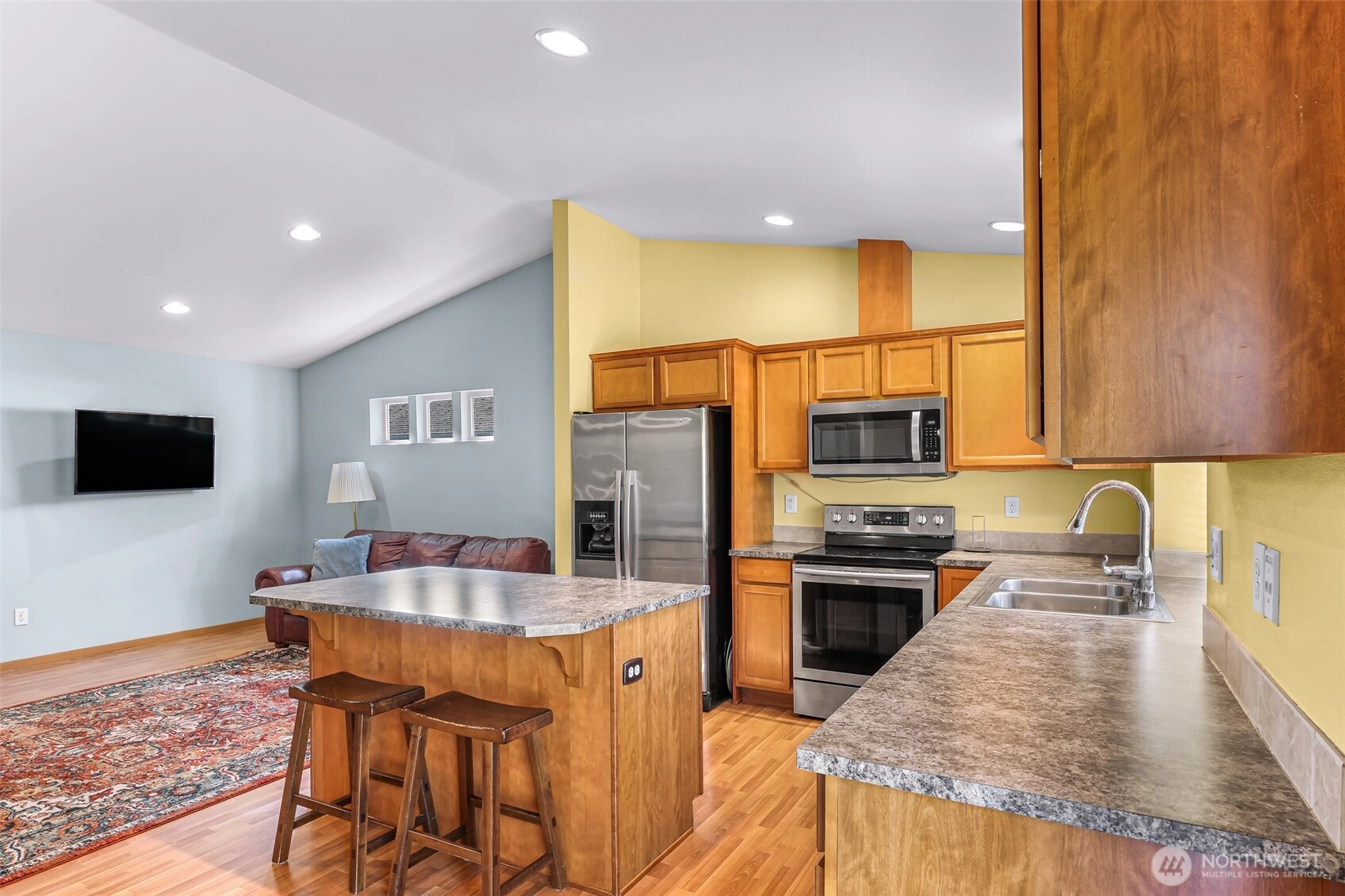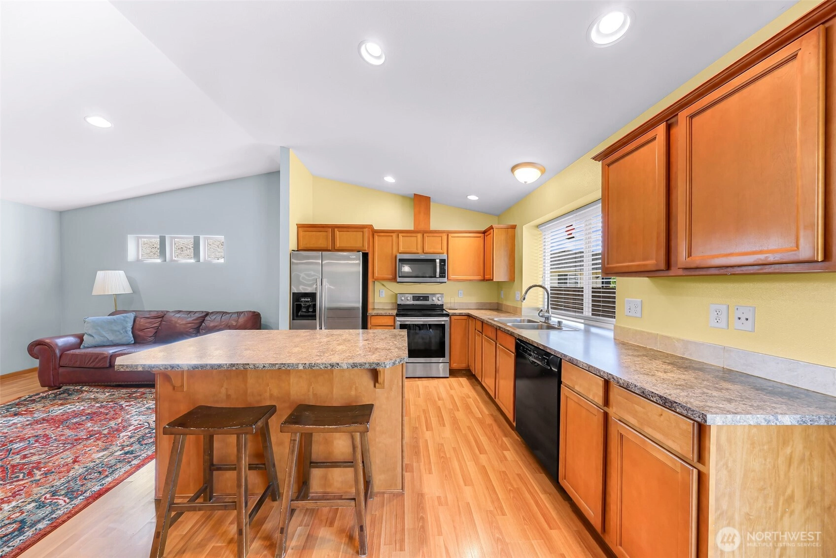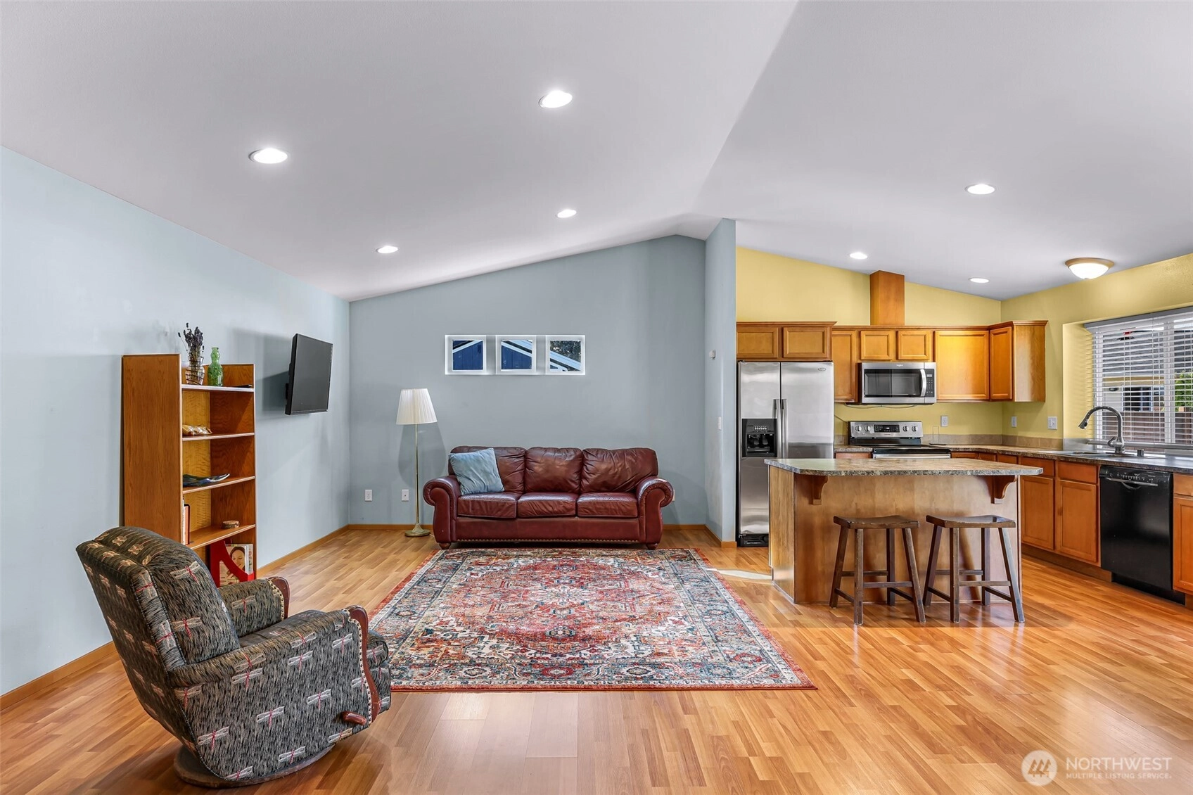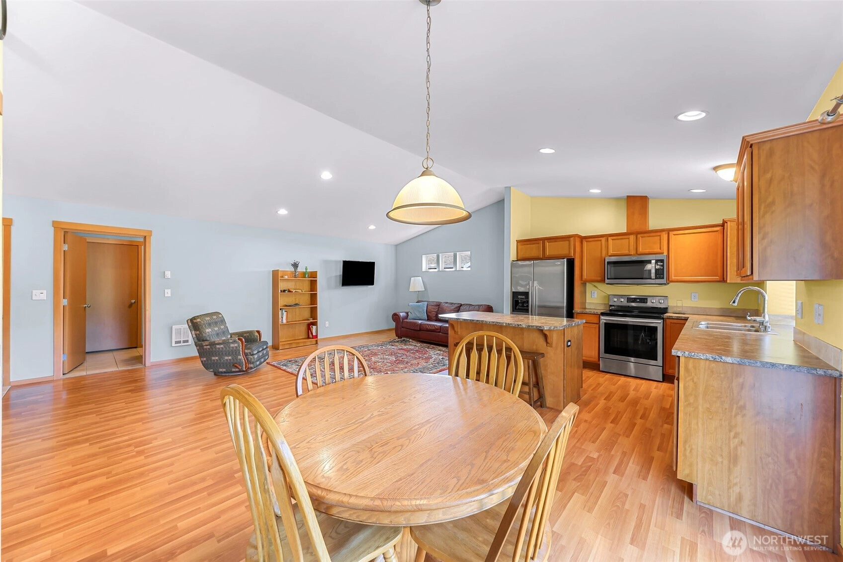 Beautifully maintained 3-bedroom, 2-bath home on a large lot in Ferndale. The open floorplan creates a bright and welcoming flow between living, dining, and kitchen areas—perfect for gatherings or everyday living. The primary suite offers a private bath, while two additional bedrooms provide flexibility for guests, office, or hobbies. Large windows bring in natural light, highlighting the pride of ownership throughout. Outside, enjoy a spacious fully fenced backyard with room to play, entertain, and garden. A dedicated garden area is ready for planting, and the large storage building adds excellent space for tools, projects, or hobbies. Conveniently located near town and amenities, this move-in ready home offers comfort, usability, and life