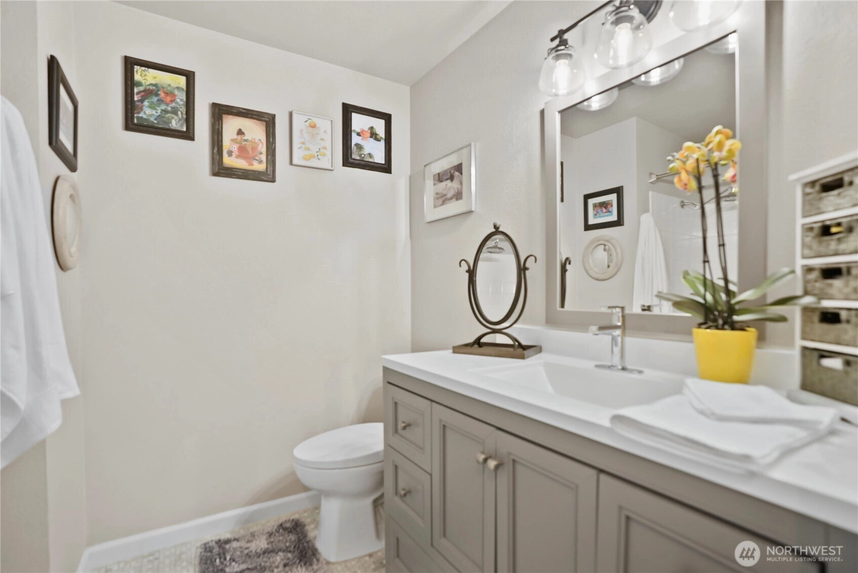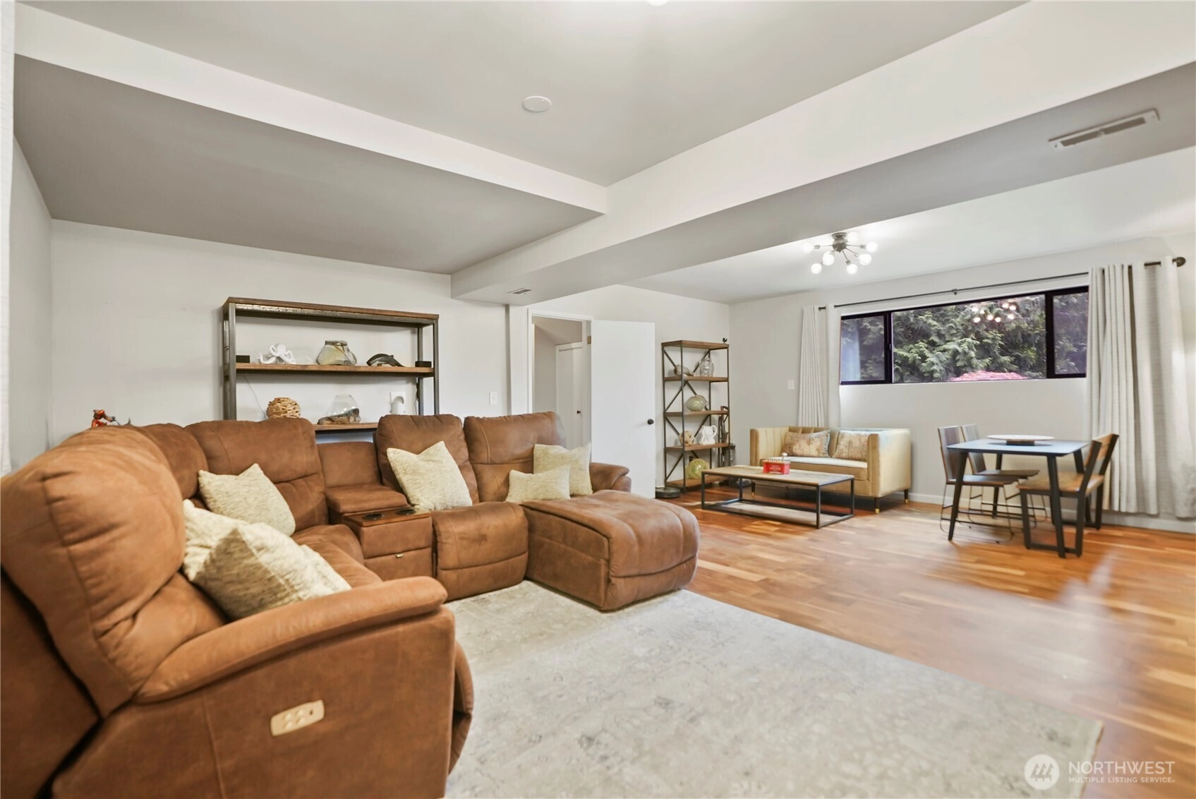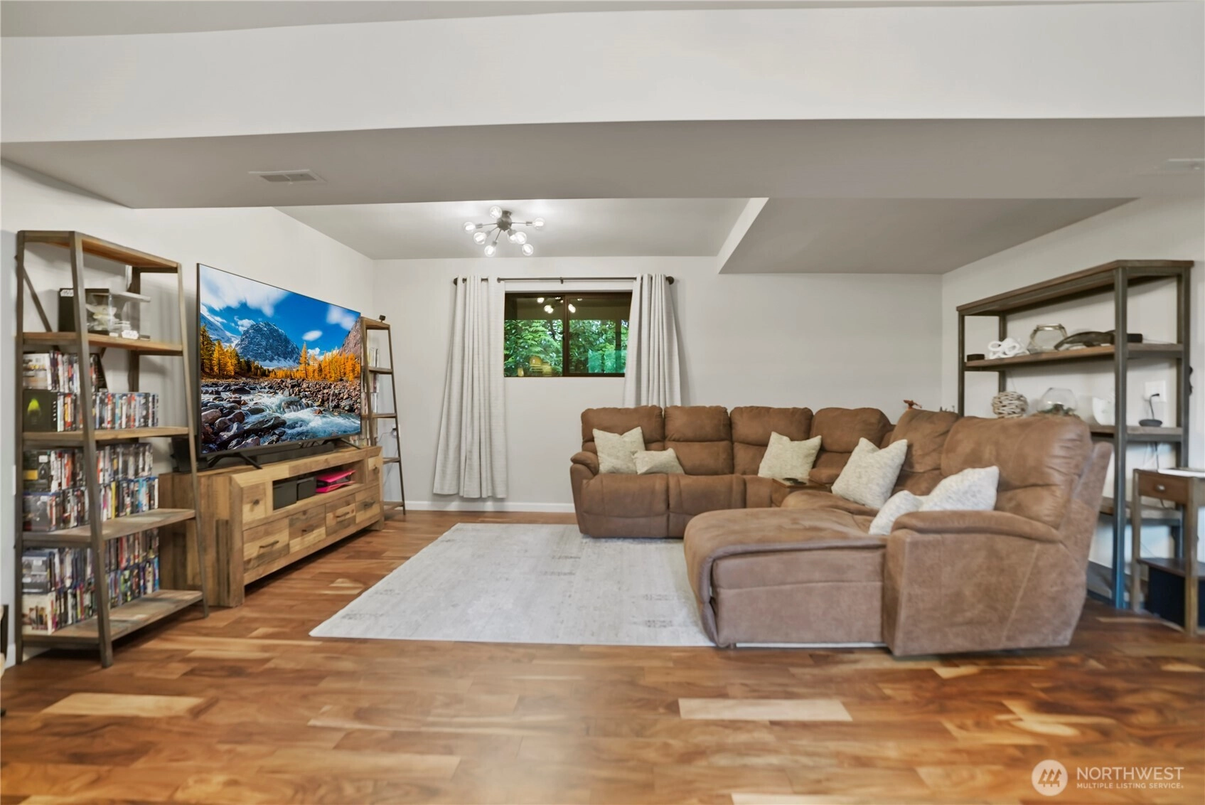 PRICE ADJUSTMENT! Enjoy stunning Puget Sound and Olympic Mountain views from this well-maintained home in sought-after Norma Beach! Lives larger than expected on a generous lot ideal for gardening, play, or relaxing outdoors. Updates include rich acacia hardwoods, stainless appliances, and fresh interior/exterior paint. The main level opens to a spacious TREX deck for entertaining or quiet evenings. Downstairs: large bonus room w/fireplace + flexible 4th bedroom or craft space. Primary suite with private ¾ bath. Double garage, extra parking, and pre-inspection for peace of mind—space, style, and views all in one!
