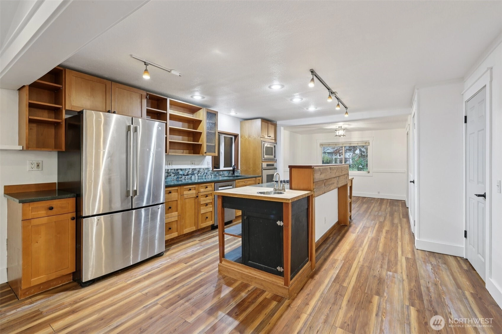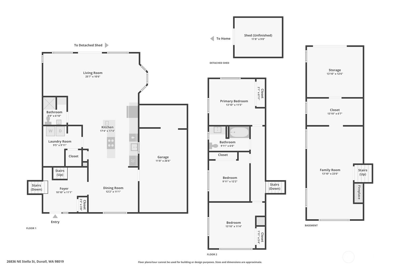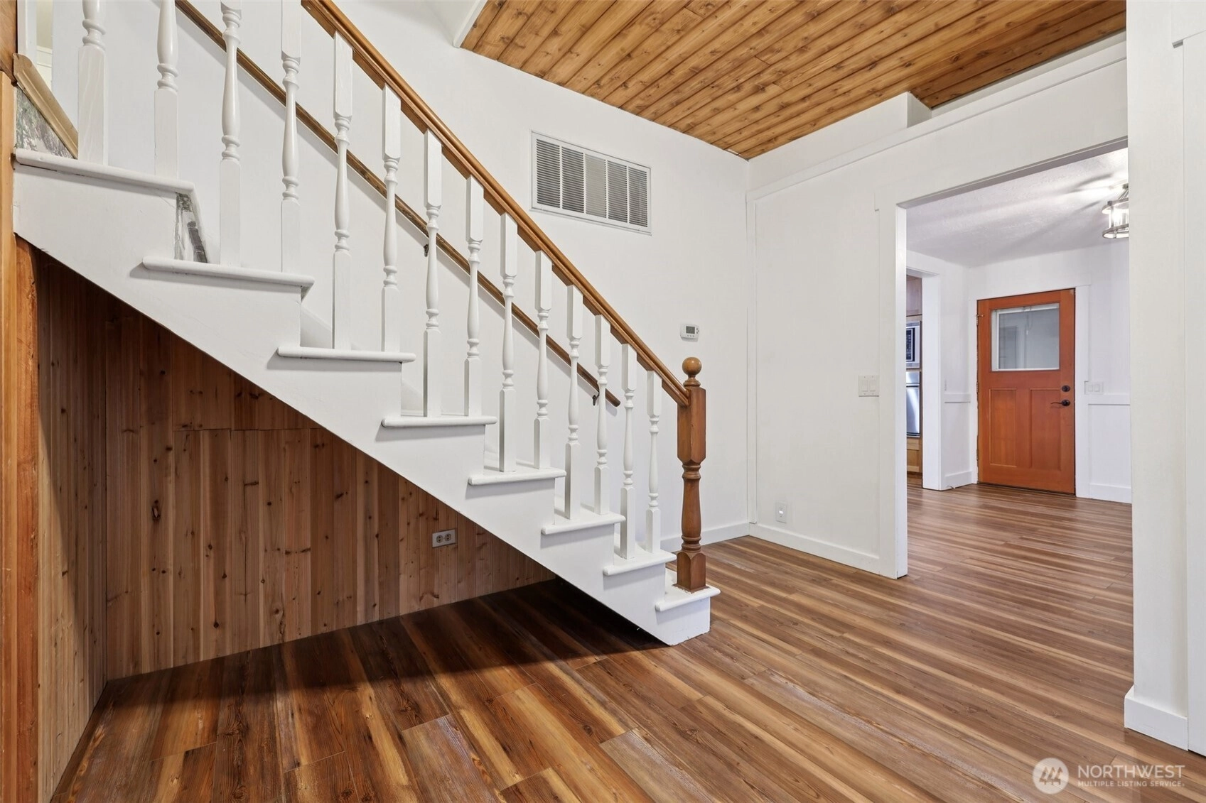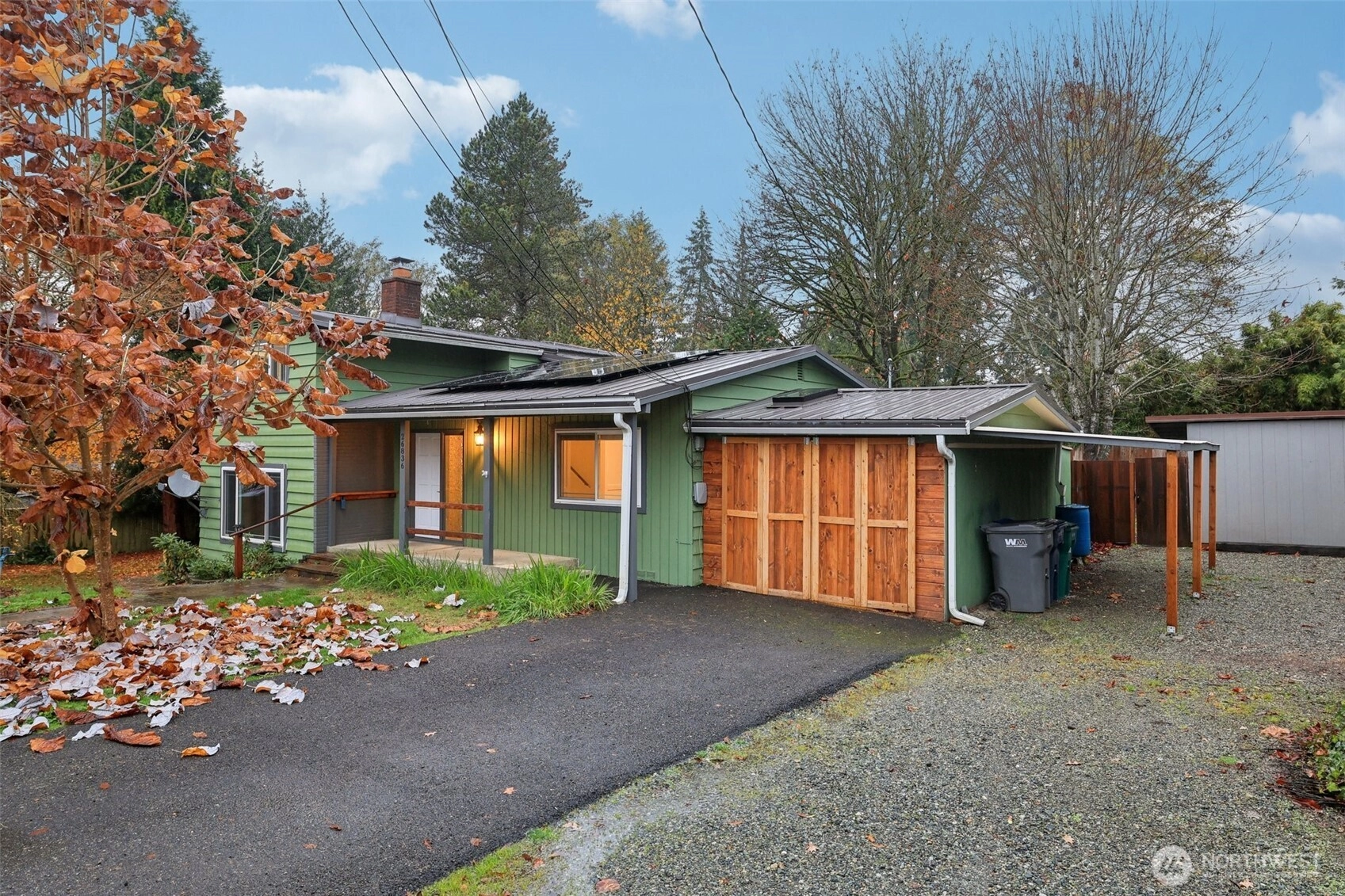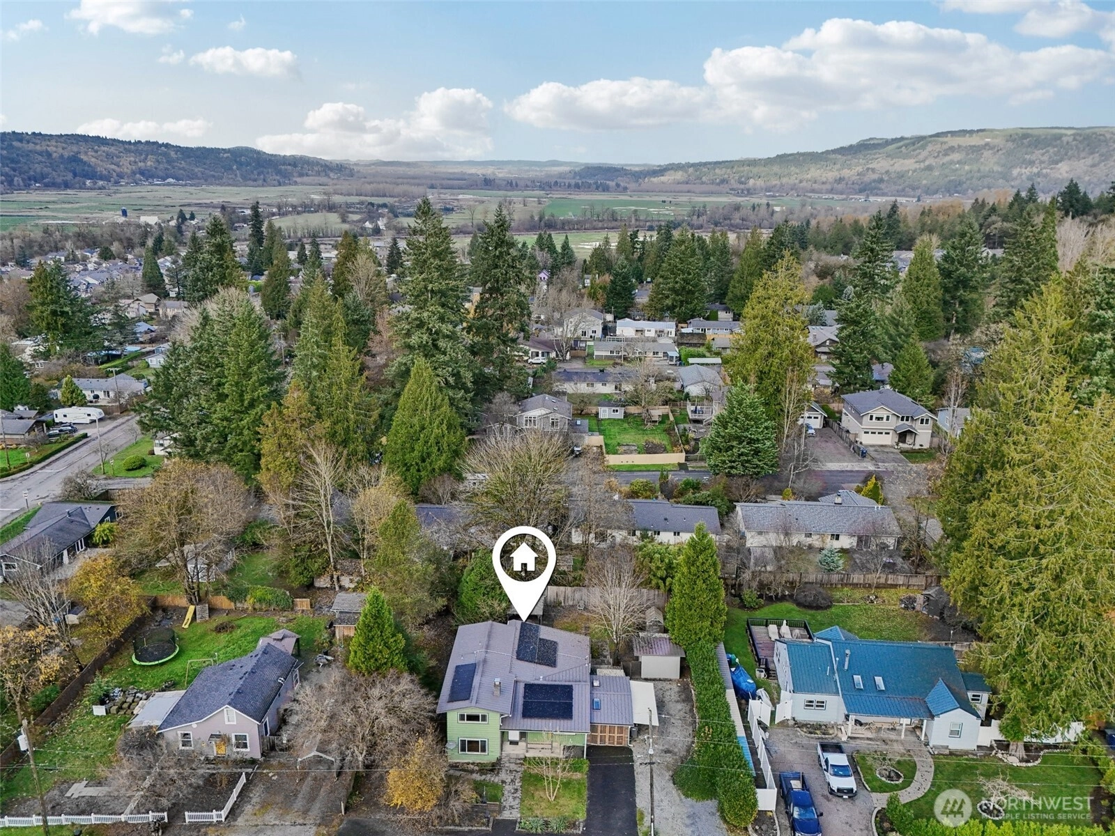 Amazing Investment Opportunity just a short walk to Historic Downtown Duvall and the local grade school, on a quiet, dead-end street at the top of the hill, next to the Lake Rasmussen Park. Private fenced backyard, garden space, large deck, gazebo, raised garden beds, lots of parking and storage. 2 bathrooms tastefully updated, with a gourmet kitchen and gas fireplace stove in the family room. Primary bedroom on the main with fireplace, opportunity to convert back storage into a primary bedroom spa/ bathrooms and add 196 sq ft! 3 bedrooms upstairs with 1 full bath. Newer metal roof, AC mini splits, furnace and a 2022 $43k Solar Panel System! A perfect mix of classic charm and modern living in a highly sought-after location! Priced to sell!