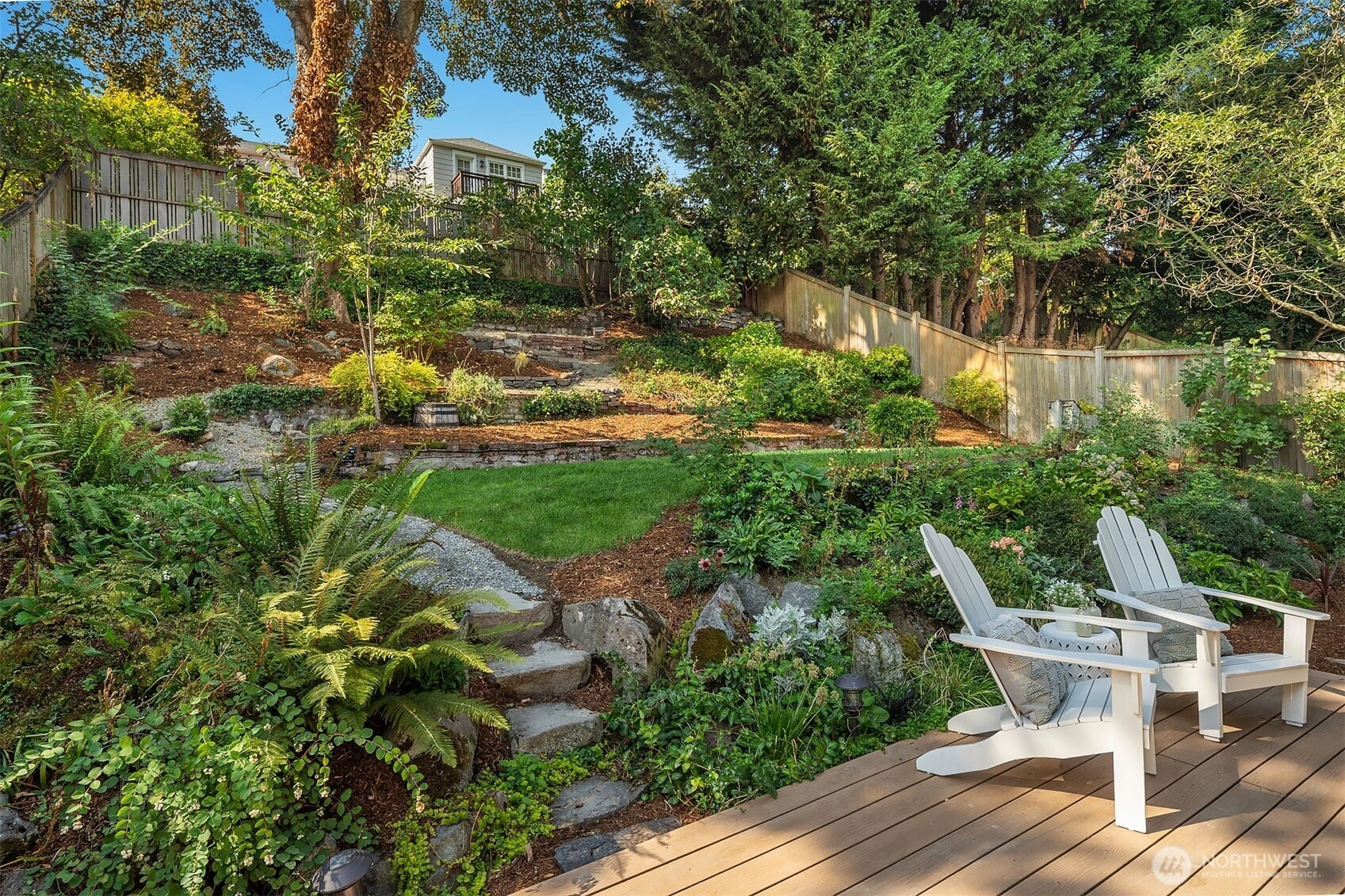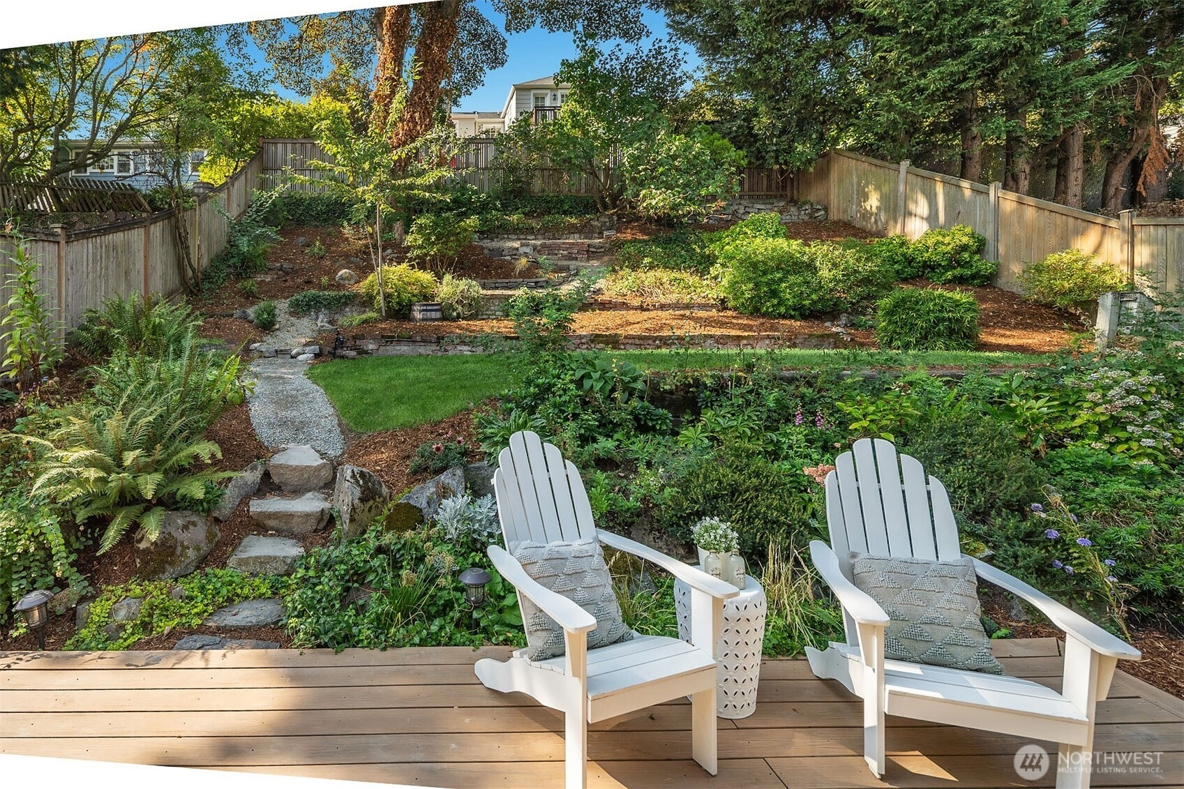 Perched above the street in highly sought-after Ravenna, this bright 4-bed, 2.5-bath home welcomes you with an open layout and seamless indoor/outdoor flow. Bi-fold doors lead to a spacious deck & backyard, ideal for entertaining or relaxing. Two generous bedrooms on the main level including a primary suite with attached 3/4 bath, two additional beds upstairs + flex space for guests, work or play. The remodeled kitchen, dining and living areas connect beautifully, while the lower level features a large rec room, 3rd bathroom, laundry, plenty of storage and garage access. Just blocks from Third Place Books, light rail, parks and top-rated schools. This home blends comfort, convenience and charm in one of Seattle’s most beloved neighborhoods.