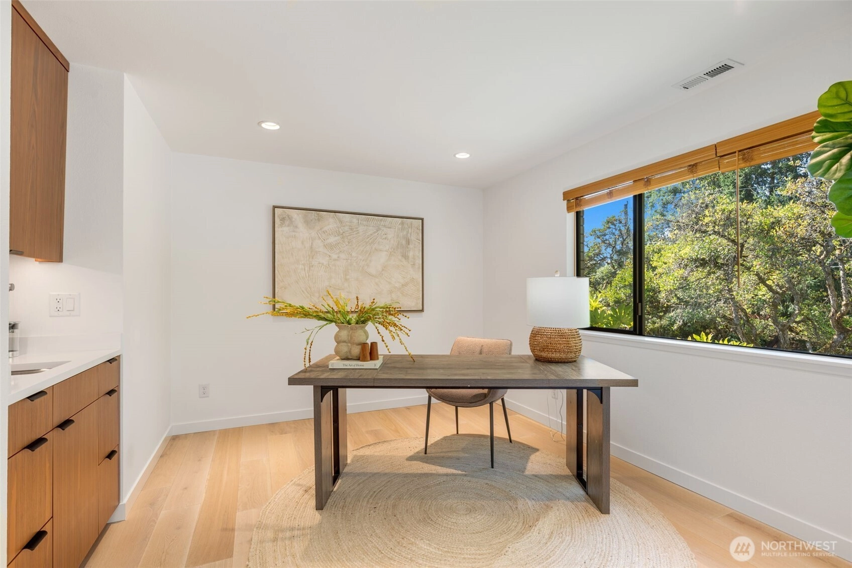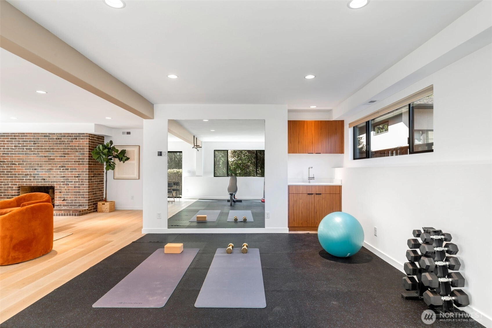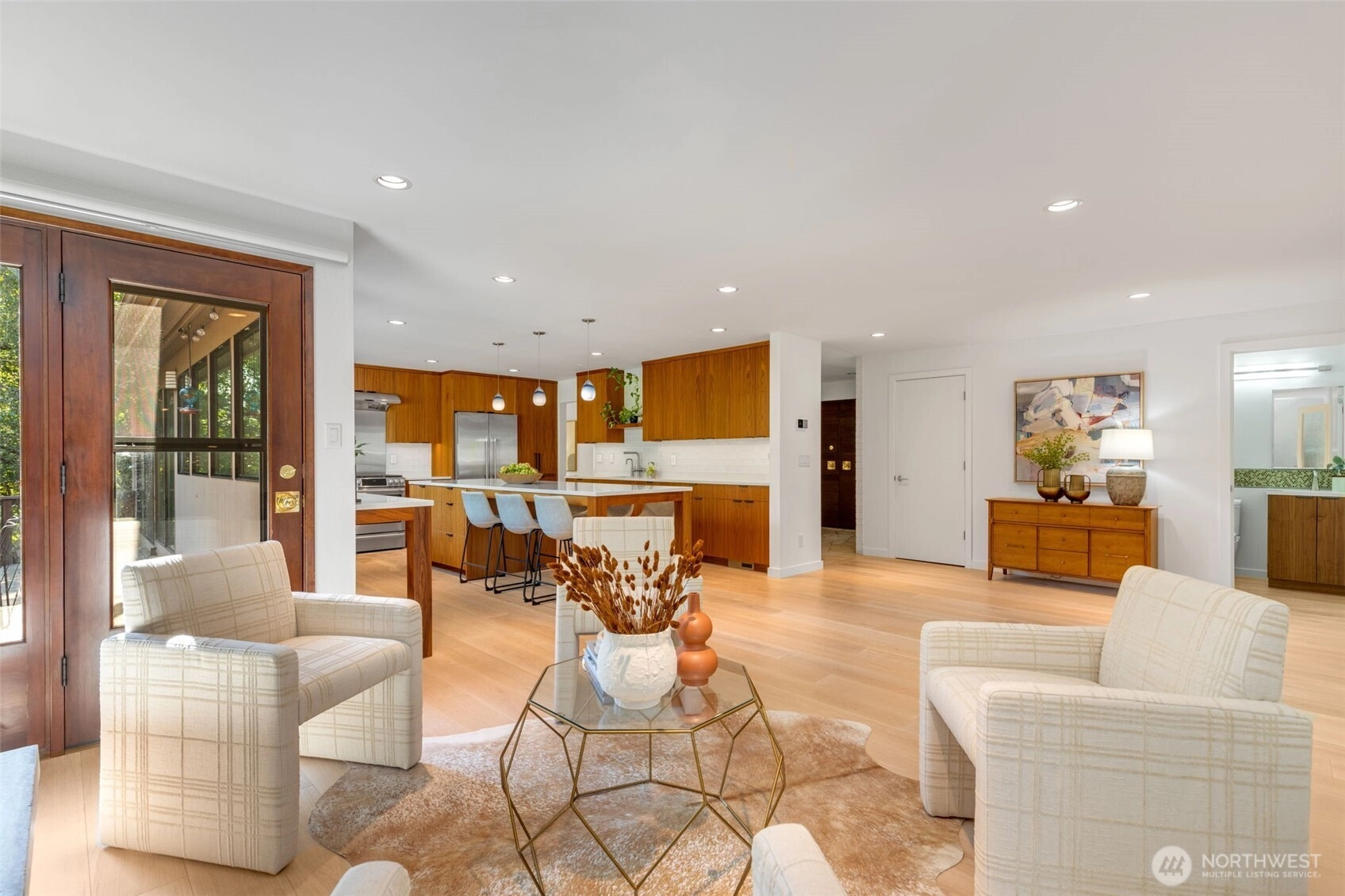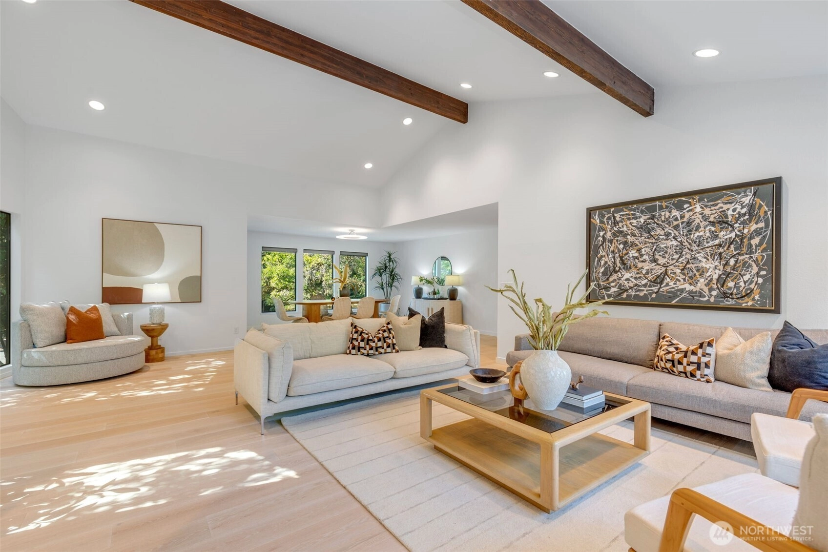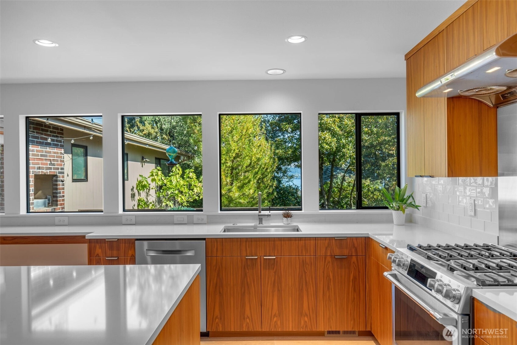 You can have it ALL in this carefully reconstructed Mid Century Marvel with PNW vibes. Its discreet exterior opens to reveal impressive vaulted ceilings, peaceful filtered lake views & all of today’s "wants" like open chef's kitchen, home gym, 2 car garage & AC. Totally overhauled from roof to sewer, from plumbing + electrical + HVAC systems to all interior surfaces, there’s nothing left for you to do! Existing rooms were reconfigured into 4 gracious ensuites w/large attached sitting rooms/offices, a very desirable main floor multi-generational living option. Relax in the private & versatile backyard w/built-in BBQ grill, upper deck, lower patio & level grassy area w/fruit trees + garden space. Eligible for Windermere Beach Club & Security.