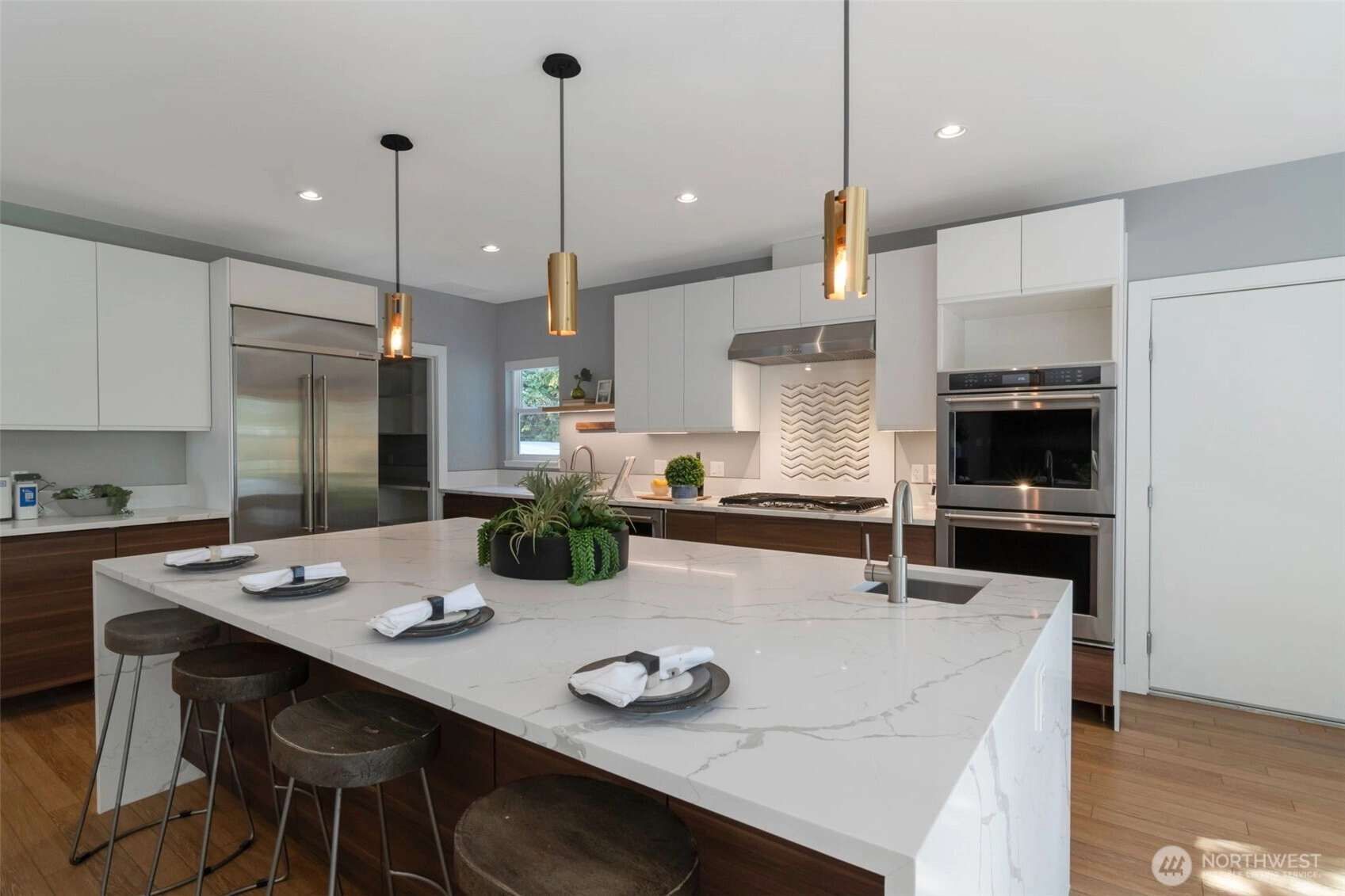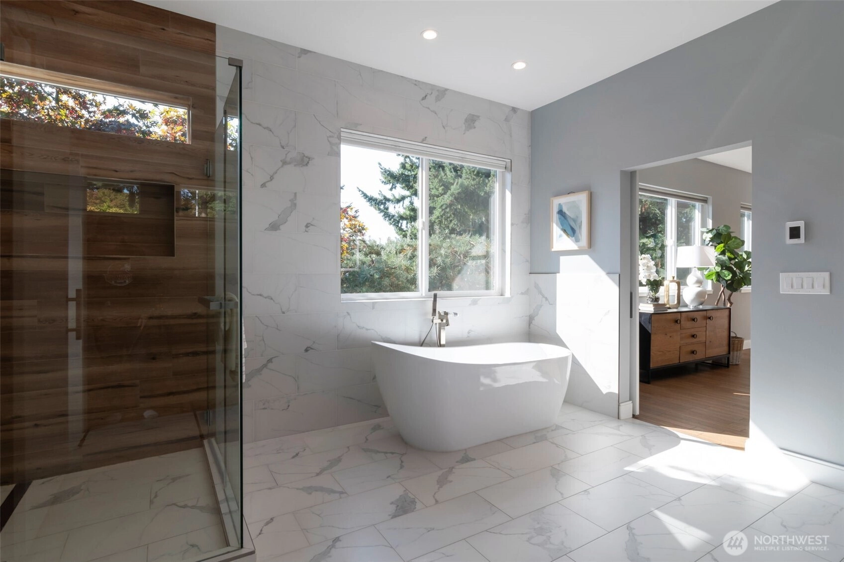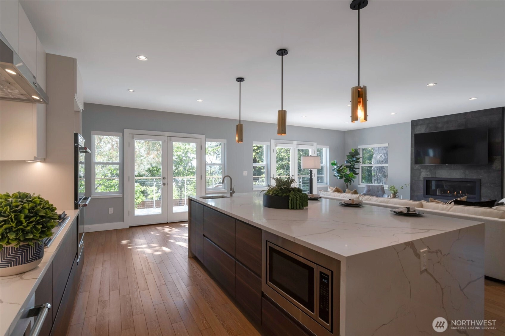 Nestled among lush greenery, this 4100 s.f. custom home was completely rebuilt in 2020 with a focus on modern efficiency and everyday comfort. The main floor showcases an open great-room design, blending living, work, and entertainment spaces. A chef’s island with seating and a spacious walk-in pantry anchors the kitchen, while French doors lead to a private deck overlooking nature. Upstairs, the serene primary suite is joined by three additional bedrooms. The daylight basement offers a versatile retreat with a bedroom, home theater potential, and flexible activity space. Just steps from schools, parks, and all the amenities Wedgwood has to offer!