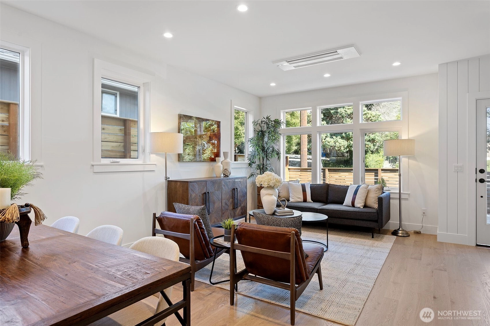 Experience modern living in this light-filled 5 home new construction community in Ballard by Roland Development! Sleek finishes and smart design define the open main level, complete with a welcoming entrance. Upstairs, two versatile bedrooms share a full bath, while the private top-floor primary suite creates a true retreat. Step outside to a quiet fenced yard with turf—your personal sanctuary for entertaining or unwinding with ease. With assigned parking with EV charging, nearby transit, and effortless access to Ballard’s lively scene—from breweries and the farmers market to Shilshole Bay—you’ll enjoy the perfect blend of style, comfort, and convenience!