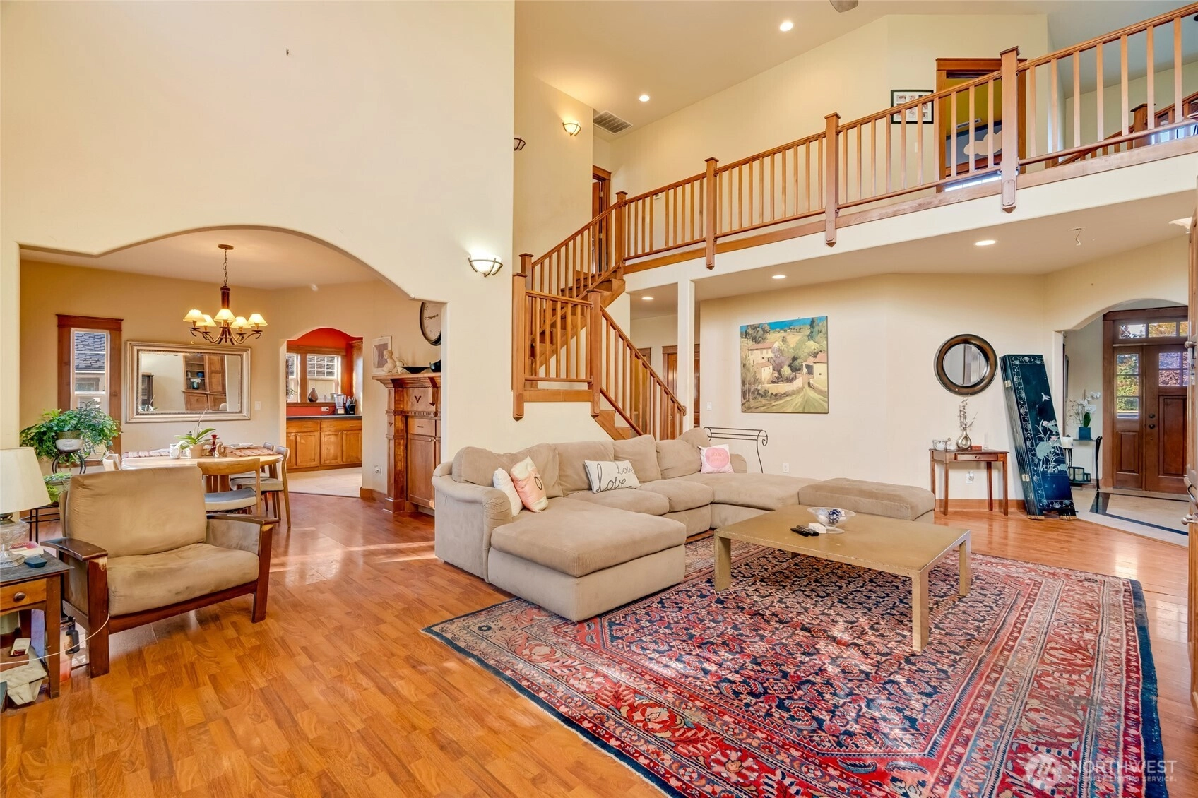 Stunning 4BD/3BA home in the gated Greens at Loomis Trail! This 3,300 sq ft home offers soaring ceilings, travertine & marble entry & a grand living room w/custom maple entertainment center, gas fireplace & abundant natural light. Elegant dining room w/maple built-ins opens to the patio & private backyard with no rear neighbors. The spacious kitchen features solid surface counters, stainless appliances, island, hardwood cabinets & built-in desk. Primary suite upstairs with sitting/exercise room, spa-like bath, & huge walk-in closet. One bed/bath downstairs; additional bedrooms & bathroom upstairs. Open upstairs hallway creates light-filled living throughout. New water heater, laundry room and 2-car garage complete this exceptional home.