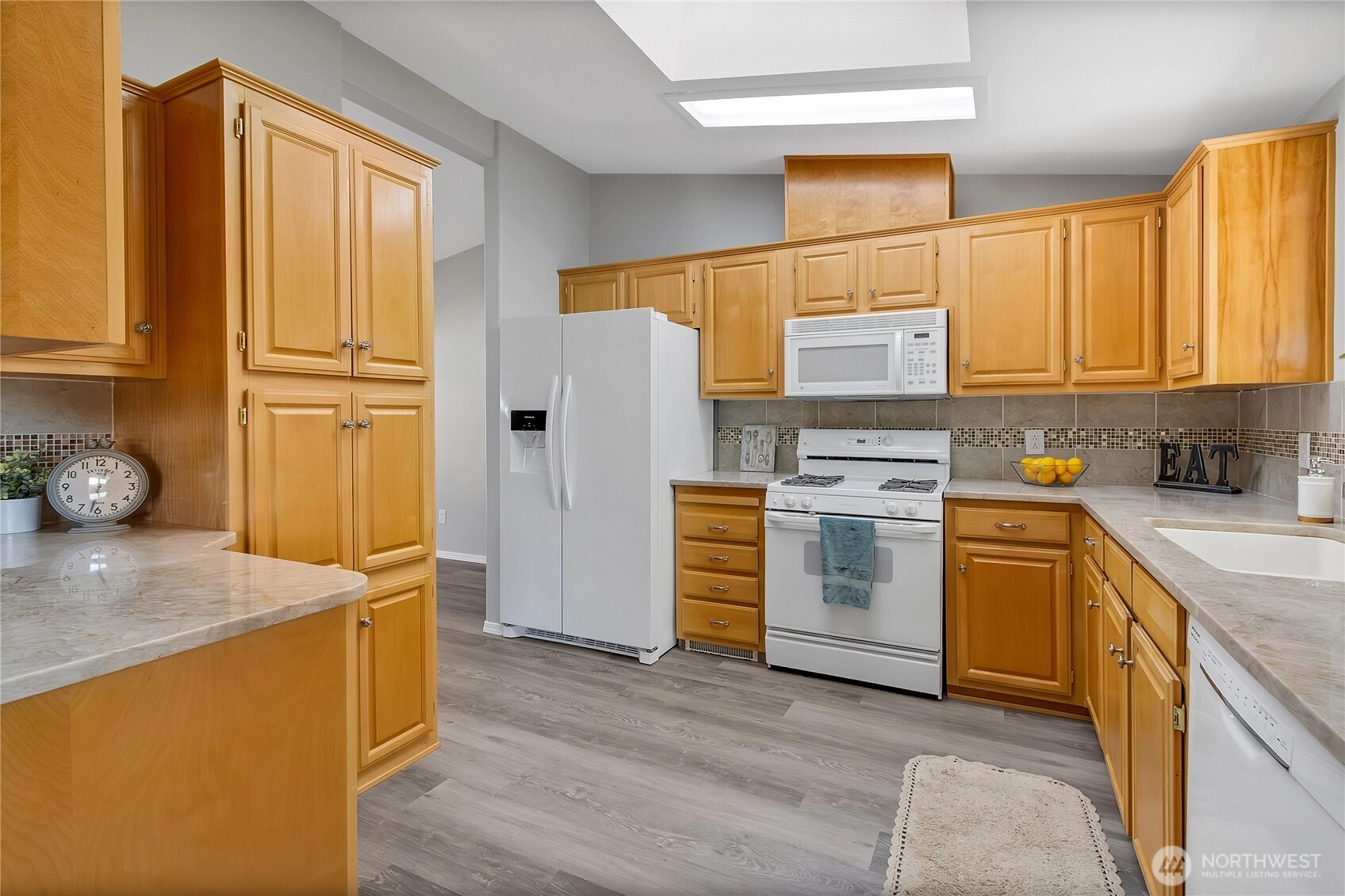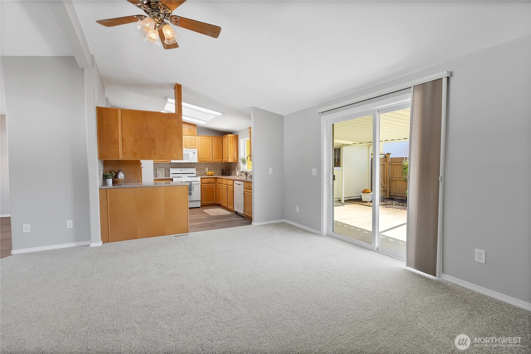Beautiful home in the sought -after 55+ Lake Wilderness Villa Community. This home is move-in ready boasting brand new paint, carpets, and flooring. Vaulted ceilings and open floorplan, a chef's dream kitchen with tons of cabinets and storage. Abundant windows give so much natural light while the custom blinds in front give privacy when needed. Serene and beautifully landscaped backyard is a quiet oasis with easy access to the house and garage. The community has many amenities including a clubhouse, pickleball court, pool tables, front yard and road maintenance, to name a few. Walking distance to Lake Wilderness and trails, as well as QFC and other shops. Check it out today!