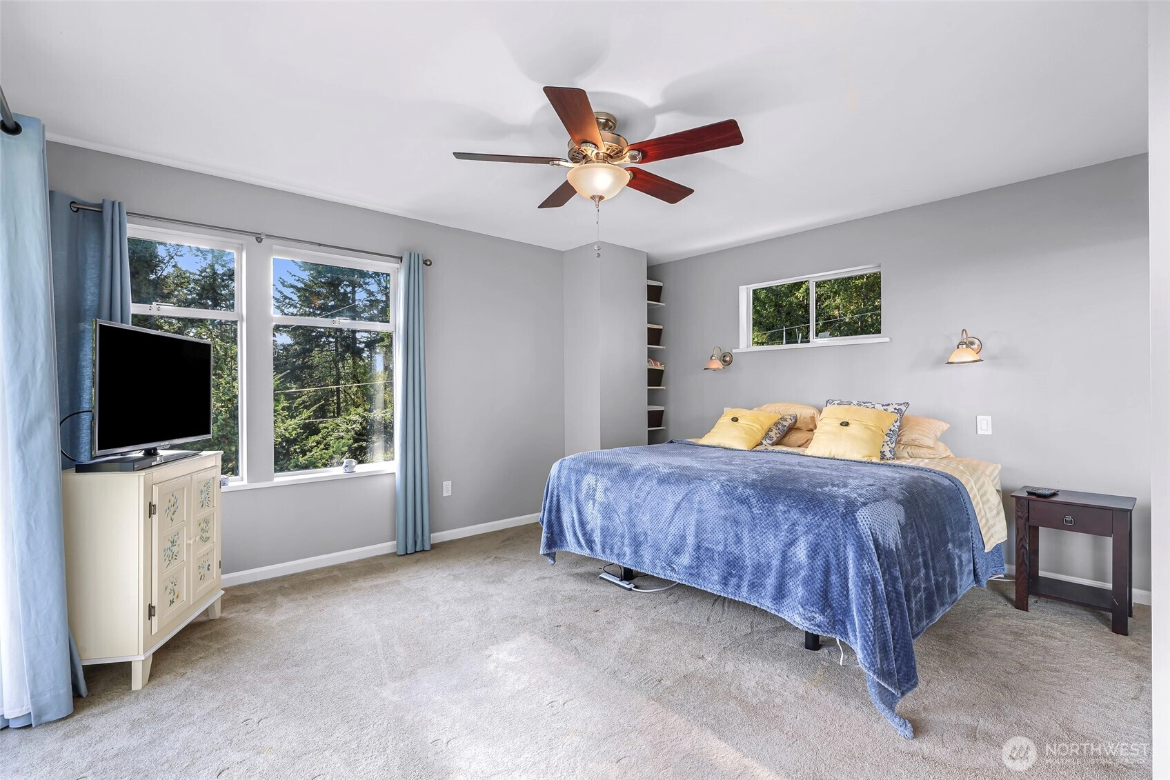 Nestled among the evergreens of Lummi Island Scenic Estates, this 2-story home with a finished walk-out basement captures sweeping east-facing views of Mt. Baker and Bellingham Bay. Light pours into the main floor with its inviting living room, kitchen, and half bath. Upstairs, two bedrooms include a spacious primary retreat with private view deck and a spa-inspired bath finished in travertine. The lower level features a theater room with slider access, pull-down projector screen, and ¾ bath. Ownership in Scenic Estates provides access to a private beach, boat launch, clubhouse, swimming pool, sports courts, and more—your island lifestyle awaits!