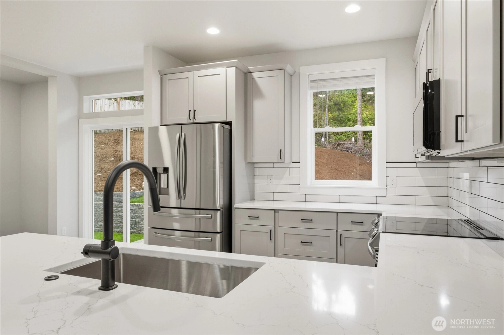New construction in the desirable gated community of Clearwood! This beautiful 3-bedroom, 2.5-bath home offers inviting curb appeal and a thoughtfully designed open-concept layout. The kitchen features stainless steel appliances, shaker-style cabinetry, Quartz countertops a peninsula eating bar, and a modern PEX water distribution system. Additional upgrades include, pre-wired Level 2 EV charger, and central A/C for year-round comfort. Durable waterproof laminate flooring flows throughout the main living areas, with cozy carpet in the bedrooms. Upstairs, the spacious primary suite boasts a private bath and walk-in closet. Just blocks from Madrona Beach.