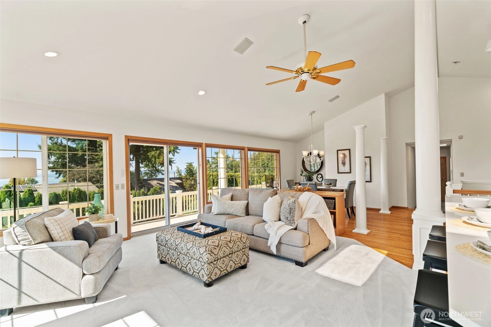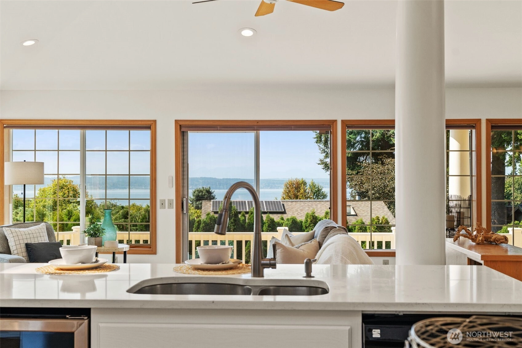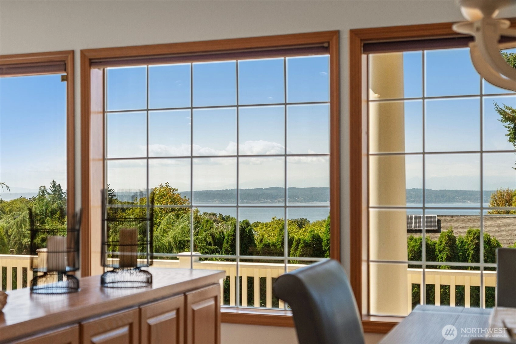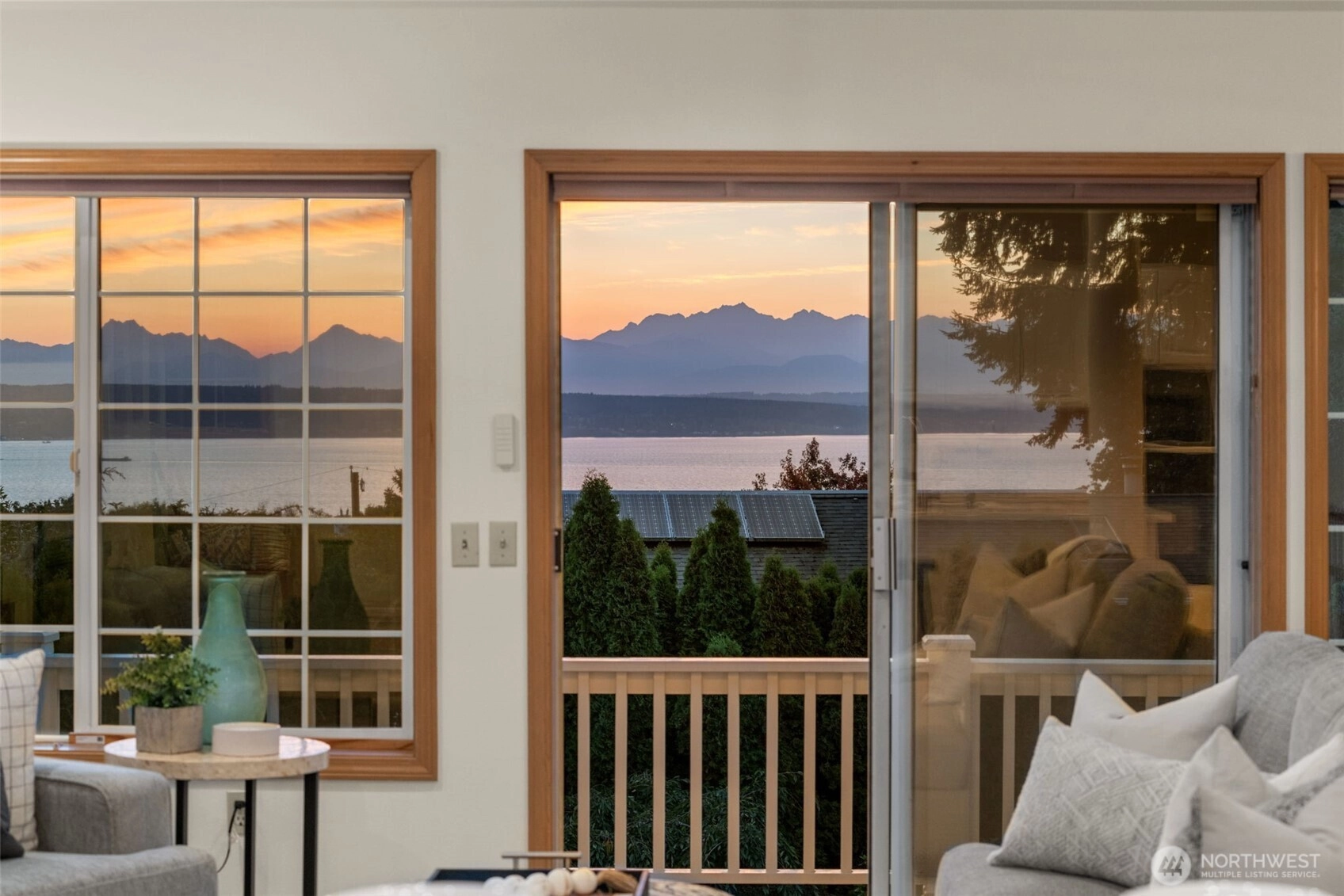 Nestled down a private drive in Woodway, this home offers a peaceful retreat with sweeping views of Puget Sound and the Olympic Mountains. Expansive windows invite natural light and frame the ever-changing scenery, while inviting spaces create an easy flow for everyday living and entertaining. Gather in the living and dining rooms, relax in the family and rec rooms, or find quiet focus in the den/office. Large primary suite with private bath. The expansive deck is great for entertaining - think sunset dinners, weekend brunches, or just a quiet evening with views of Puget Sound. With room to live, work, and play, plus a 2-car garage and close access to Edmonds amenities, this home blends comfort, convenience, and the beauty of the Northwest.