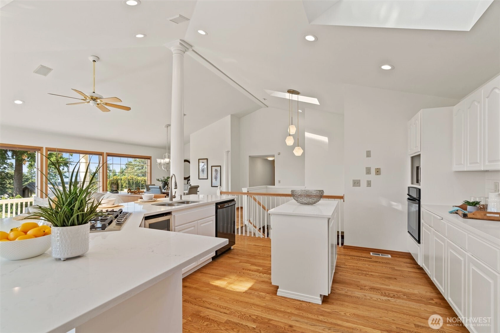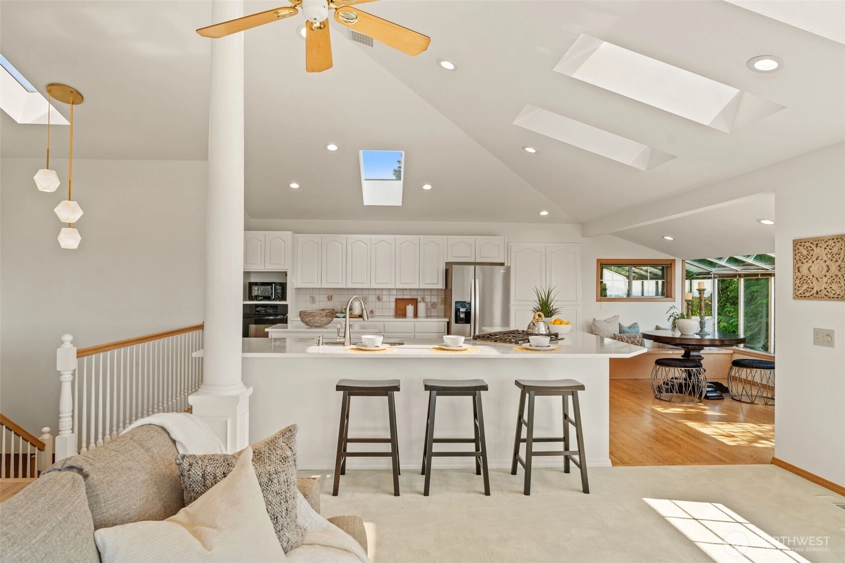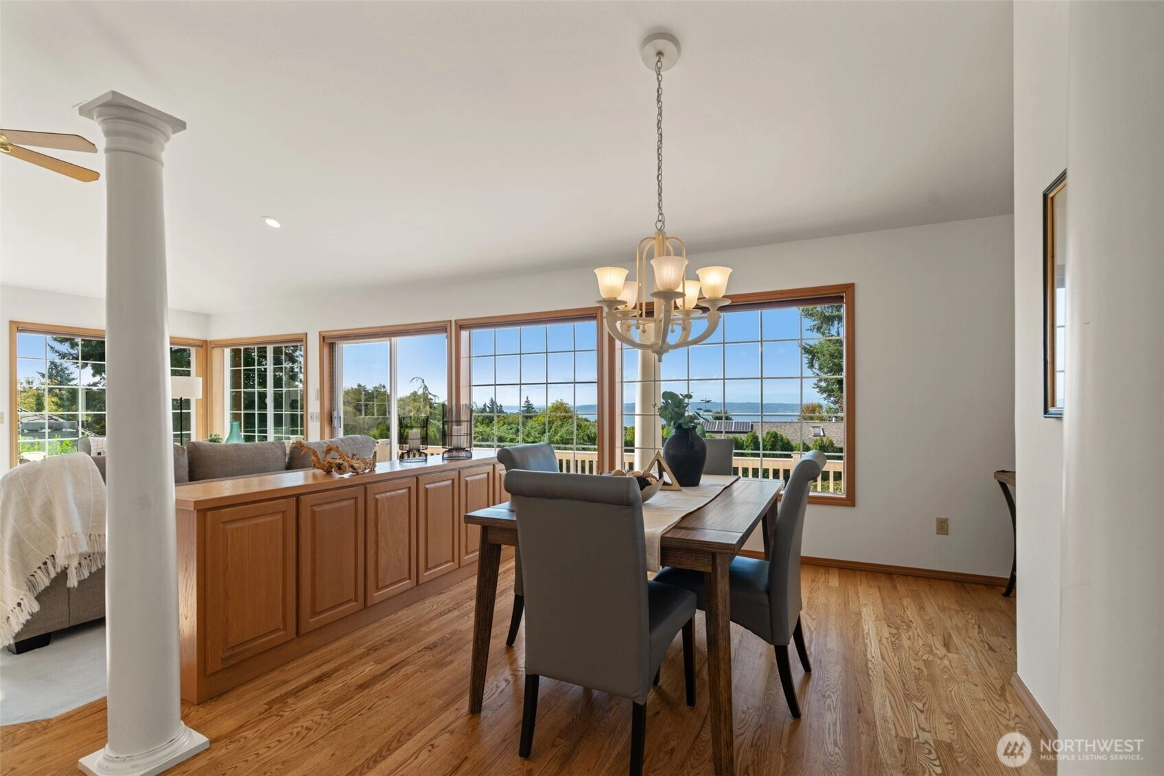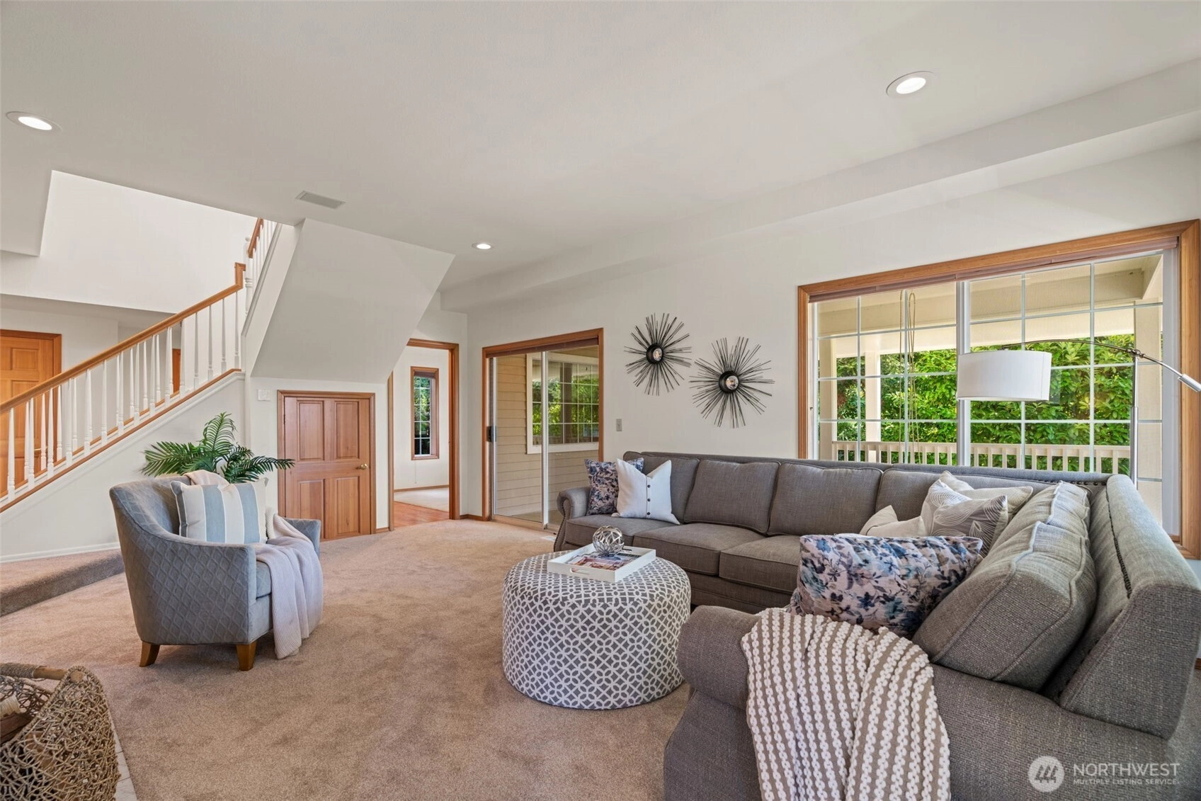 Nestled down a private drive in Woodway, this home offers a peaceful retreat with sweeping views of Puget Sound and the Olympic Mountains. Expansive windows invite natural light and frame the ever-changing scenery, while inviting spaces create an easy flow for everyday living and entertaining. Gather in the living and dining rooms, relax in the family and rec rooms, or find quiet focus in the den/office. Large primary suite with private bath. The expansive deck is great for entertaining - think sunset dinners, weekend brunches, or just a quiet evening with views of Puget Sound. With room to live, work, and play, plus a 2-car garage and close access to Edmonds amenities, this home blends comfort, convenience, and the beauty of the Northwest.