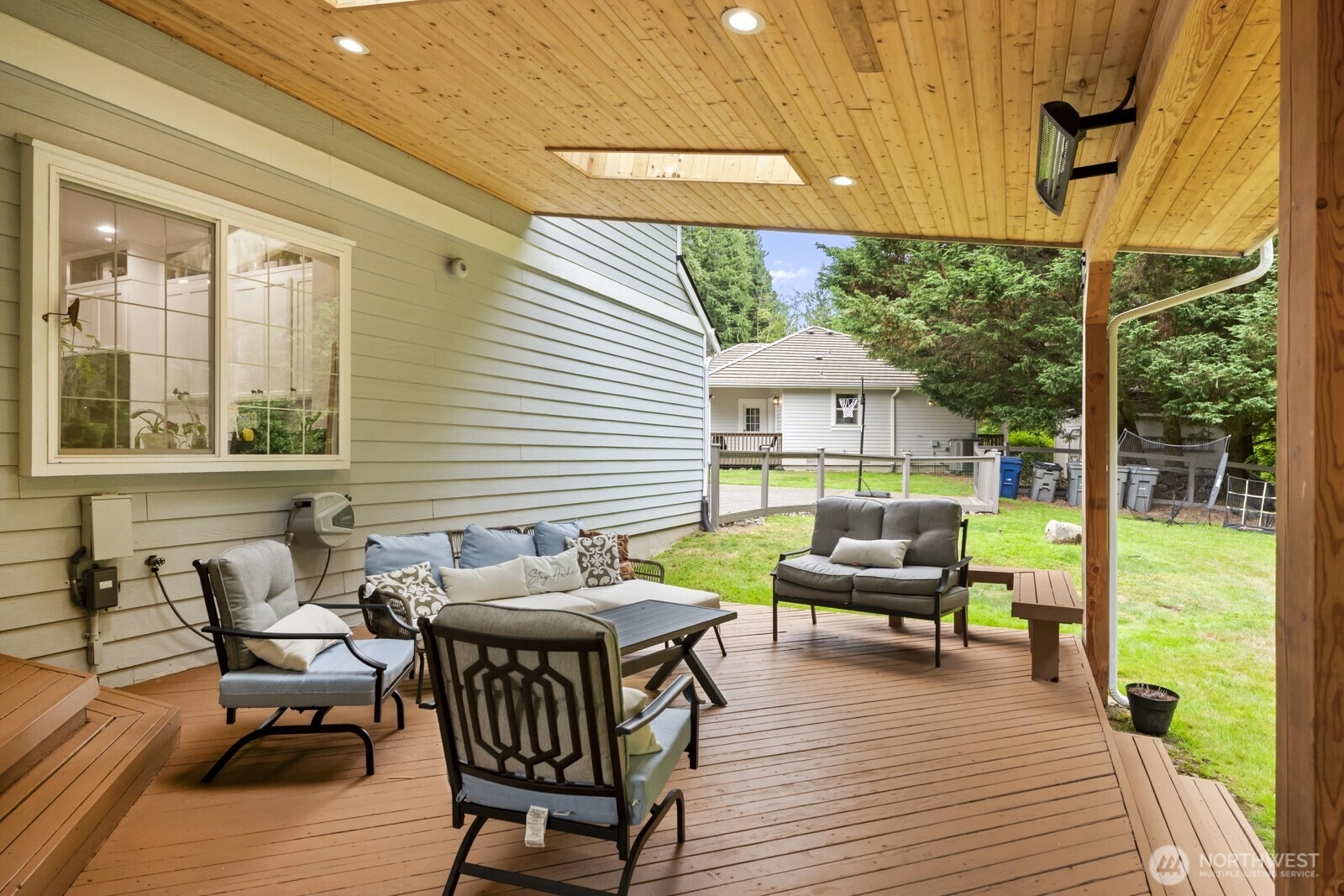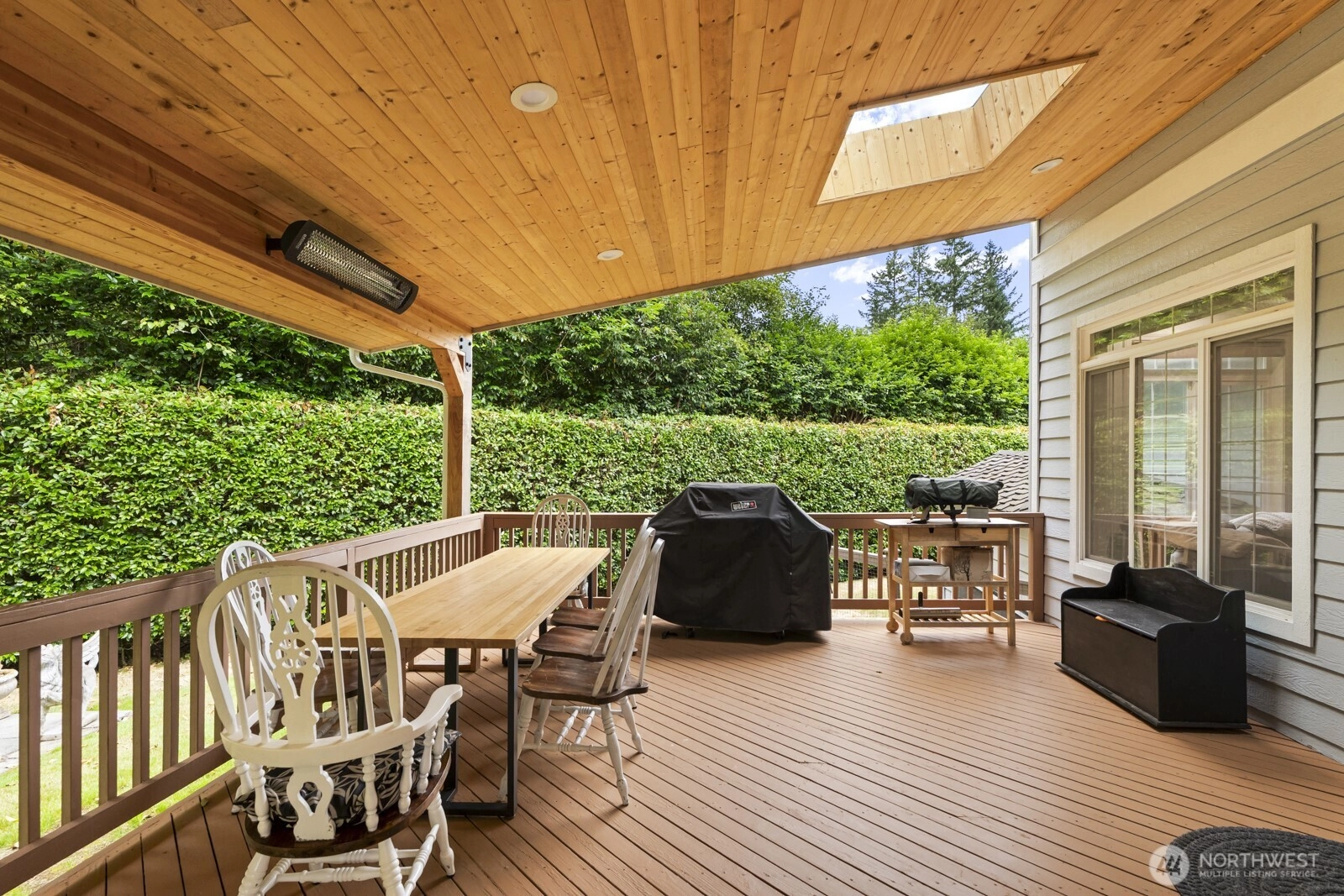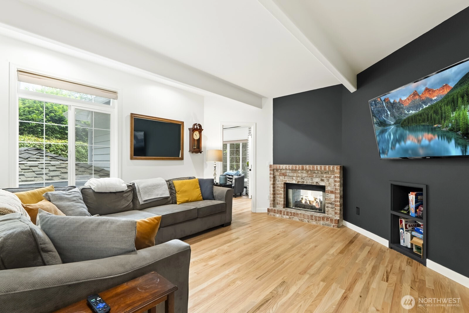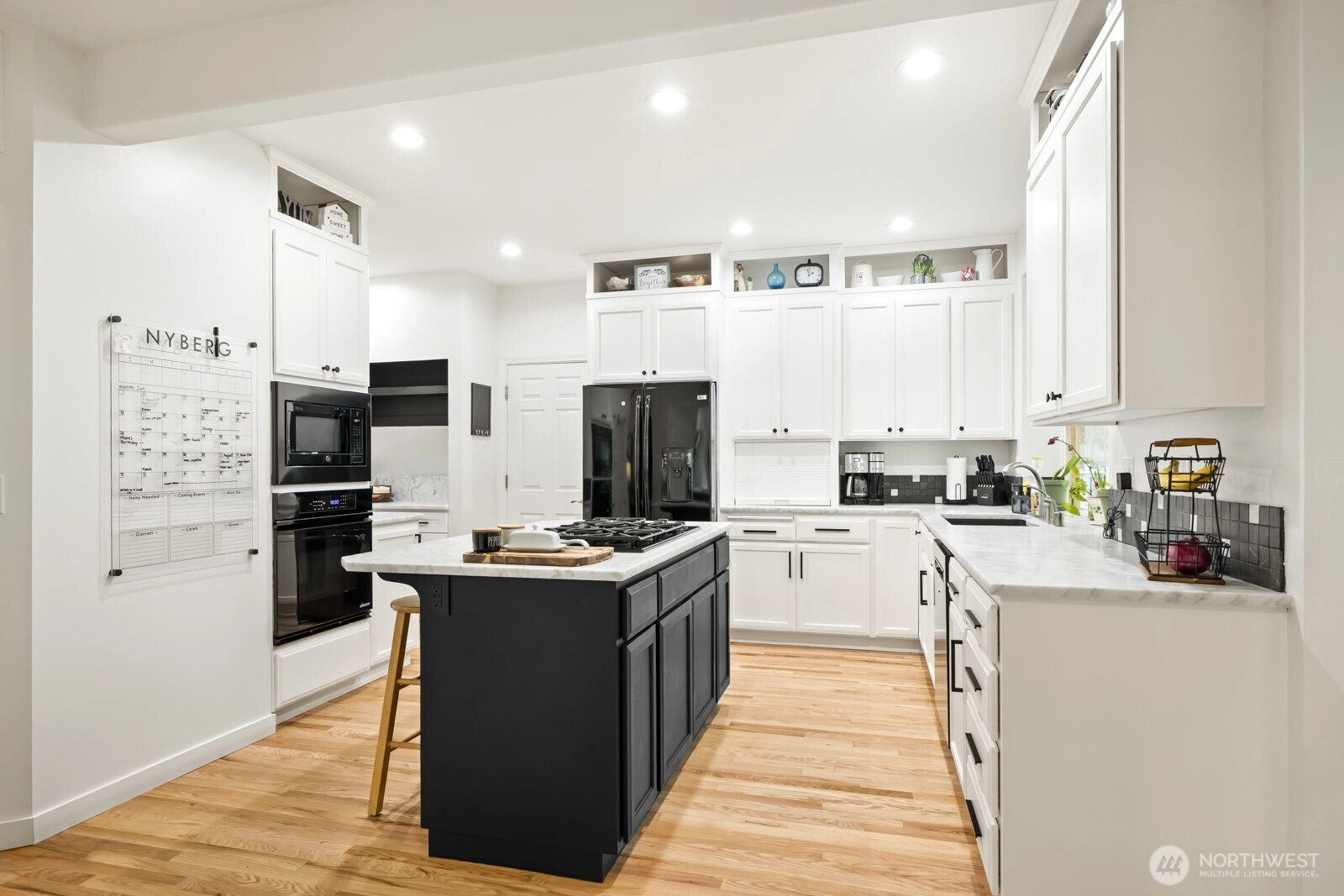 Beautifully updated contemporary home in highly sought-after Lake of the Woods. The ideal floor plan w/4 bedrms, office & bonus rm; hardwood flrs & 9-ft ceilings grace the main floor. Chef’s kitchen w/marble counters, sleek island, walk-in pantry, & Butler’s pantry. Lavish primary suite w/vaulted ceiling, custom wood-accent wall, fireplace & new spa-like bath. Updated hall & powder baths. Private, fully fenced backyard, entertain year-round on the expansive covered deck w/skylights, recessed lighting & heaters w/a serene greenbelt backdrop. Newer 50 yr roof & H2O. Excl Lkw Schls. Turnkey gem in a premier Woodinville enclave!
