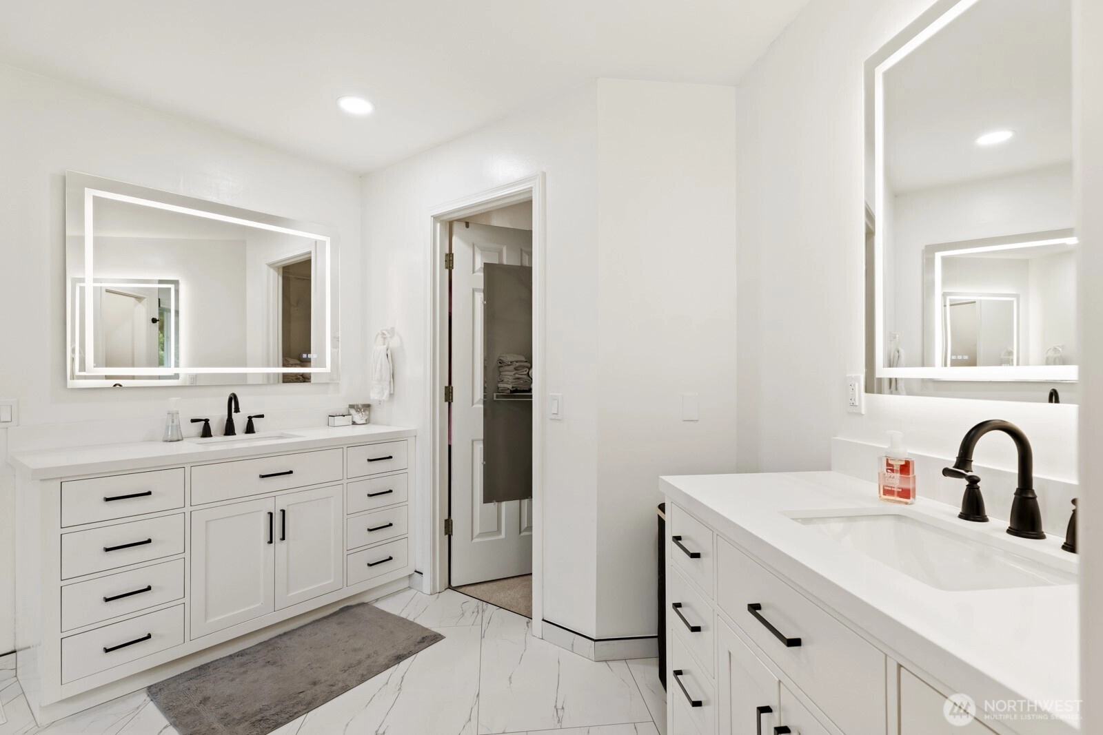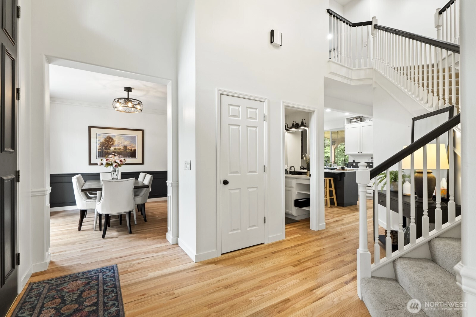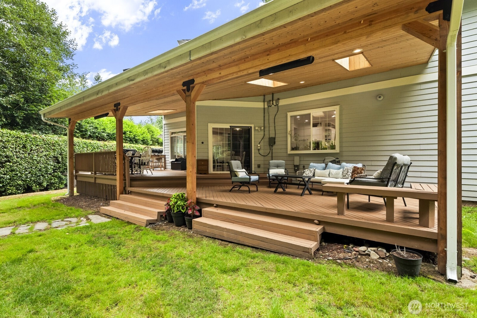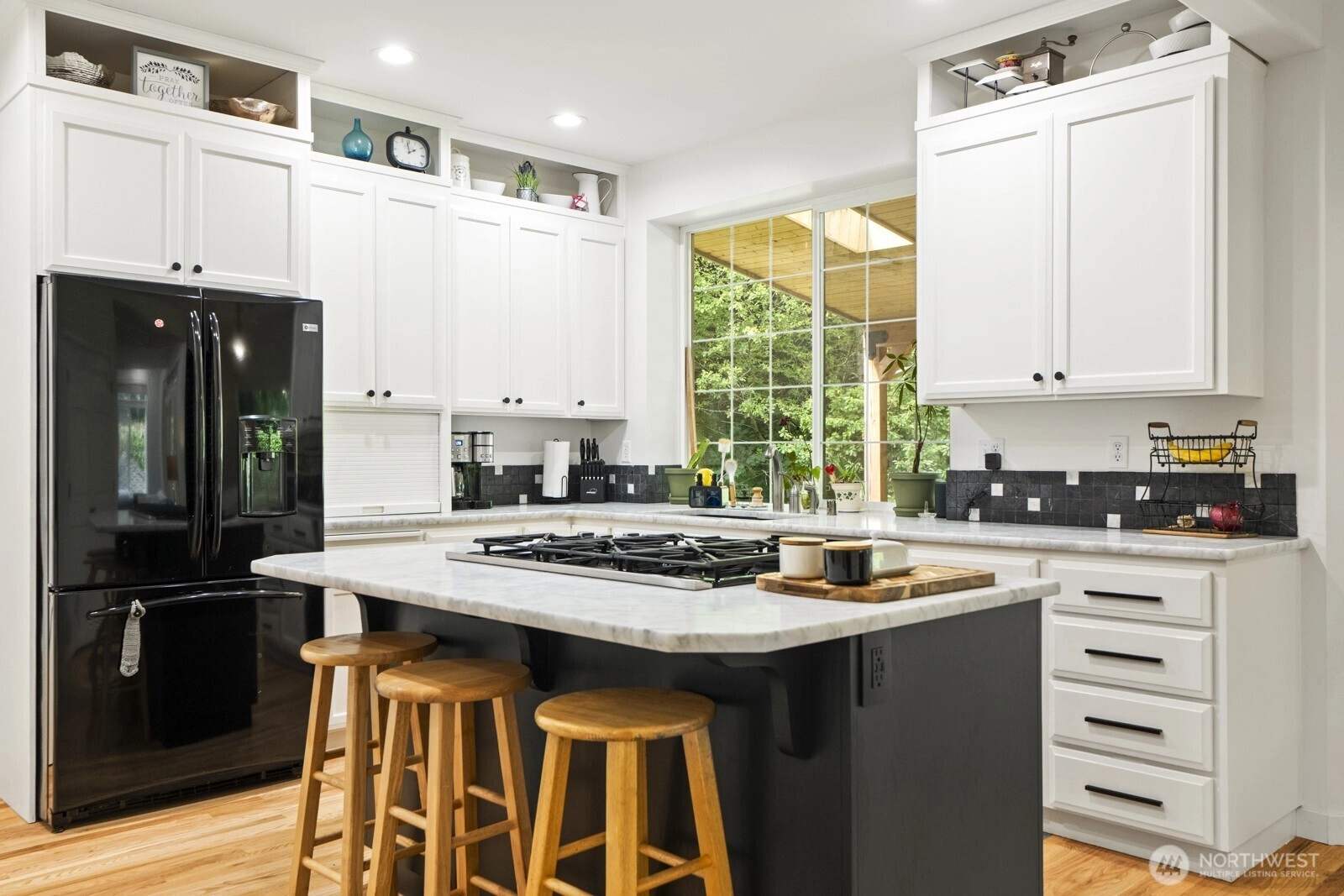 Beautifully updated contemporary home in highly sought-after Lake of the Woods. The ideal floor plan w/4 bedrms, office & bonus rm; hardwood flrs & 9-ft ceilings grace the main floor. Chef’s kitchen w/marble counters, sleek island, walk-in pantry, & Butler’s pantry. Lavish primary suite w/vaulted ceiling, custom wood-accent wall, fireplace & new spa-like bath. Updated hall & powder baths. Private, fully fenced backyard, entertain year-round on the expansive covered deck w/skylights, recessed lighting & heaters w/a serene greenbelt backdrop. Newer 50 yr roof & H2O. Excl Lkw Schls. Turnkey gem in a premier Woodinville enclave!