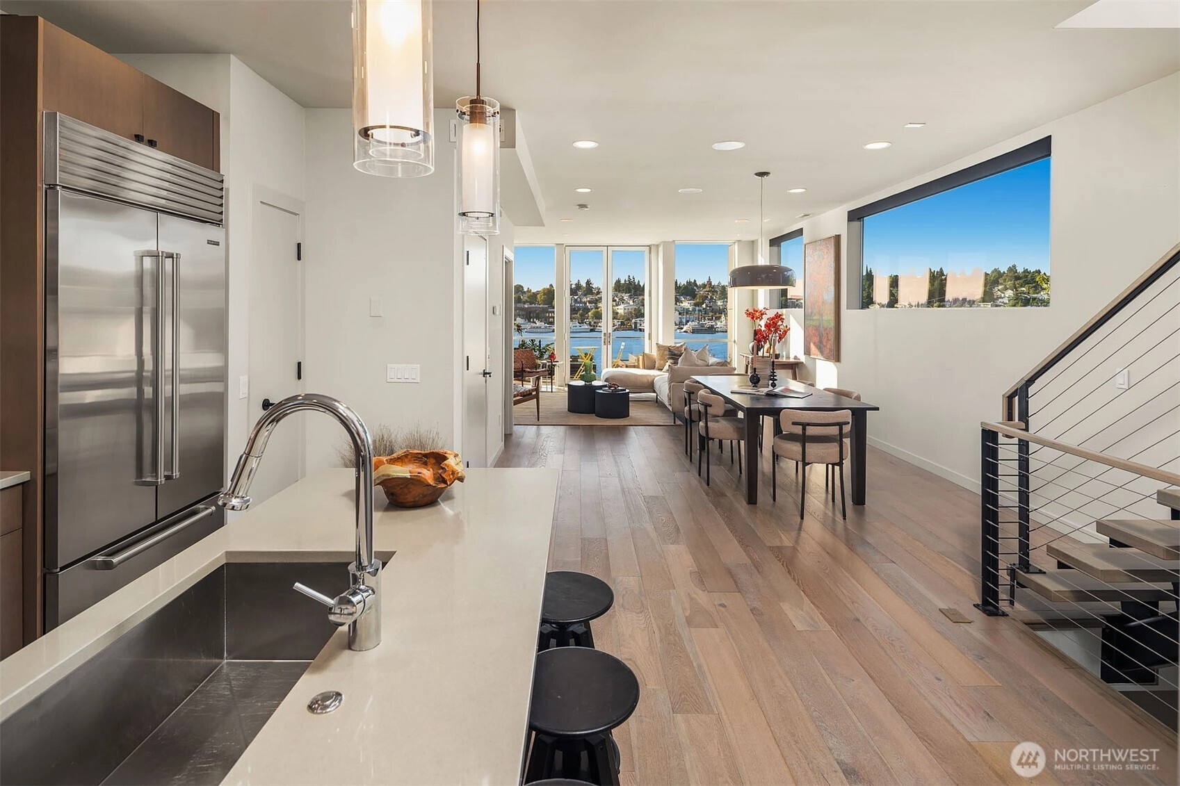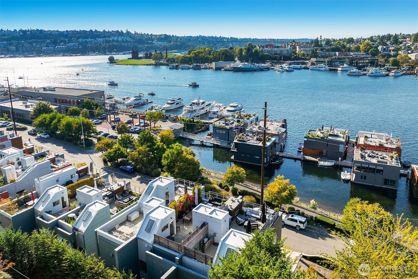 This generous Eastlake residence features sweeping lake views and thoughtfully designed spaces. The upper floor great room is perfect for daily living & entertaining from the chef’s island kitchen to the lakeside floor-to-ceiling windows. The rooftop deck provides an ideal spot to relax fireside while soaking in the expansive water views. The owner retreat features a cozy fireplace & spa-like ensuite bath. The bonus room can be a gym, office or wine room. An elevator plus garage with private driveway for ample parking complete the home. Homeowners enjoy community fitness center, guest suite & meeting room plus preferred moorage access subject to availability. All in an enviable location offering shopping, dining & outdoor recreation.