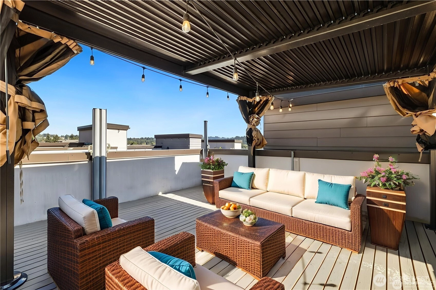 Welcome to Kenmore’s Vista Lago Townhomes, centrally located near several parks, the Burke Gilman Trail, shops & restaurants, plus an easy commute to Downtown Bothell & major job centers. No HOA! This excellent floorplan includes 4 bedrooms, including a primary suite with ensuite bath & walk-in closet. Spacious main floor with living room, dining room & light-filled designer kitchen with quartz counters and stainless-steel KitchenAid appliances. All appliances stay, including full-size washer & dryer. Mini splits throughout for heat & AC. Full guest bathroom. Gorgeous rooftop deck with peek-a-boo Lake views & gazebo for enjoyment in every season, plus retractable privacy screens. Tankless on-demand hot water. Two-car attached garage.