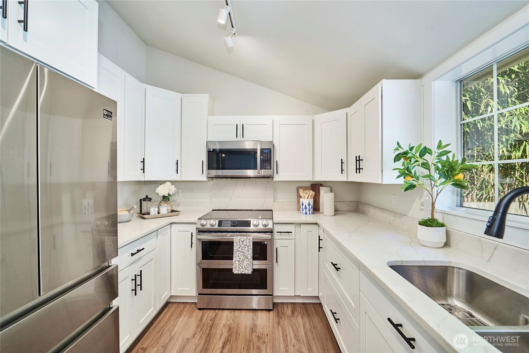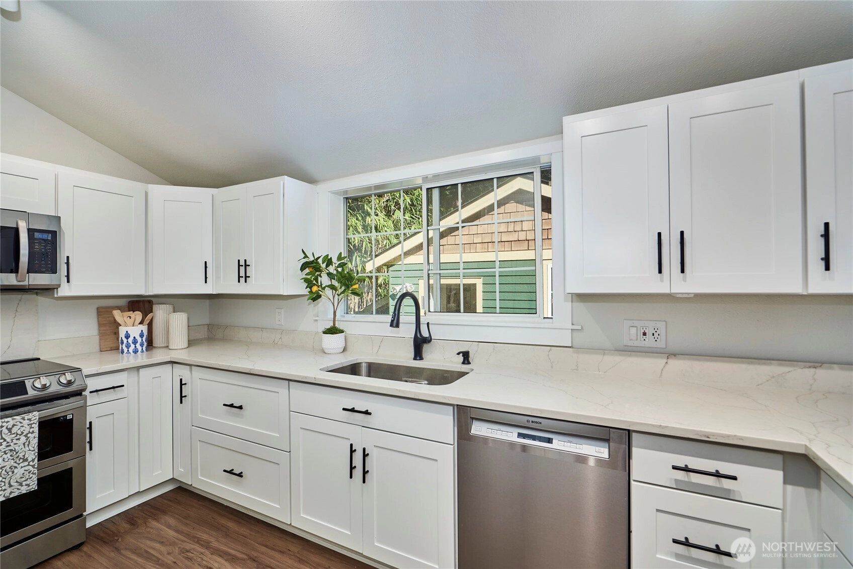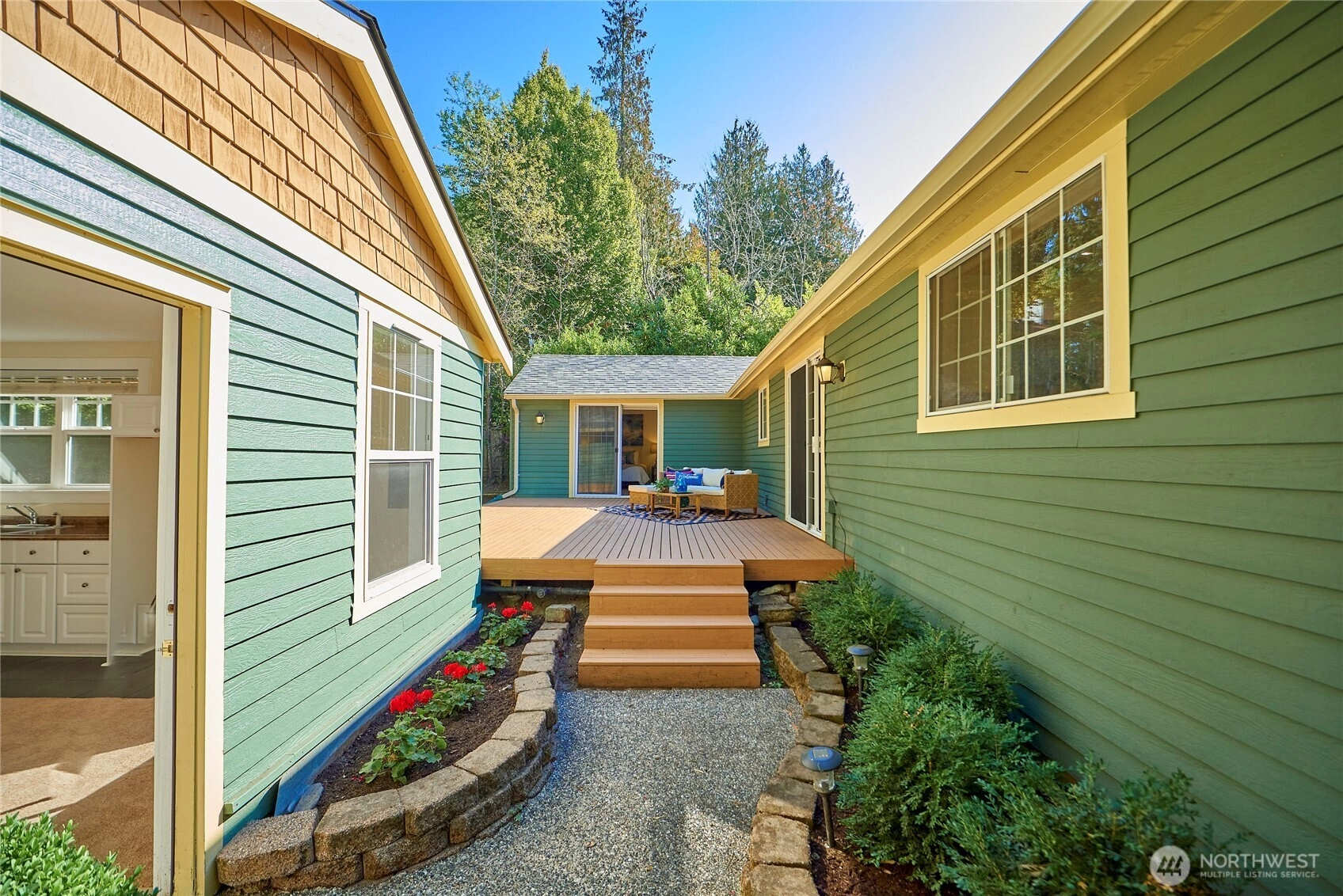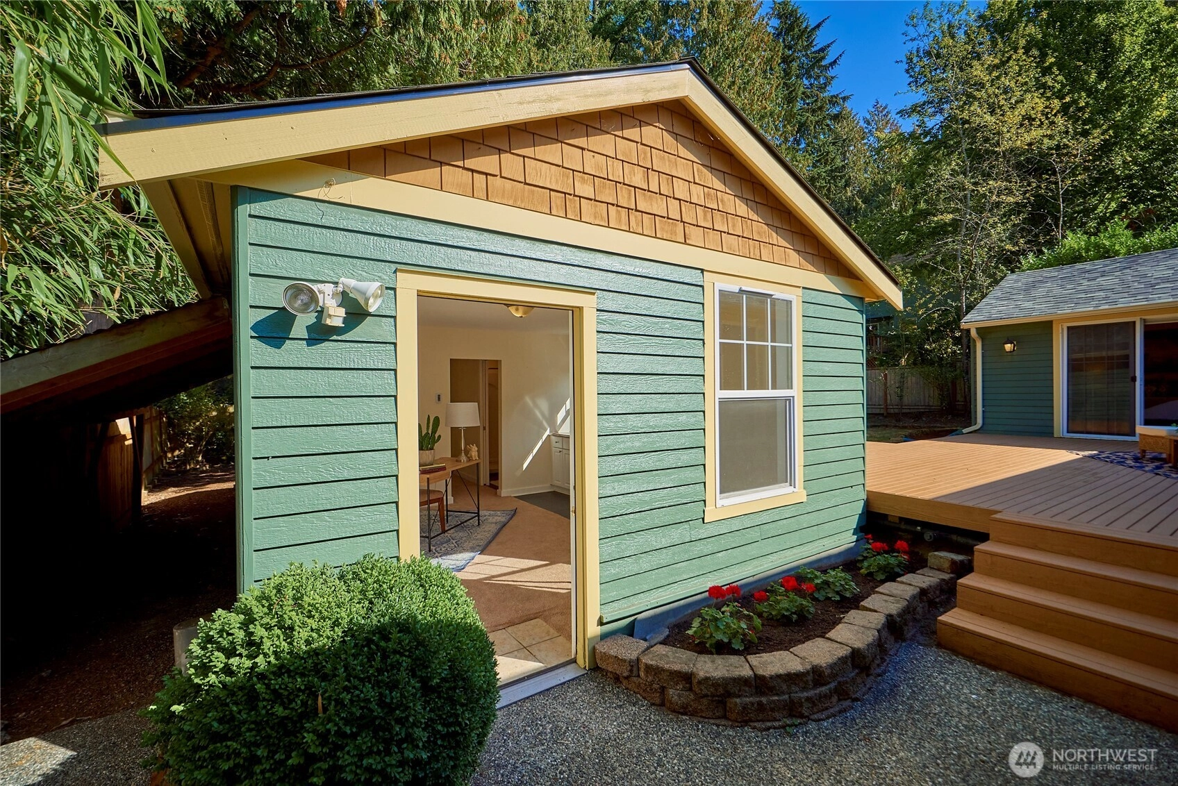 Mid-century charm meets modern comfort in this move in ready rambler set on a lush, level quarter acre lot. The updated interior boasts 3 bedrooms with fresh paint, newer doors, trim & a renovated kitchen with new flooring, appliances, quartz counters & soft close cabinets. A spacious family room off the kitchen offers ample space for movie or game nights. A detached MIL unit features a living area, kitchenette, ¾ bath, bedroom, & deck, perfect for office, guests or rental income. Other features include an entertainment-sized deck, covered front porch, new roof & 2 car garage with heat, compressed air hoses & dedicated circuits for car charging & A/C. Ideally located near parks, trails, schools, shopping, park & ride, light rail & highways!